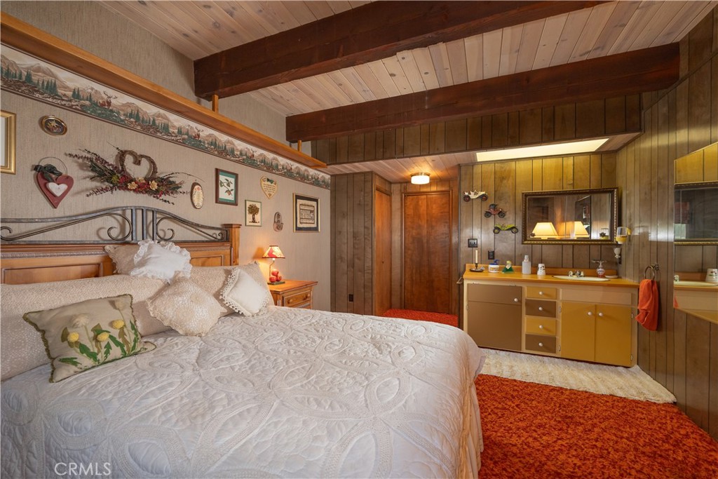 First time ever on the market! This custom-built cabin has been the pride & joy of the owners since they hand-built it in 1974. Offering gorgeous panoramic Southern & ski slope views, come experience the peace & tranquility you are looking for in a quintessential Big Bear cabin. From the soaring ceilings with impressive beams to the wall of windows & the large fireplace in the family room, this is your new sanctuary in the pines. Take in the clean mountain air outside on the spacious decking while overlooking the large fully fenced lot, replete with mature trees, plants & ample parking. The property includes a large detached garage & plenty of space to enjoy its beautiful setting. The entire house, garage, decking, and stairs have been freshly painted. The interior offers that unique & nostalgic Big Bear vibe that captures a special place & time. Thoughtful pride of ownership is evident throughout. You don’t want to miss this one as it may be another 50 years before it’s available again!