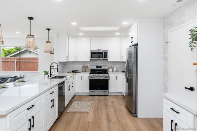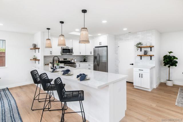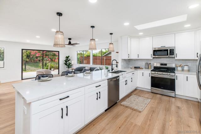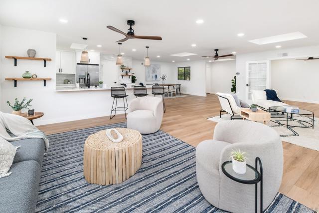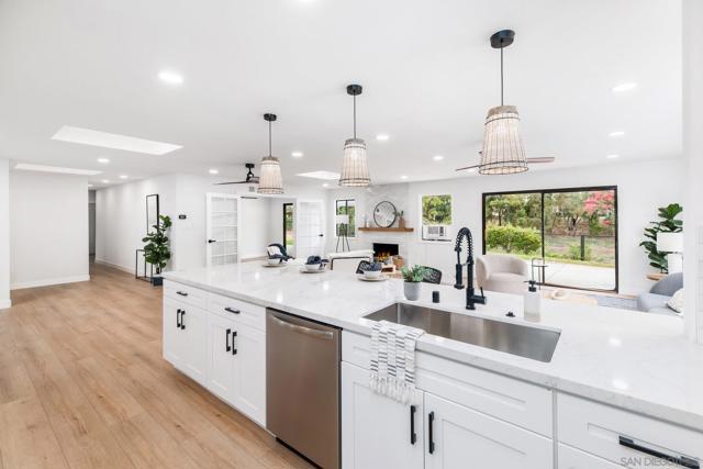 SINGLE LEVEL … Remodeled … Oversize LOT … NO HOA … 2 miles from Carlsbad Village and beach !! First time on the market in 23+ years, this this charming 4 bedrooms 2 baths, single-level residence has been remodeled and is situated on an expansive oversize lot spanning nearly 16,000 square feet. The home has been remodeled in 2023 and features an open-concept floor plan, a chef’s kitchen with white cabinets and black hardware, expansive new countertop opening up to the main living area. Other features remodeled include, new floors throughout, new can lighting, ceiling fans, new bathrooms, accents, and much more! Too much to list! With a newer roof and solar panels already in place, you have a head start towards achieving energy efficiency and sustainability. The well-designed open floor plan flows seamlessly, creating a sense of openness and versatility. The expansive lot backs into a canyon and provides a tranquil retreat just 2.5 miles away from the vibrant Carlsbad Village and breathtaking beaches. Plenty of space to realize your ideal outdoor entertainment, including room for pool, room for RV parking, or room for an ADU. Close to shopping, restaurants and highways, this is your chance to make your dreams a reality!