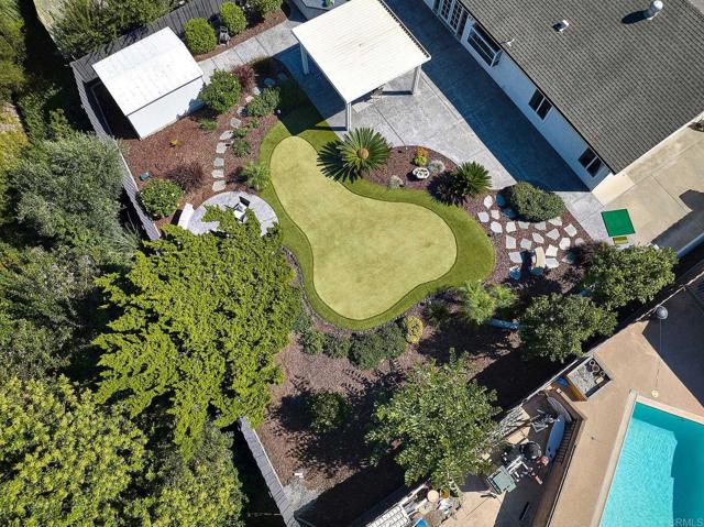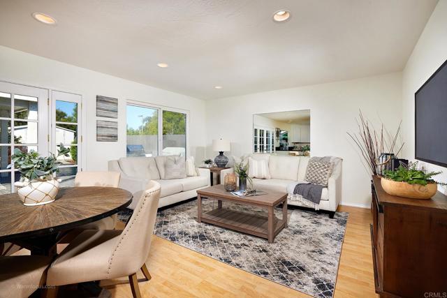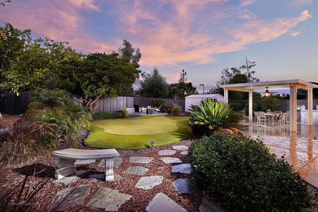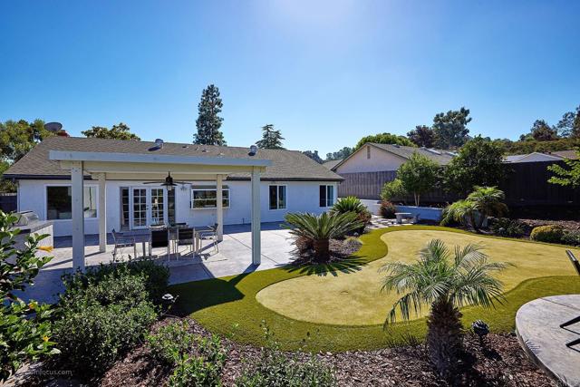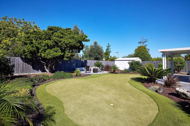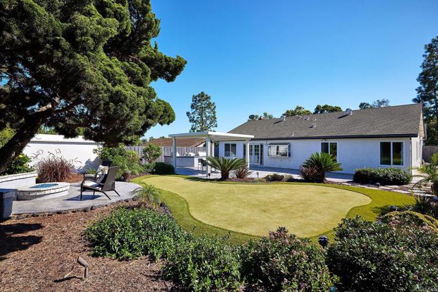 Stunning single-story residence located in the desirable Summerfield neighborhood of Encinitas! Beautifully upgraded with an array of high-end features! The entire house features dual pane vinyl windows, allowing natural light to flood every room. Tile floors adorn the bathrooms and laundry room, while laminate flooring flows throughout the rest of the house. Hand-troweled ceilings with recessed lighting throughout. Complete kitchen remodel includes new custom cabinets, granite slab countertops, Sub Zero refrigerator, Viking 6-burner gas range, Kitchenaid dual convection double oven, Cove dishwasher, EverPur water filter, and new bay window. The primary bedroom suite features new mirrored closet doors and a ceiling fan for added comfort. The remodeled primary bathroom boasts dual sinks with new counters, two large mirror medicine cabinets, and custom shower panels with dual shower heads. French doors provide a seamless transition from the indoors to the outdoors, perfect for entertaining family and friends. The custom backyard remodel is an entertainer's delight. Practice your putting skills on the 3-hole putting green, gather around the gas fire pit with a sitting bench on stamped concrete, and enjoy outdoor cooking with the BBQ island featuring a granite counter and stucco base. The built-in gas and charcoal BBQs make hosting gatherings a breeze, and the storage in the island keeps everything organized. Owned solar - you can enjoy the benefits of energy efficiency and cost savings! Plenty of space for RV or boat parking! Other notable features of this home include a tankless water heater, installed air conditioning system, solid wood front entry doors with new door handles, and a pocket door at the entry to the hallway from the living room. Located in a top-rated school district, close to the beach, shopping, & dining! San Dieguito Union High School District!