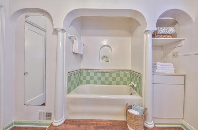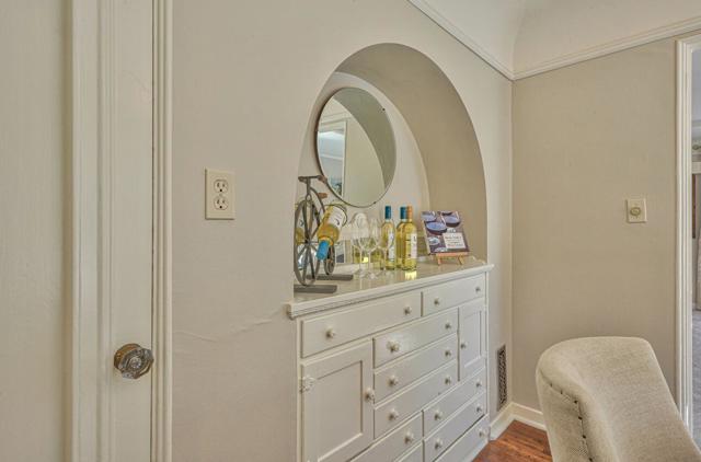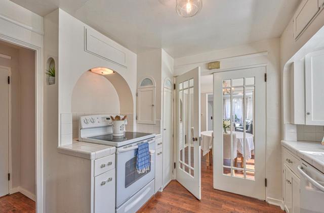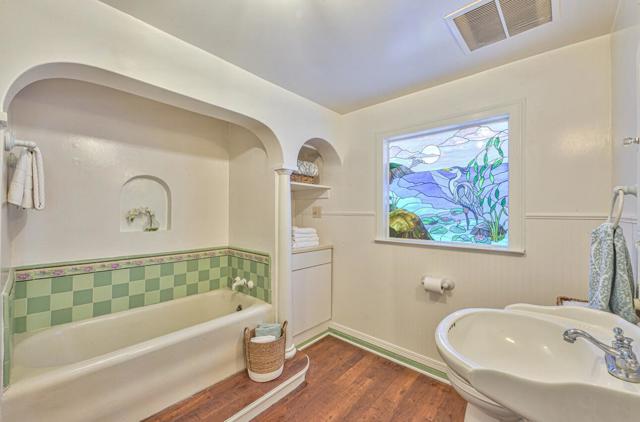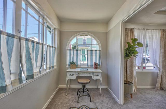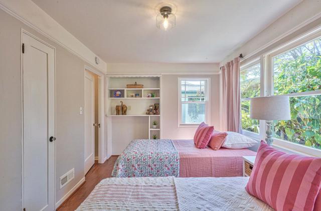 I'm not too big, and I'm not too small. I enjoy an awesome location in the Pacific Grove Retreat area with my own driveway and garage. From just outside my front door, beautiful water views are a head turn away. I'm hard to beat. Just 1 block to the charming downtown and its awarding winning restaurants and 2 blocks to the Monterey Bay and Lover's Point Park. My 1920/30's charm exudes everywhere - from the arched front door and glass French doors, to the little niches throughout, to the built-in cabinetry, to the artistic fireplace surround and sprinkling of stained glass to welcome the sunlight. My two bedrooms and one bath are quite large with room for multiple beds. I have just the right amount of outdoor space with a patio for dining and a low-maintenance but lush garden. Enjoy me as-is or add your own modern touches.