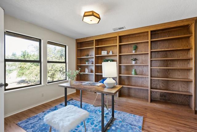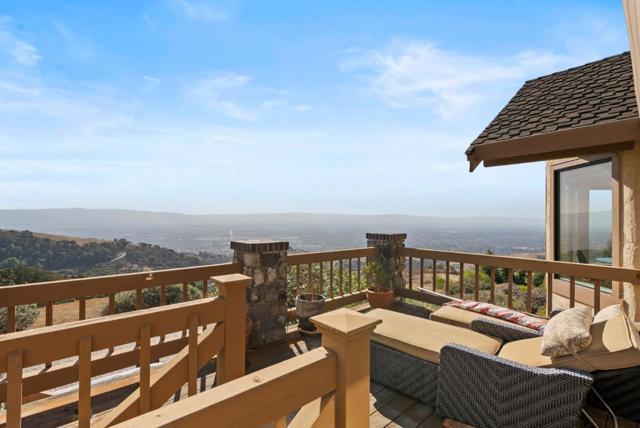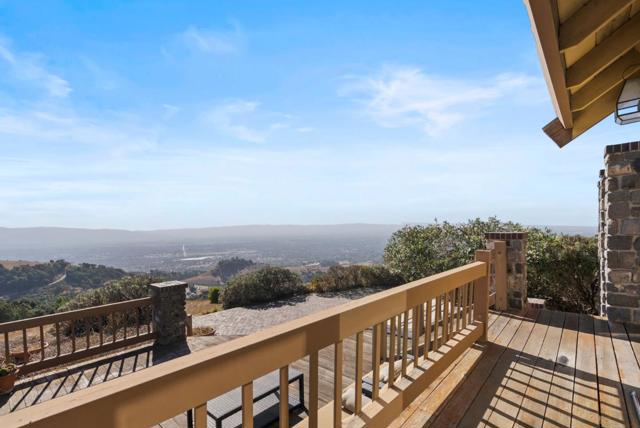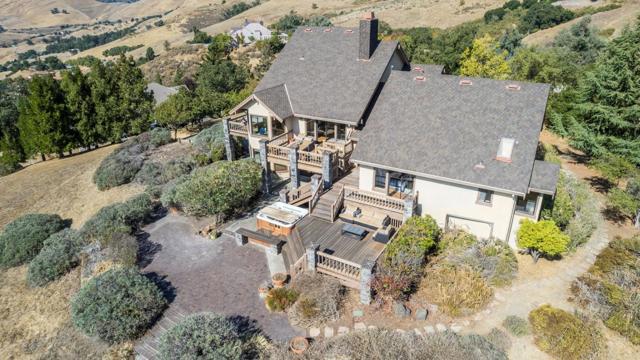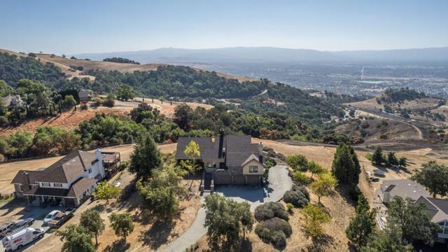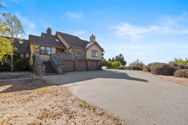 This is it!. Magnificent home is nestled in a 3.98-acre lot within the Three Springs Ranch Gated Community in the San Jose Foothills. The two-story home is flooded with natural light, featuring a grand entrance and an expansive living room with cathedral ceilings, a rock fireplace, and a wet bar. The adjacent formal dining room offers indoor-outdoor entertainment with a built-in hutch and a balcony. The updated kitchen showcases warm-toned cabinets, granite countertops, top-tier appliances,and tiled flooring. The family room connects to the kitchen, providing access to a spacious deck. The main bedroom offers valley views,bathroom includes dual sinks, a sunken shower, and cedar-lined closets. All 4 bedrooms are spacious, including the fifth bedroom and full bathroom. The property includes an office. and entertainment room, a 3-car garage with storage and a workshop. A fruit tree orchard enhances the landscape, while unobstructed Bay Area views make this location truly remarkable.