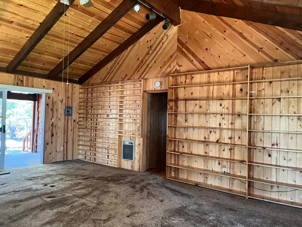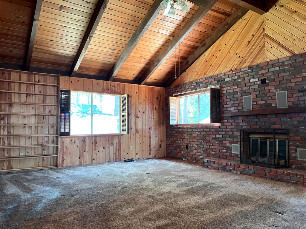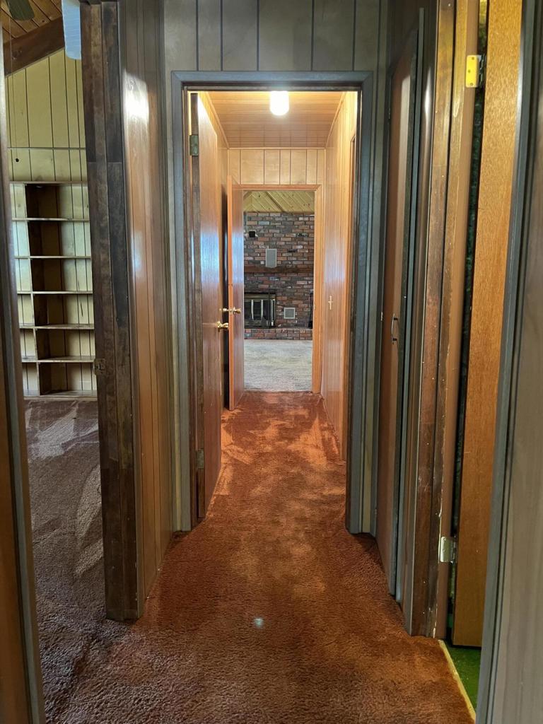 Welcome to your new Haven. From the wooded lot with the house set back from the road feel your stress melt away. The front deck is partially covered and offers ample room for out door dining and enjoyment. The living room, dining, and kitchen offer an open entertaining space. The corner brick fireplace gives a show as the light flickers across the walls. Off the kitchen is the laundry/ mud entrance. The hallway leads to the Full bathroom on the right and the Guest bedroom to the left. Further down the hall is the En-Suite with ample storage space and 3/4 bathroom. At the end of the hall is your escape. This room has something for everyone. Built in shelving full of books will give you ample to snuggle up with in front of the brick fireplace centered on the back wall of the house. Enjoy setting this up as the media room of your dreams, expansive home office, Kids corner, or use is as a large bedroom. The covered back patio lends easy access to the rear yard and storage shed. This lot is flat, offers a long driveway for ample parking. Don't miss your chance to see this hidden gem. Home comes furnished.
