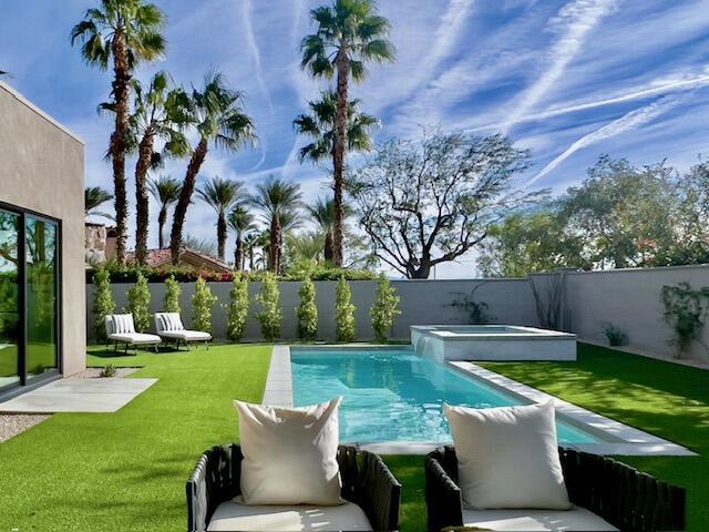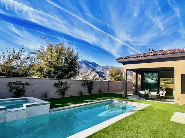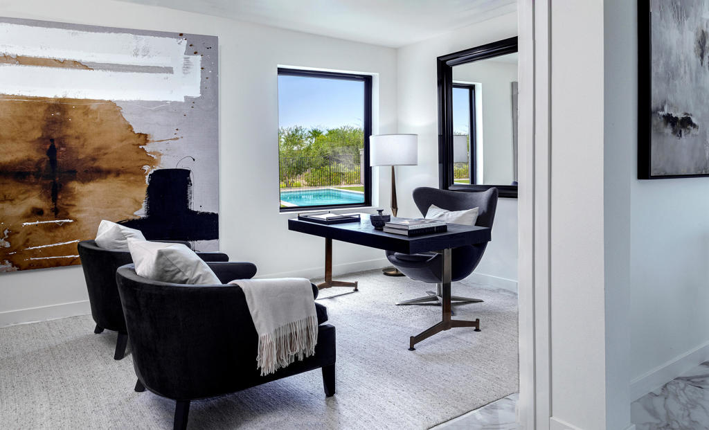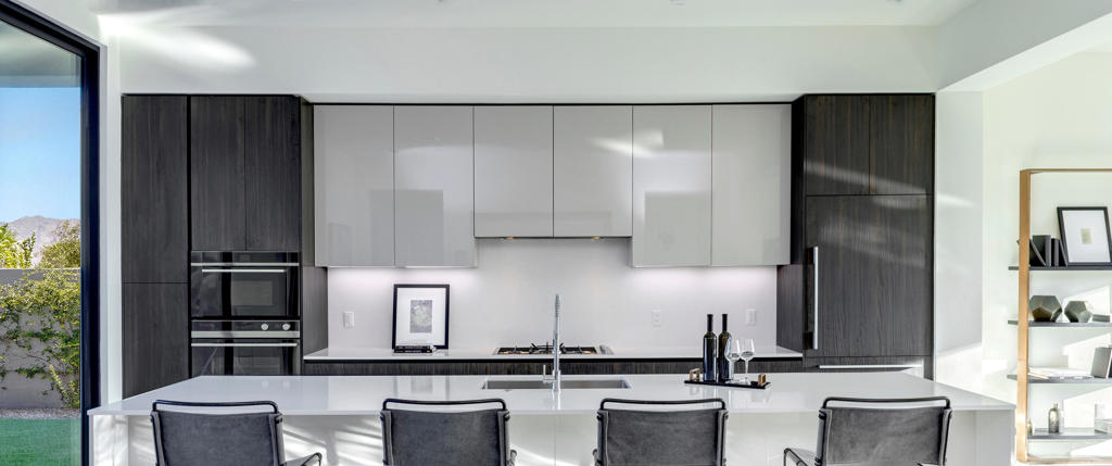 The Balinese. Classic design meets modern touch, and result in this warm inviting residence inspired by Balinese culture, aesthetic, and vibe. Large glass openings from front to back capture the mountain breezes and carry the outdoor experience the length of the property, with the reflecting pool in the back and front mountain views centered around the firepit at the front terrace. Our largest floor plan provides for especially large bedrooms, the Main Bedroom with a sitting area by the poolside slider, and a huge walk-in closet. Another large bedroom could be used as a secondary main suite or a media room. An elegant office with pool views rounds out this captivating home. These 3 Bedroom/ 3.5 Bath plans provide back yard privacy with front mountain view luxury. Beautiful finishes: Monumental Glass sliders, Fisher & Paykel appliances, European cabinetry and fixtures, pools and spas and many other luxe elements contribute to its distinctive and classic La Quinta residence. NOTE: Interior photos are of a prior modeled home, finishes may vary.