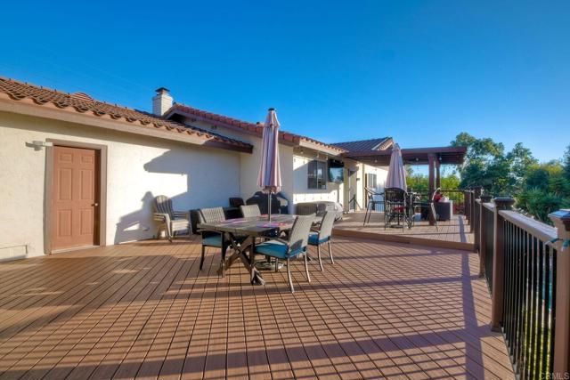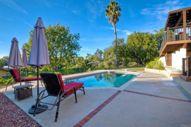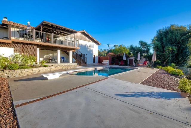 North County’s best kept secret with San Marcos Schools, detached workshop, RV parking, HUGE yard, and more! This thoughtfully constructed home is perched among the hills in one of North County’s best neighborhoods. Enjoy western views for miles! 2281 Mira Sol lives like a single level home, offering three bedrooms and two bathrooms all on the main entry floor. Downstairs features an additional suite with a bedroom, full bathroom, and living area, perfect for guests, or it could easily be converted into a stand-alone unit and rented out for extra income. The home includes a new central air system, as well as a Quiet Cool whole-house attic fan. The beautifully landscaped outdoor spaces are ideal for entertaining, starring a recently built, 900 square foot top-of-the-line Trex deck completed with the highest quality materials and featuring multiple electrical outlets, interior switched string lights, patio cover with fan, and a 65” outdoor TV. The deck overlooks a solar-heated pool, large concrete patio with electrical access, spacious grass yard, and automatic drip irrigated rose/herb garden. The fully fenced property offers mature fruit trees (orange, tangerine, lemon), a second, detached 2 car garage perfect for hobbies, cars, or storage, and plenty of open land to build another unit/ADU. A “tack room” below the home provides even more storage as well as a bonus half-bathroom. Boat or RV parking is conveniently located with full hookups (sewer, power, water). This home is in the San Marcos Unified School District, one of the top five school districts in San Diego County! With Highway 78 and the Inland Rail Trail plus shopping and restaurants just down the hill, all of North County is easily and quickly accessible.