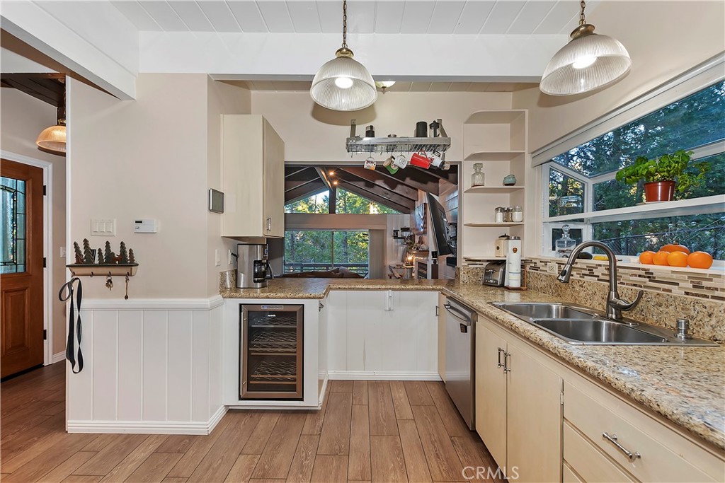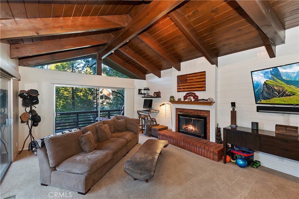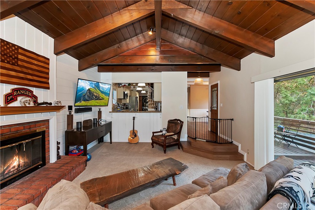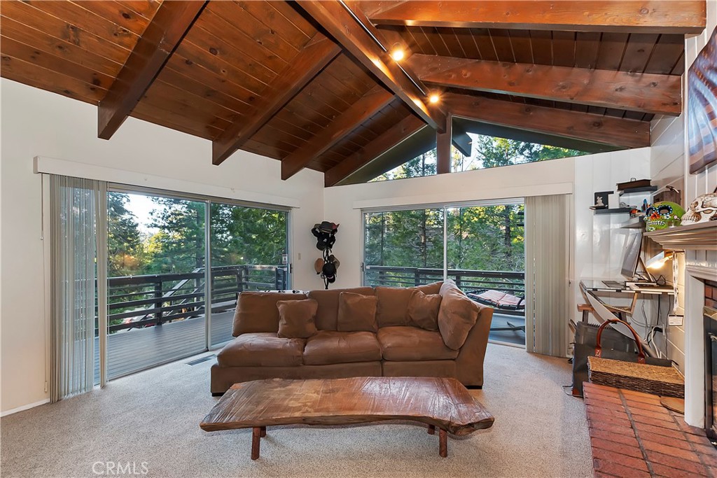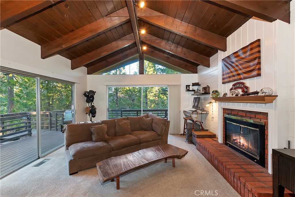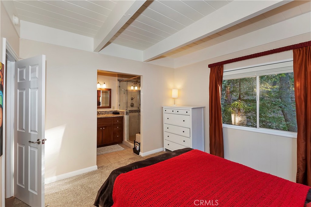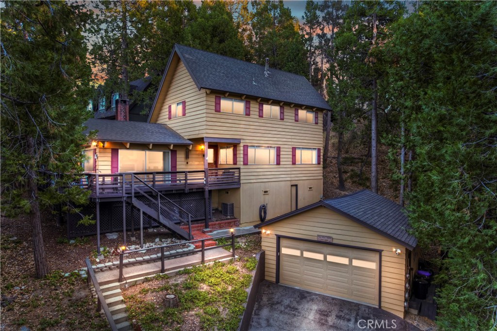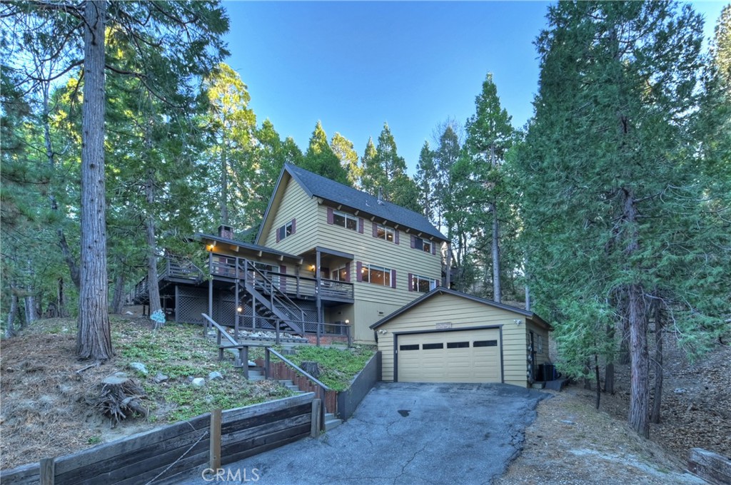 Pride of Ownership throughout this updated 3 bedroom, 2 bathroom, 1552 SF turnkey home with two car detached garage and "Lake Rights" to private Lake Arrowhead. Open floor plan with wood beamed ceilings and cozy fireplace in living room which opens to kitchen and dining room. Kitchen features granite counters, stainless appliances including wine fridge, upgraded wood-like tile floor, large pantry, laundry area and access to backyard. Primary bedroom with en suite bath complete the main level. Upstairs you will find two spacious bedrooms with oversized closets and secondary bathroom. Hidden updates that you won't see include PEX plumbing and new sewer line. Truly a charming tree-house feel to this immaculate cabin which is ideal for entertaining with large deck that has a 7000 BTU UV heater to keep you warm on cool mountain evenings and a level fenced back yard. Schedule your showing today!