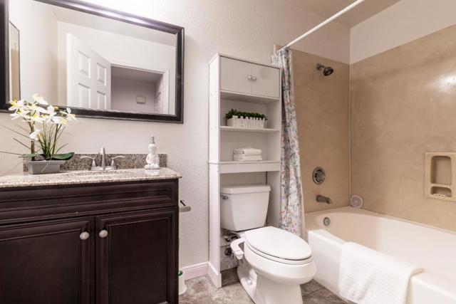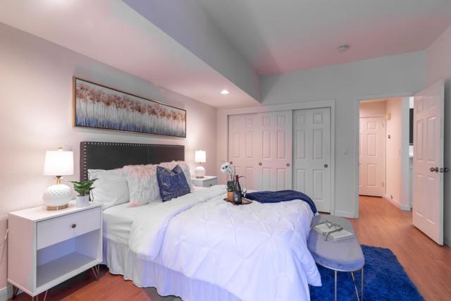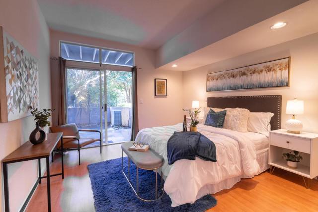 Welcome to Parkview Green Circle. Serene first floor 1 bed/1 bath condo. Spacious living/dining room with laminate flooring, cozy gas-log fireplace and sliding door to covered patio area that backs to greenbelt plus a peek view of San Jose Muni Golf Course. Lovely kitchen with stainless-steel stove, microwave and dishwasher. The bedroom features sliding door to covered patio area that overlooks green belt and golf course. Hall bathroom features tile floor, large tub/shower area. Linen and coat closet. Raised panel doors. Central forced air heating and cooling. Inside laundry closet with full size washer and dryer. Attached 1 car garage with overhead storage. Freshly painted interior. Pool and greenbelts in complex. Walking distance to Townsend Park and just 1.5 miles to nearby Berryessa BART station.
