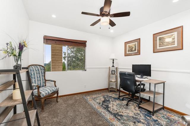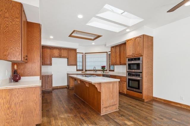 Don't let this rare opportunity to own a home in highly sought after Green Valley Highlands Poway, pass you by. This is a 4007sq ft 4BR, 3.5BA with an oversized three car garage with added storage space. It sits high on a hilltop with amazing views. The house is tucked into the hillside for added privacy. Take full advantage of the phenomenal half acre property with fun filled gatherings or relax on your spectacular wrap around deck and enjoy the breathtaking panoramic sunset views. You will be greeted by your custom driveway with inlayed brick that leads you up to your double door entry way. The lush landscaping with mature Queen Palms complement the idyllic neighborhood and you will be greeted by the smell of fresh paint. upon entering the house. Vaulted ceiling in the living room gives you an open airy feeling with French doors leading out to the deck and a large Bay window to capture the views. The double sky light in the kitchen floods the room with natural lighting. Ample cabinet space for all your needs and beautiful white Corian countertops for easy clean up. The kitchen provides room for multiple chefs to work together to create your holiday meals. Entertain your guest in the massive living room or outside overlooking the verdant landscape. An additional office space was added for the telecommuter or craft room. There are multiple fruit trees on the property to enjoy your own organic fruit. An absolutely unbeatable location within the award-winning Poway Unified School District, close to nature trails, Lake Poway, shopping, restaurants, hospitals, Rancho Bernardo Welcome to 15918 Lime Grove Road located in Green Valley Highlands north Poway's highly sought after community. The neatly manicured landscaping and mature trees complement this idyllic neighborhood. You will be greeted by your custom driveway with inlayed brick that leads you up to your double door entryway. A quiet street welcomes you to this 4007sq ft, 4BR, 3.5BA with an oversized three car garage. Your new home is situated high on a hilltop with privacy galore. Stepping inside the smell of fresh paint will greet you. The house is filled with several sky lights including one in the entry way and two in the large kitchen to bring in the natural lighting. The heart of the home is undoubtedly the kitchen. The kitchen offers a comfortable layout for multi chefs with lots of counter space and an abundance of cabinets with sleek Corian countertops that complement the stainless steel appliances perfectly. Enjoy your own private massive living room, the log fireplace in the living area adds a cozy ambiance perfect for cooler evenings creating a focal point for all the family to gather around and stay warm. Your guest will enjoy their own living room downstairs a large wet bar with refrigerator and microwave, perfect for enjoying a drink of their choice. The downstairs includes a secondary fireplace. Wake up to expansive, westerly views and enjoy your morning coffee out on the wrap around deck and listen to the sound of birds singing. The house has been freshly painted in an off white neutral palette. Take full advantage of the phenomenal half acre property with fun filled gathering or relax on your spectacular wrap around deck and enjoy the breathtaking panoramic sunset views. Vaulted ceiling in the living room gives you an open and airy feeling. Entertain your guest in the massive living room or outside overlooking the verdant landscape. There is an indoor laundry room with cabinets and an additional sink. There are several fruit trees on the property including a mature orange tree and a lemon tree to enjoy your own organic fruit. There are several other areas in this house for additional uses. Imagine having your own craft room, workout room or a home office. There are so many different possibilities! Incredibly low H.O.A's of only $50.00/year. An absolutely unbeatable location within the award-winning Poway Unified School District, close to natur...