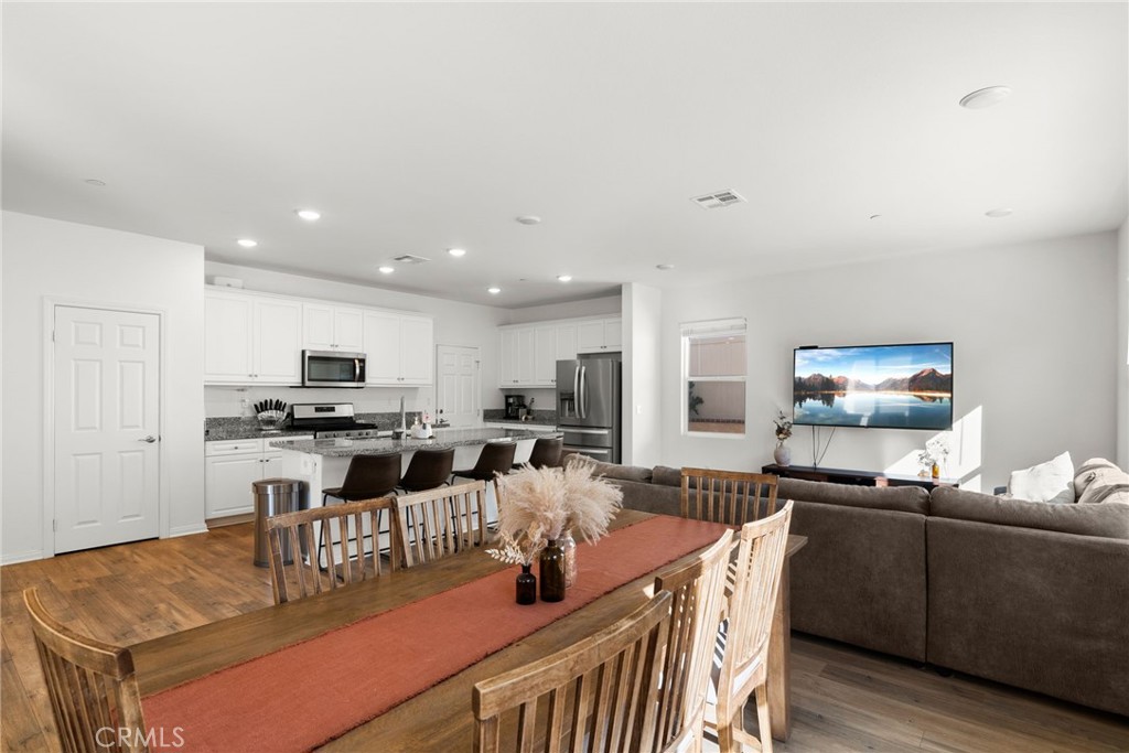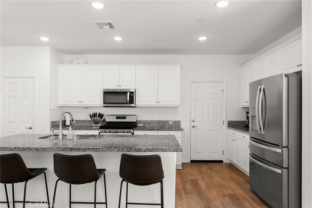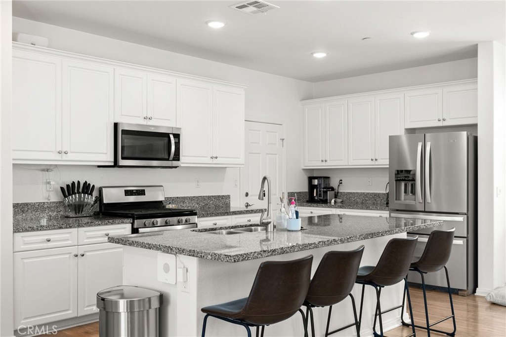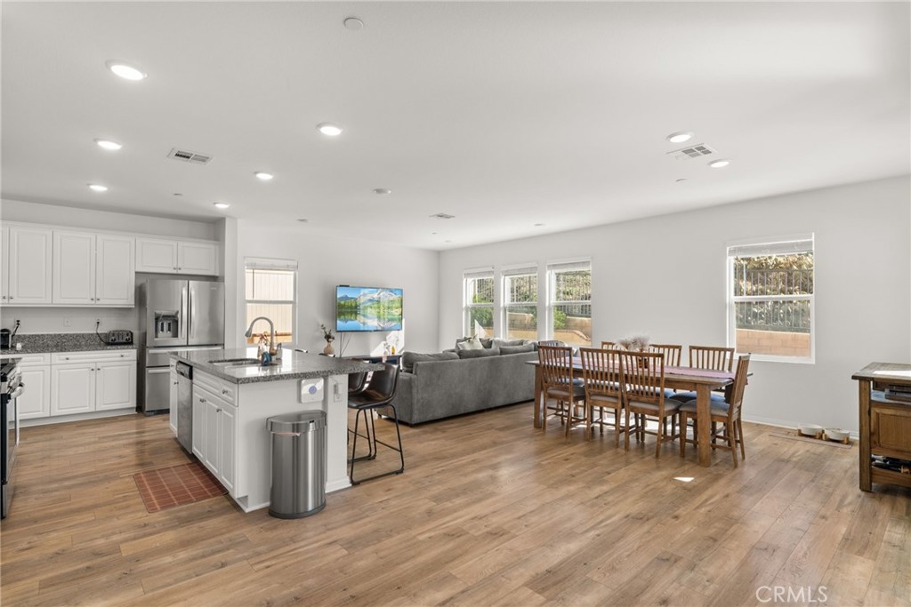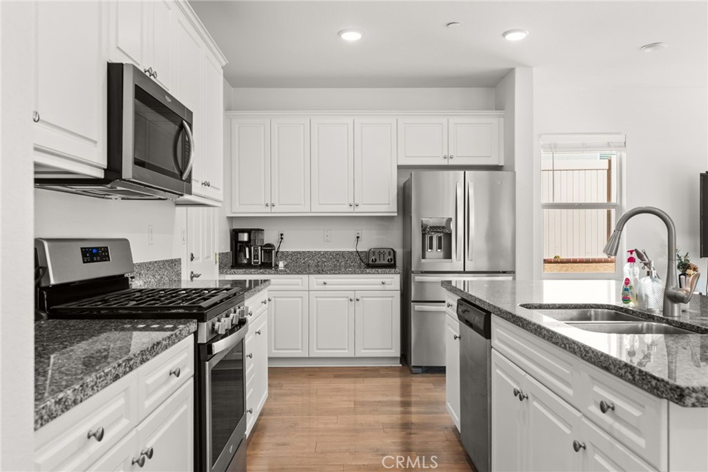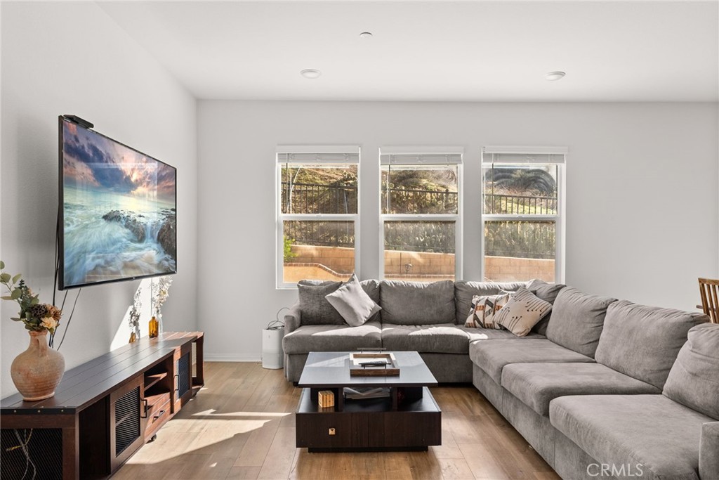 Resort style living at "Terramor" Guard gated community with resort style amenities throughout community- including pool, gorgeous "Veranda" clubhouse, BBQ areas, multiple trails, dog park, community gardens, parks and more. This 4 bedroom, 3 bath home will provide all of your needs.The inviting curb appeal draws you to the entry to the home with the warm inviting engineered floors, a first-floor in-law suite/guest room, full bath, a chef's white gourmet kitchen with huge island and granite that opens to the bright living and dining areas with windows that have views to your private backyard, patios and the hills backing the development. Heading up the stairway to the upper floor landing and family room, there are 2 additional bedrooms, laundry room and the bath straight forward.To the right you find the oversized Owners Suite and en-suite with large walk in closet, dual granite vanity, separate soaking tub and shower. The views are nice and private from the suite. Exiting the downstairs to the fully covered patio with built in serving bar, gas fire pit and fully finished low maintenance private rear yard. Planters have drip irrigation throughout. The Home is equipped with Solar system and tankless water heater that reduces those energy bills ! 2 car garage and driveway.