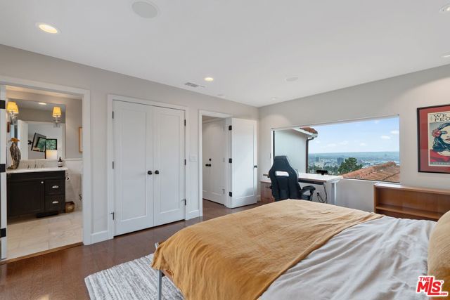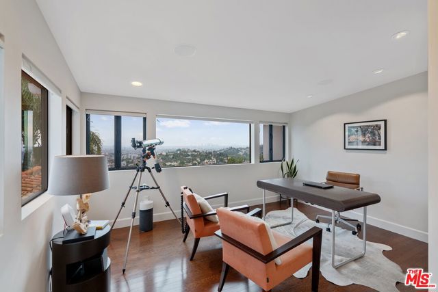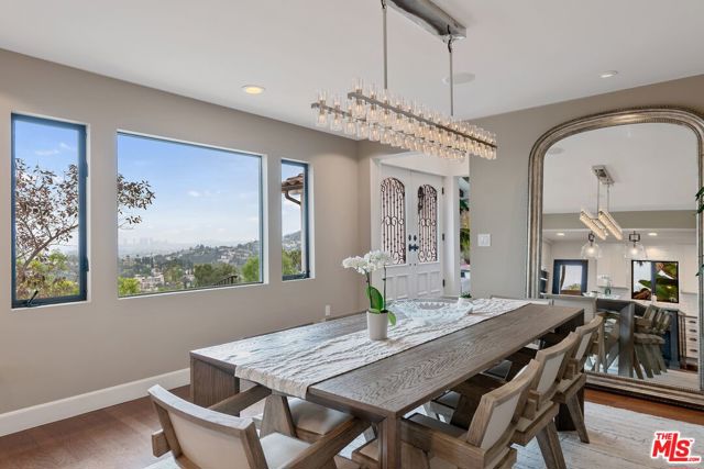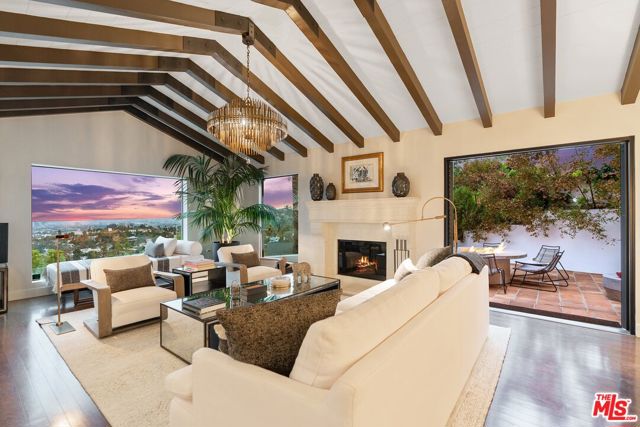 Experience the pinnacle of Hollywood Hills living at the Remsen Residence, where history, luxury, and breathtaking views combine to create an unparalleled experience. This meticulously updated 3 bedroom, 3.5 bathroom Spanish-style beauty is nestled atop the highly sought-after Hollywood Dell neighborhood. This historic property, once the home of socialite musicians Dorothy and Lester Remsen, was a gathering place for Hollywood's most iconic stars, with its awe-inspiring panoramic views of Los Angeles, extending all the way to the Pacific Ocean. Step inside this enchanting home, where the allure of history seamlessly merges with modern luxury. The chef's kitchen, replete with a wine bar and top-tier appliances, effortlessly connects to a charming breakfast nook and a spacious dining room. Thoughtfully designed to maximize the breathtaking views, this open-concept space is equally perfect for intimate gatherings and lavish soirees. The living room exudes grandeur, featuring a dramatic open-beam ceiling, an impressive fireplace, and a generous picture window that frames the mesmerizing Los Angeles cityscape. French doors open from the living room to a secluded patio, complete with a raised conversation fire-pit, creating an inviting retreat for relaxation and entertainment. The luxury extends seamlessly to the outdoors, where a stunning pool and meticulously crafted outdoor kitchen provide the perfect backdrop for poolside gatherings. Lush gardens, carefully manicured greenery and custom fencing envelop the property, offering serenity, beauty, and privacy - a haven for you and your pets. Additional amenities include a private two-car garage and convenient freeway access, ensuring both security and ease of living.