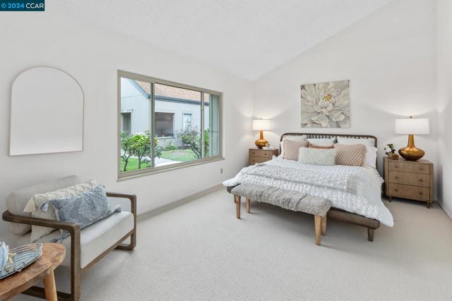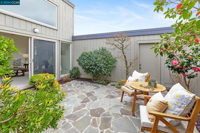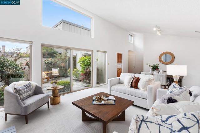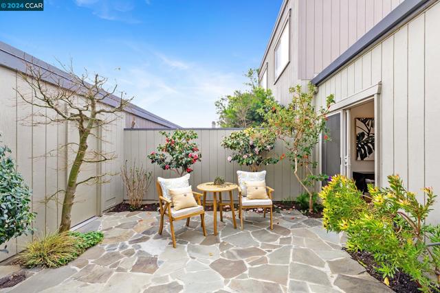Step into coastal-inspired living at 1019 Tobago Lane, a charming 2 bedroom, 2 bath end unit oasis on Bay Farm Island. This home enjoys vaulted ceilings, abundant natural light from the many dual pane windows, and has been freshly painted and carpeted. The primary suite is spacious with vaulted ceilings, ensuite bathroom, and a walk-in closet. Outside, through the sliding doors, the private stone patio with mature trees offers a place to unwind and enjoy one of Alameda's famous gentle zephyrs. Located in beautiful Garden Isle HOA, the home has access to the community pool, clubhouse and the many lush greenbelts and walking paths that meander through the neighborhood. The location is ideal just minutes from the Harbor Bay Ferry Service, Corica Golf Course, abundant shopping, Oakland International Airport, and beautiful San Francisco Bay.