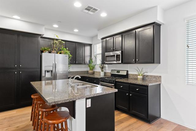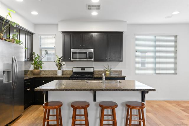 Welcome to 1713 San Francisco, a luxurious townhome nestled within the vibrant community of Esperanza at Vista Del Sur. This stunning 3 Bedroom (4 including den/downstairs bedroom), 2.5-bathroom with the showroom model features an unparalleled blend of sophistication and comfort with perfect POOL Views within the community. Upon entering, you'll be greeted by an abundance of natural light that illuminates the spacious open concept living area. The modern kitchen is a chef's dream, featuring high-end stainless steel appliances, an oversized island, and custom wood flooring that adds an elegant touch. The first floor boasts a bedroom/office, providing flexibility for guests or as a home office. Step outside into the private yard with Pool VIEWS, where you can enjoy serene pool views. This family-friendly community offers numerous amenities, including a pool, spa, playgrounds, and BBQ areas, ensuring endless entertainment options for all ages. Furthermore, the property is within walking distance to Pacific Gateway Park, which features beautiful hikes and walking paths, and the local high school and fields. Conveniently located just minutes away from Cross Border Xpress and the San Diego Airport, as well as Las Americas Outlets and other shopping destinations, this townhome offers the perfect blend of luxury and convenience. Don't miss out on the opportunity for 1713 San Francisco to be your new home.