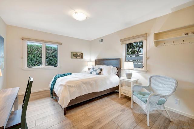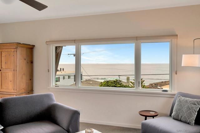 FURNISHED - Fantastic contemporary beach house steps to world famous WindanSea Beach. This detached condo was beautifully remodeled in 2016 with the finest quality finishes and is perfect for an executive rental or a family. Gourmet kitchen has stainless steel appliances and granite counters. Tile floors. Incredible panoramic ocean view deck above the sumptuous primary suite on the second floor. 3 Bedrooms, 2 Baths, 2-car detached tandem garage is in the back off of the alley. Incredible walkable location south of The Village of La Jolla. Property is legally a condominium, there are 2 detached homes on the property, this is the front house. Tenant pays water, sewer, S.D.G. & E., cable TV and internet.