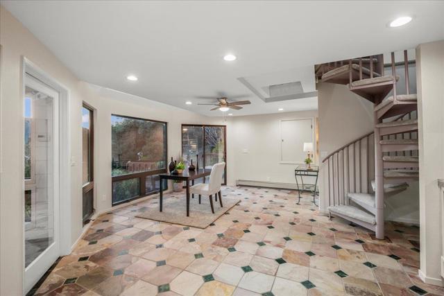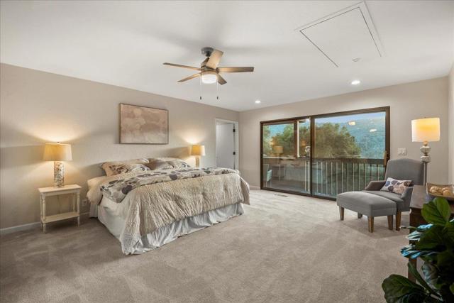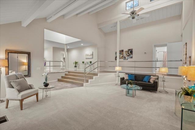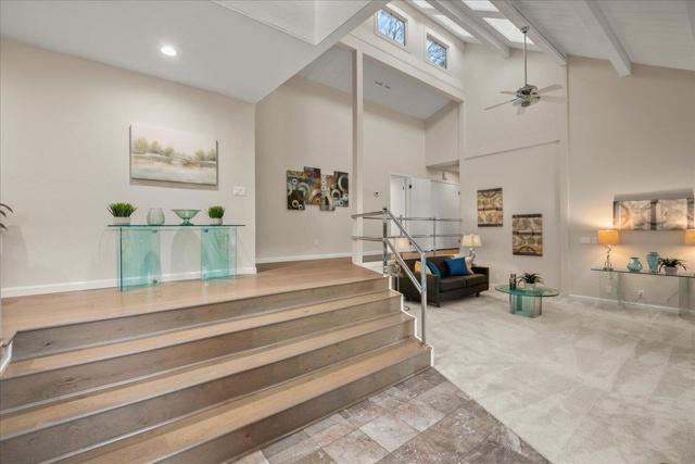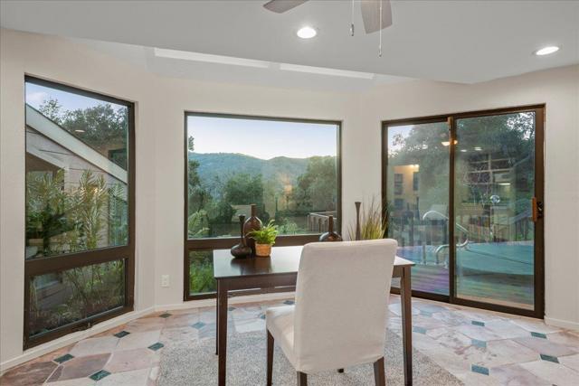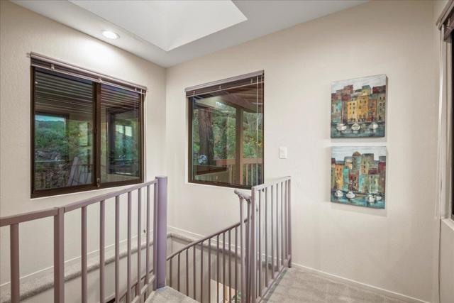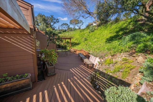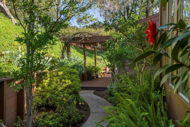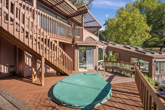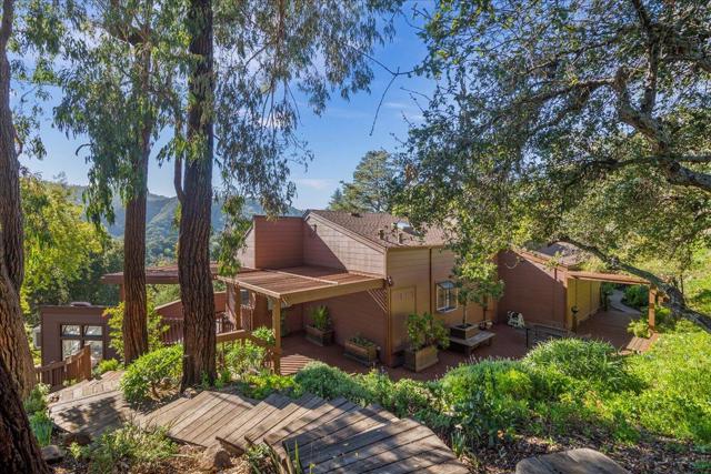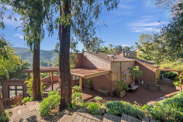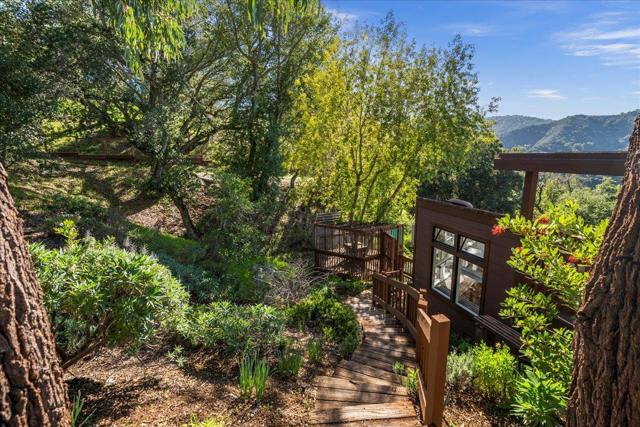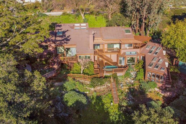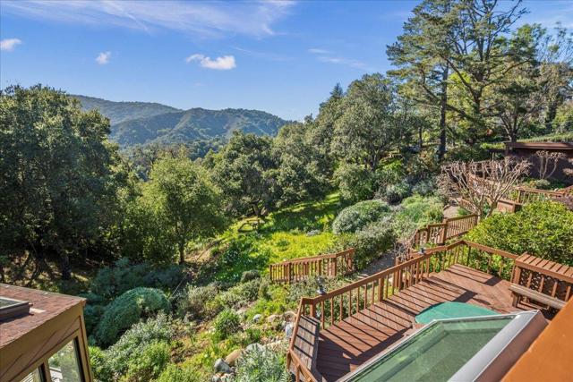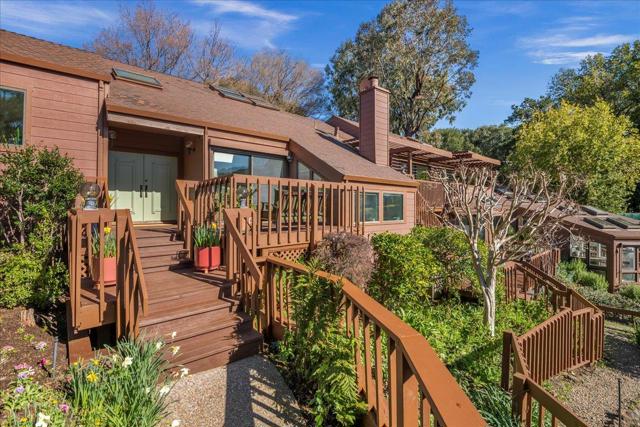 Welcome to this beautiful property in the prestigious Los Altos Hills. The home greets you with an airy entry foyer and is filled with an abundance of natural light. Vaulted ceilings in the main living area with a cozy gas fireplace and an adorable reading nook. Bright and cheerful kitchen with Spanish floor tiles, center island, recessed lighting and plenty of cabinetry and storage. Separate formal dining room with decorative lighting offers a great space to entertain. Primary bedroom has access to the upper deck which offers peaceful and breathtaking sunset views. Multiple skylights scattered throughout the home. Office/den also has access to the upper deck. Freshly painted, new carpet, updated bathrooms, spacious laundry room, central heating & A/C on the main level. The lower level was designed for lounging, recreation and gardening enthusiasts. The sun filled Conservatory features a full bathroom which can be used as an ADU and has its own separate outside entrance. There is a separate heating & cooling system on the lower level. Expansive grounds with beautiful views, multiple entertaining areas, decks, gazebo/tree house, beautiful trees, numerous flowering trees and native flowers. Dont miss out on this lovely Los Altos Hills home.
