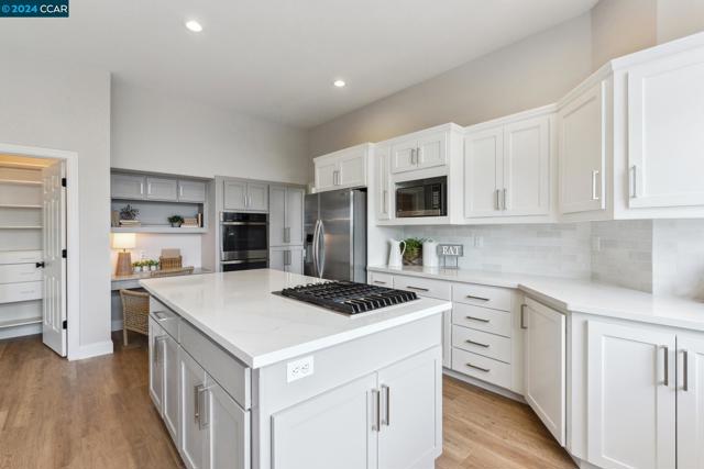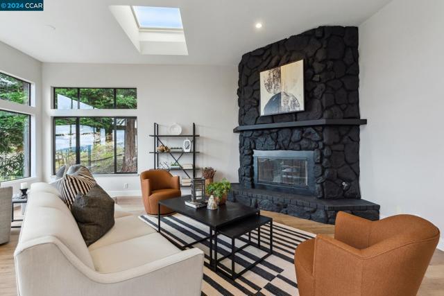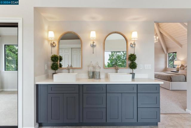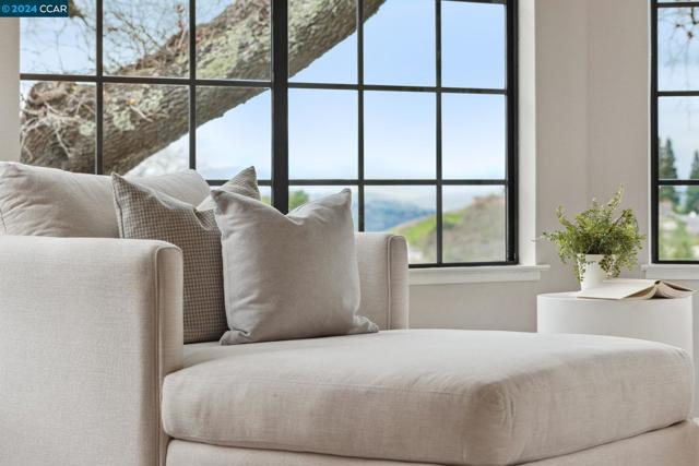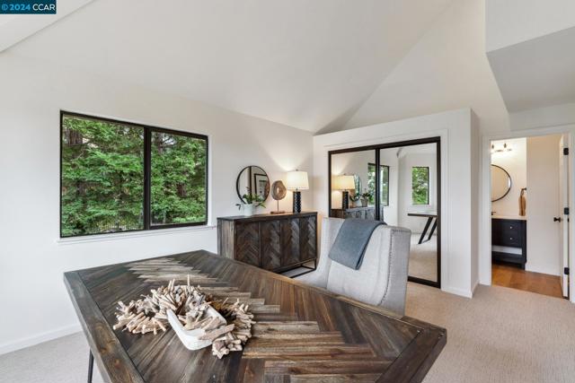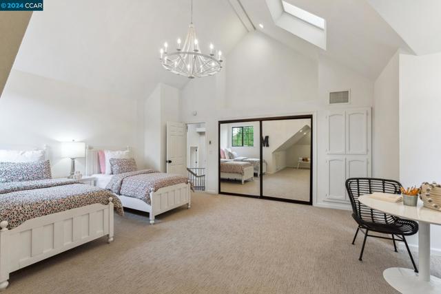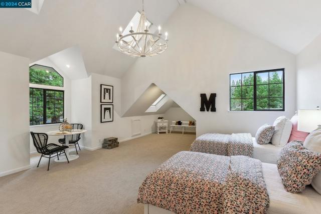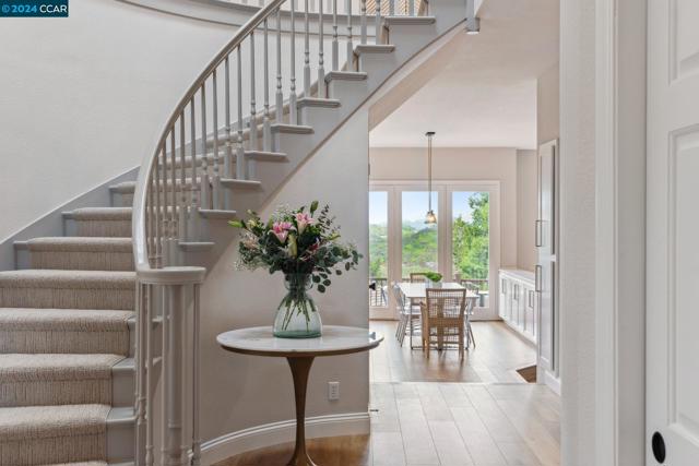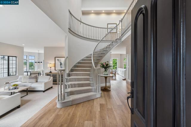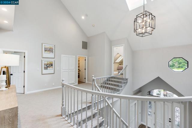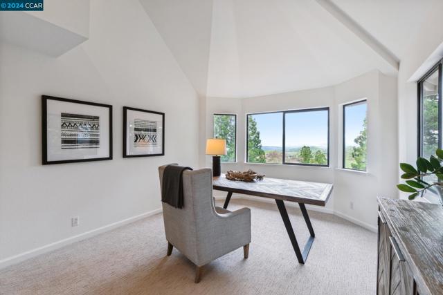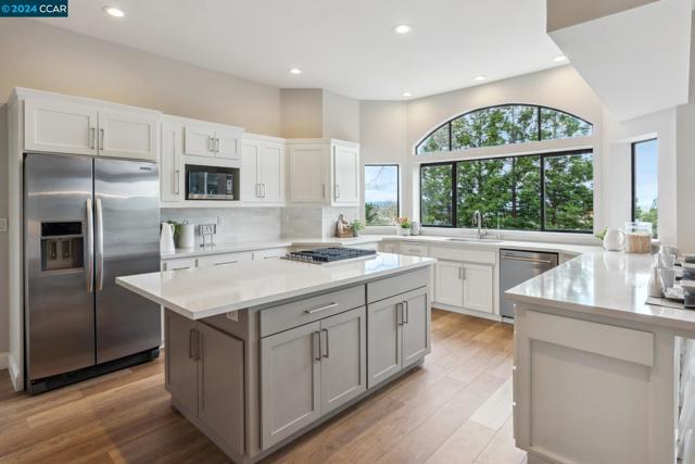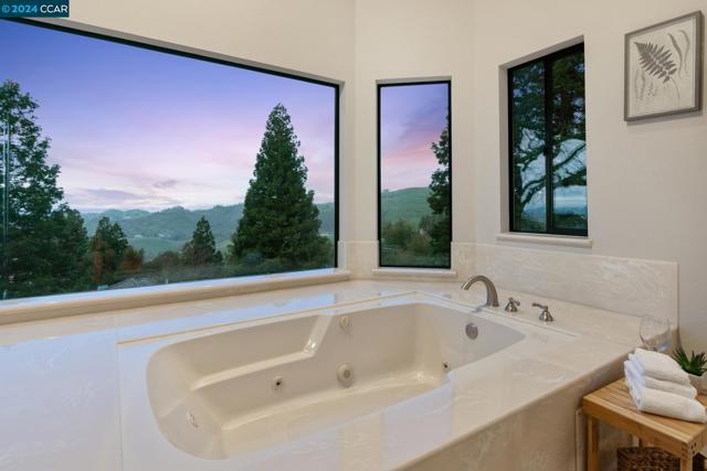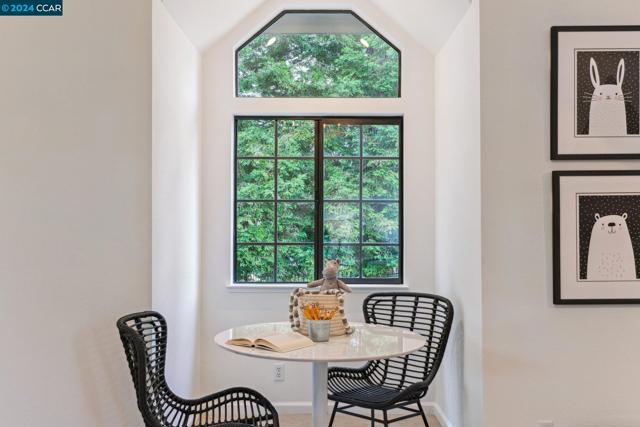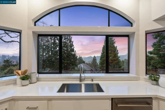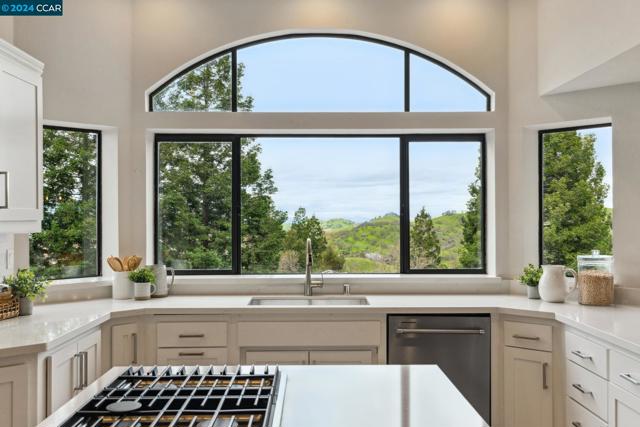 Light-filled, spacious and peaceful property with views located on a cul de sac in prestigious Roundhill North! Walls of windows and soaring ceilings bring the outside in to this traditional and open floorplan. The living and dining rooms are encompassed by an iconic well-cared-for oak tree. Updated kitchen with large island, beautiful cabinetry and quartz countertops opens to an extensive family room. Both rooms face an expansive deck with views of the surrounding hills. Enjoy the sunset while entertaining on the deck or stone patio with plenty of room for a grass or turf play area. One bedroom with full bath on the main level. A curved staircase leads to an impressive second level with angled ceilings, massive primary suite, another en-suite bedroom and super cool “loft-like” bedroom with fun area for kids to hang out. 3 car garage. 1.7 miles to Roundhill Country Club with swimming, bocce, tennis and golf. Open Saturday and Sunday 1-4pm.