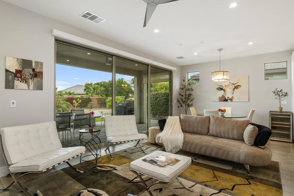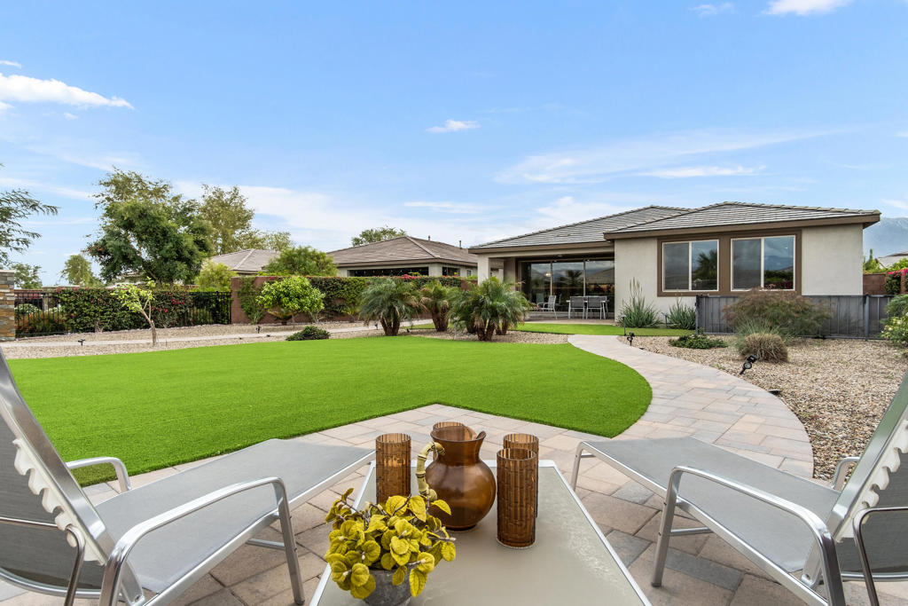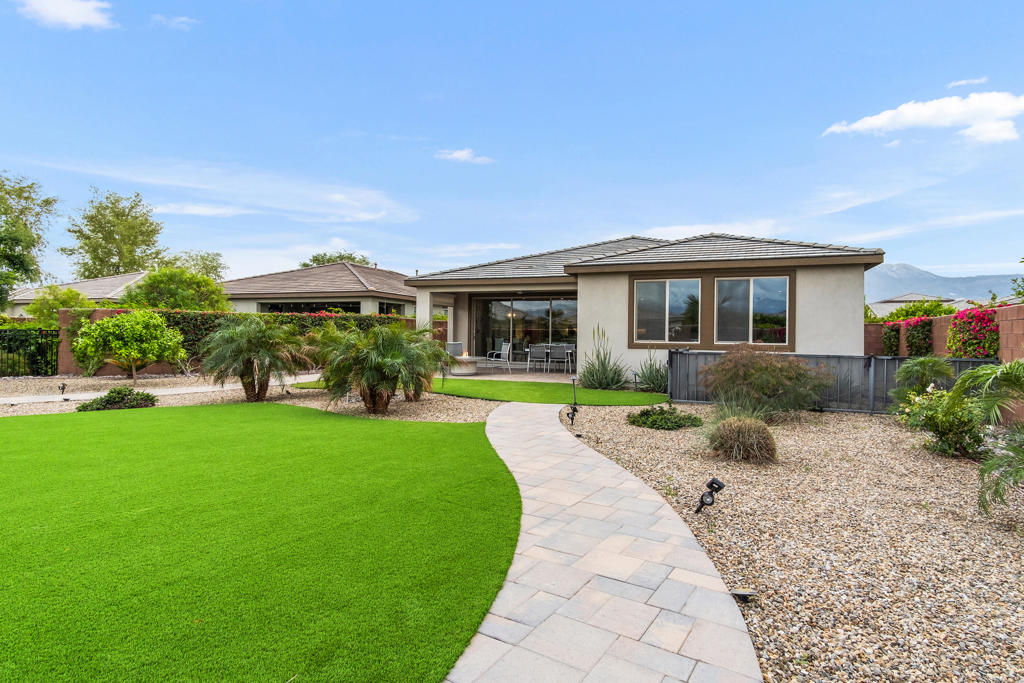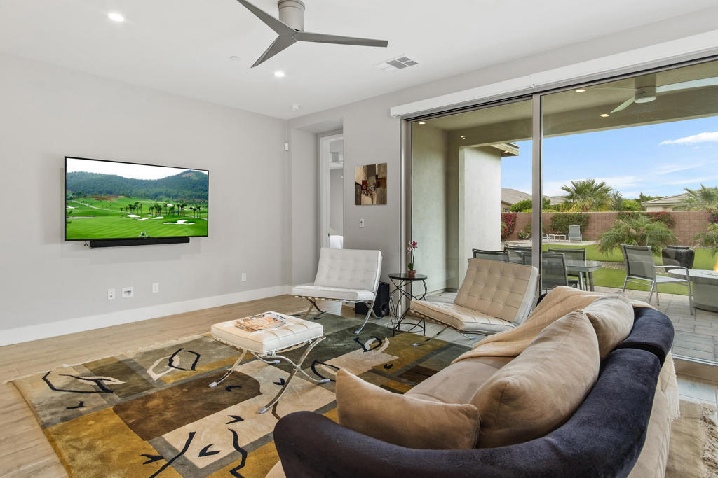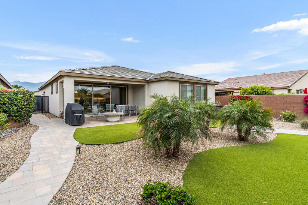 Welcome to Trilogy Polo Club, with low HOA dues and amazing amenities! The house is located in a mixed aged section of housing and a convenient walk from the clubhouse. The beautifully designed open floor plan, offered fully furnished, boasts 3 bedrooms plus a Den/Office and 2 baths. Every bedroom is adorned with custom electric window shades, ensuring both style and practicality. The great room seamlessly connects to an inviting kitchen with a spacious island, quartz countertops, and top-of-the-line stainless steel appliances. Retreat to the primary suite, boasting a gorgeous dual sink vanity, a large upgraded tiled walk-in shower with a bench, & a walk-in closet. The two additional guest rooms share a well-appointed bathroom with a vanity and tiled shower. The large family room and dining room sliders create a seamless transition to the DOUBLE-SIZED backyard, featuring a covered patio with pavers - an ideal outdoor sanctuary for morning coffee or evening gatherings. Surrounded by the beauty of the desert landscape and boasting captivating views of the Santa Rosa mountains, this backyard is your private escape. Another notable feature is the owner's foresight in installing power outlets in the garage, ready for your EV charging station! Club amenities include: Tennis/Pickleball Courts, Fitness Center, Resort/Lap Pools, Poker/Billiards room, restaurant/bar and MORE! An absolute MUST-SEE desert lifestyle home!