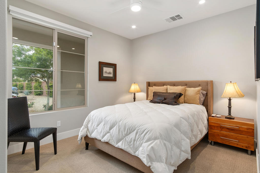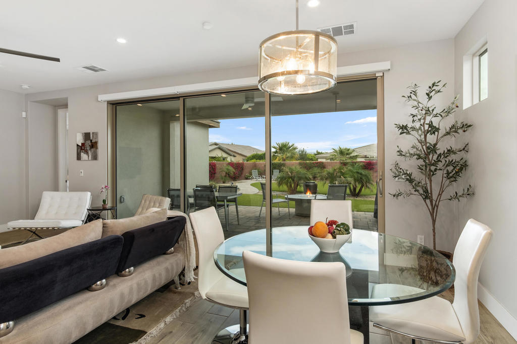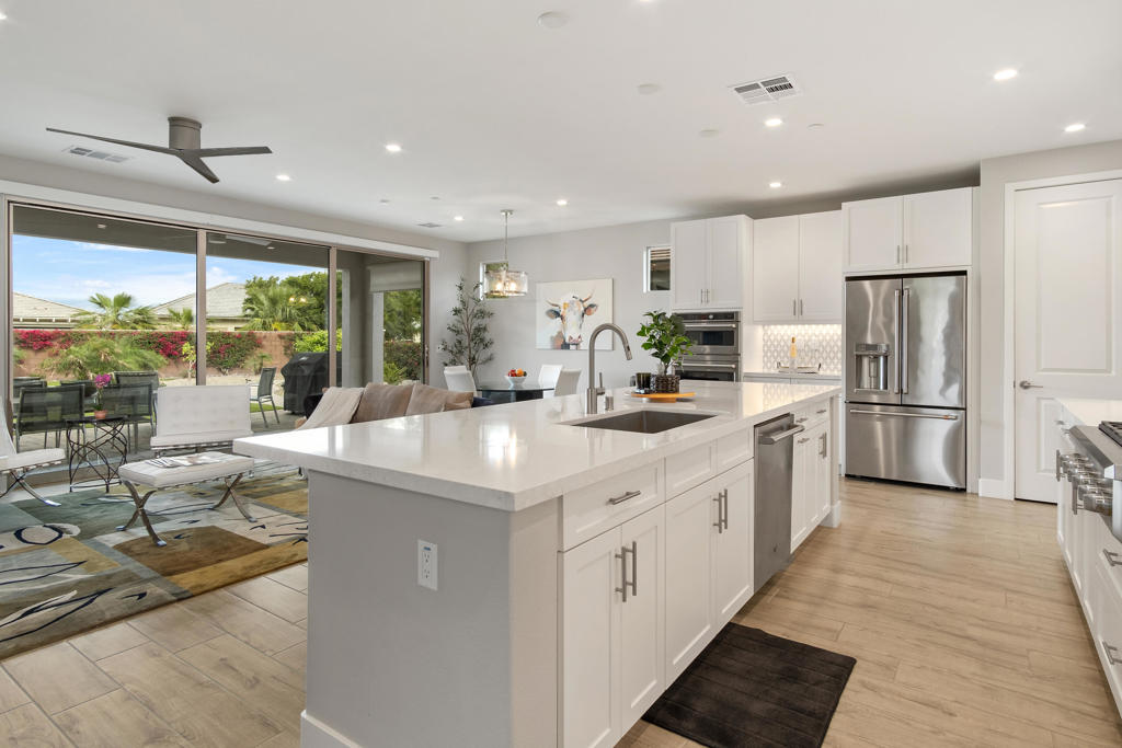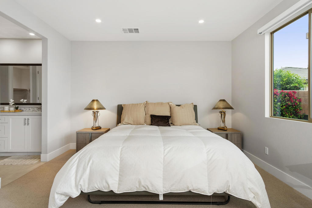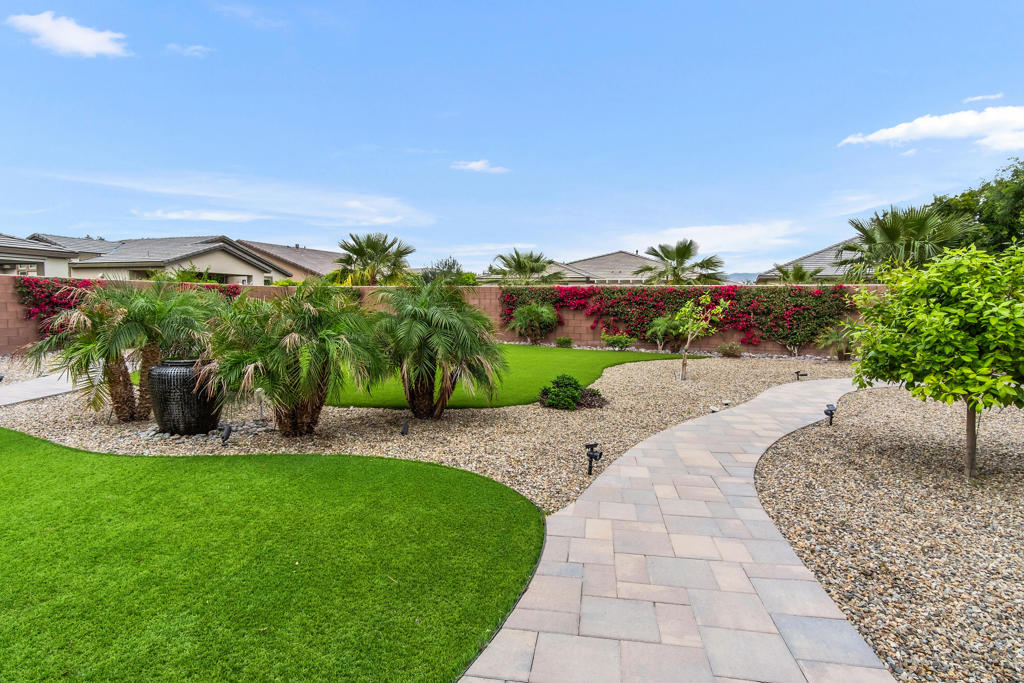 Welcome to Trilogy Polo Club, with low HOA dues and amazing amenities! The house is located in a mixed aged section of housing and a convenient walk from the clubhouse. The beautifully designed open floor plan, offered fully furnished, boasts 3 bedrooms plus a Den/Office and 2 baths. Every bedroom is adorned with custom electric window shades, ensuring both style and practicality. The great room seamlessly connects to an inviting kitchen with a spacious island, quartz countertops, and top-of-the-line stainless steel appliances. Retreat to the primary suite, boasting a gorgeous dual sink vanity, a large upgraded tiled walk-in shower with a bench, & a walk-in closet. The two additional guest rooms share a well-appointed bathroom with a vanity and tiled shower. The large family room and dining room sliders create a seamless transition to the DOUBLE-SIZED backyard, featuring a covered patio with pavers - an ideal outdoor sanctuary for morning coffee or evening gatherings. Surrounded by the beauty of the desert landscape and boasting captivating views of the Santa Rosa mountains, this backyard is your private escape. Another notable feature is the owner's foresight in installing power outlets in the garage, ready for your EV charging station! Club amenities include: Tennis/Pickleball Courts, Fitness Center, Resort/Lap Pools, Poker/Billiards room, restaurant/bar and MORE! An absolute MUST-SEE desert lifestyle home!