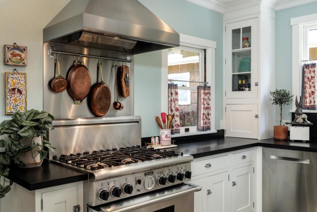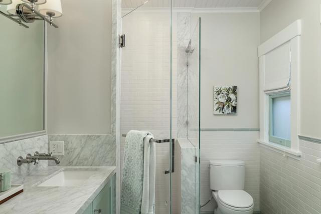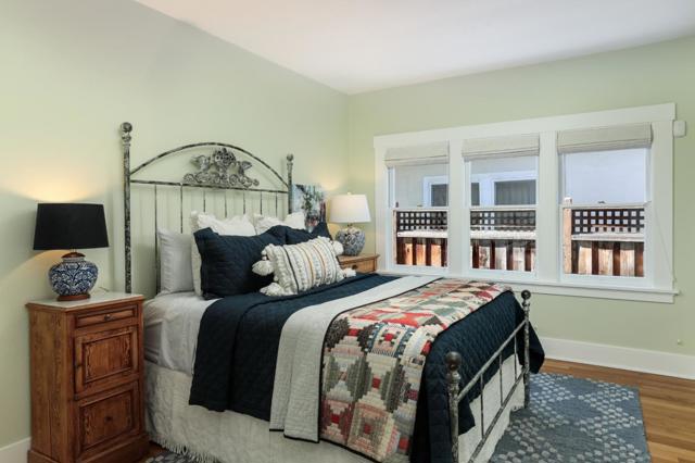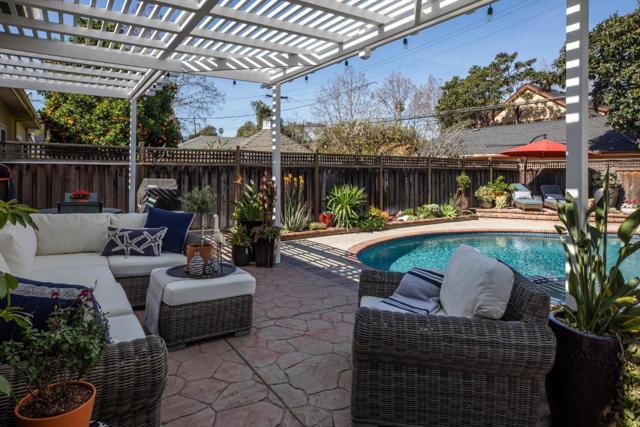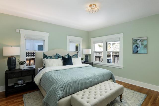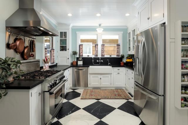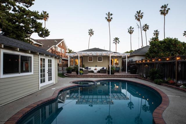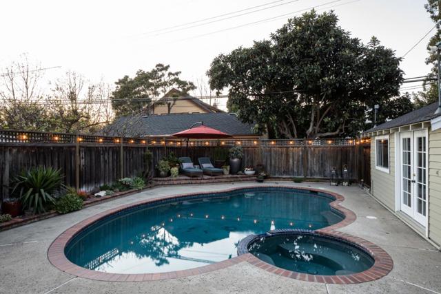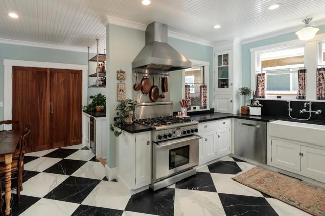 Nestled in The Rose Garden's Shasta Hanchett Park neighborhood, this Wolfe & Higgens single-story masterpiece graces picturesque Martin Ave. A charming cottage garden and inviting brick walkway frame the entrance, complemented by custom three-piece front windows. Inside, the living room boasts an original Bachelder tile fireplace, bespoke built-in shelving, and a media console marrying walnut accents with brass hardware. The spacious dining room, adorned with a marble-topped buffet and designer chandelier, is perfect for hosting memorable gatherings. The vintage-style kitchen, renovated to perfection, features a six-burner Thermador cooktop, farmhouse sink, black quartz counters and checkered tile floors. Beadboard ceiling, in-counter wine cabinet, and bistro shelves add to the timeless appeal. Four bedrooms, including a versatile office space, and meticulously renovated bathrooms with mosaic marble flooring and custom vanities ensure comfort and style. Just steps away from The Alameda, indulge in coffee at Crema, shop at Whole Foods, or dine at popular eateries like Hop & Vine. Conveniently located near downtown San Jose,with easy access to Caltrain and major highways, this home seamlessly blends timeless elegance with modern conveniences, a true sanctuary in the Silicon Valley.