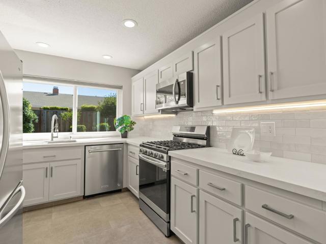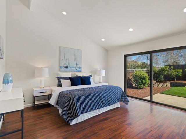 Nestled within the coveted Woodside of Almaden neighborhood this immaculately remodeled single-story home embodies the essence of secluded Almaden living. Enhanced by soaring ceilings and an abundance of natural light, the open floorplan seamlessly blends common areas and guides you effortlessly towards the beautiful backyard. The gourmet kitchen boasts stainless steel appliances including a 5-burner gas range, and opens to Breakfast Nook & Family Room. Light-filled Living Room overlooks the backyard patio with outdoor kitchen, large grassy area plus a generous side area. Four bedrooms including a spacious Primary Bedroom. Remodeled Baths too! Double-pane windows, recessed lights, indoor laundry, central air conditioning and quality Presidential roof ensure comfort and convenience. Remodeled bathrooms too! Ideal cul-de-sac location and only steps away from Los Alamitos Creek and miles of biking/walking trails. Highly sought after Almaden schools including Graystone Elementary, Bret Harte Middle & Leland High. You'll love it!