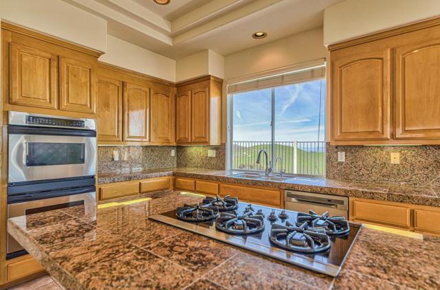 One of Las Palmas' most popular floor plans awaits you on a breathtaking view lot! Nestled back on the over half-acre parcel rests this beauty with endless possibilities. Walking in the front door you will notice the abundance of light streaming in the windows lighting up a large great room with formal dining and warm fireplace. The kitchen is a Chef's dream with granite countertops and wonderful Island cooktop with bar style seating and pantry. Cozy family room and fireplace perfect for movie night. There is a convenient door out back for soon to come summer barbecues and fun! Down the hall is large secondary bedrooms with a Jack and Jill bathroom. Each room has its own vanity for getting ready on those busy school days. There is also a jr suite with own full bathroom and shower perfect for guests. Private primary bedroom has incredible space to stretch out and relax. This exclusive bedroom has its own fireplace and private door to outdoors. The bathroom suite has double vanity, jacuzzi tub and separate shower. The walk-in closet has plenty of room for expansive wardrobes. The 5th bedroom is perfect as a bedroom or office and privately located near entrance. 3 car garage, solar power, and a large laundry room near the garage help complete this perfect package.