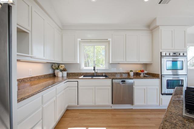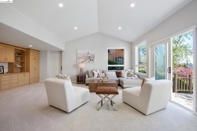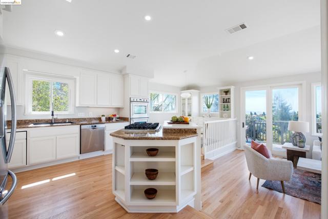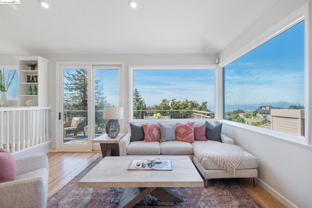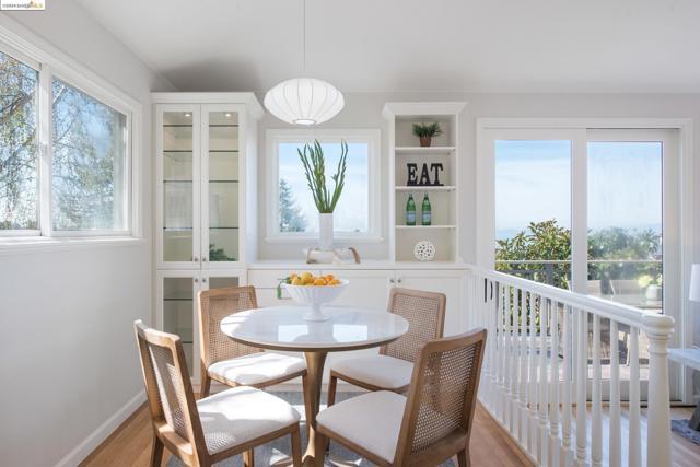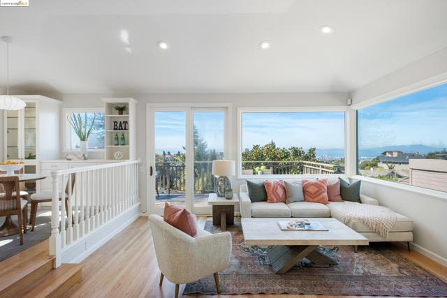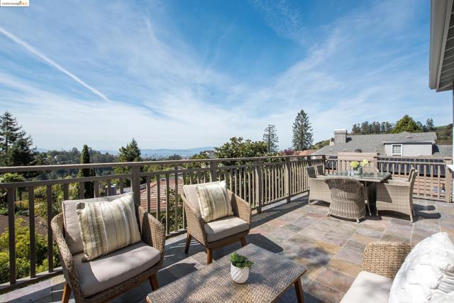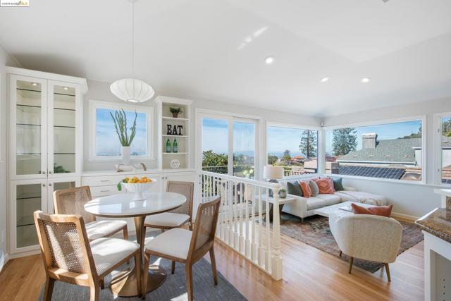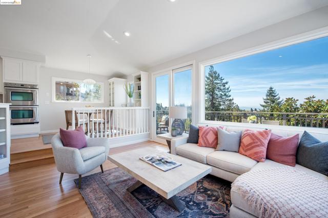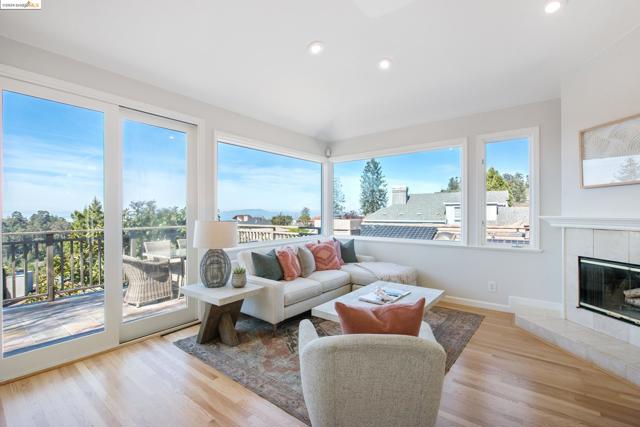 NEW LISTING! TWO LEVEL LIVING IN LOWER MONTCLAIR! PANORAMIC SAN FRANCISCO, GOLDEN GATE, MT TAM & BAY VIEWS! Spacious kitchen, family room, and breakfast nook combo opens to slate deck with sweeping views! 4+ bedrooms, 2 baths on one level! Primary suite with gas fireplace and relaxing, separate alcove for reading & retreat! Primary bathroom with Japanese soaking tub, open shower and two vanities! Generous sized bedrooms! Formal living room with fireplace & sliders to front patio! Enormous rumpus room, with vaulted ceilings and abundant built-ins leads out to lower deck and yard with level areas, raised planting beds, and large chicken coop! Newly painted interior & exterior! New, modern lighting! Freshly refinished, gleaming hardwood floors! Two car garage with interior access! Open 3/31 2-4:30. Views: Downtown