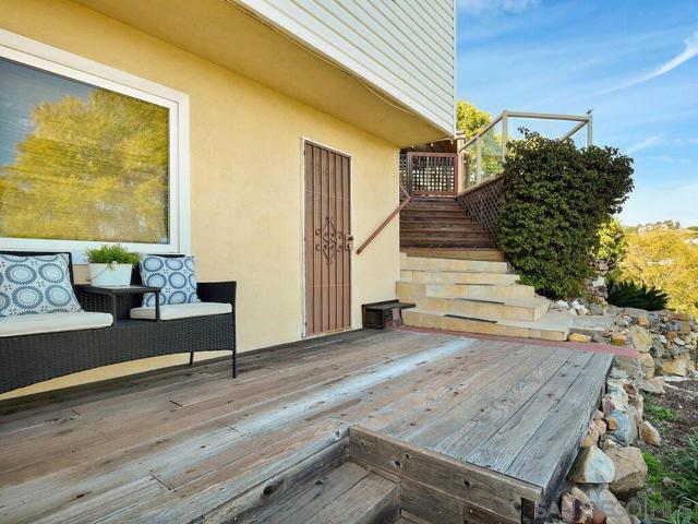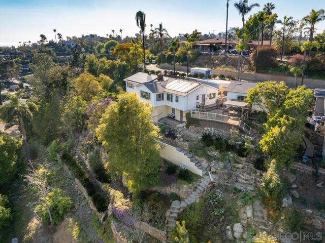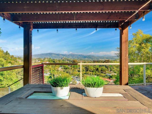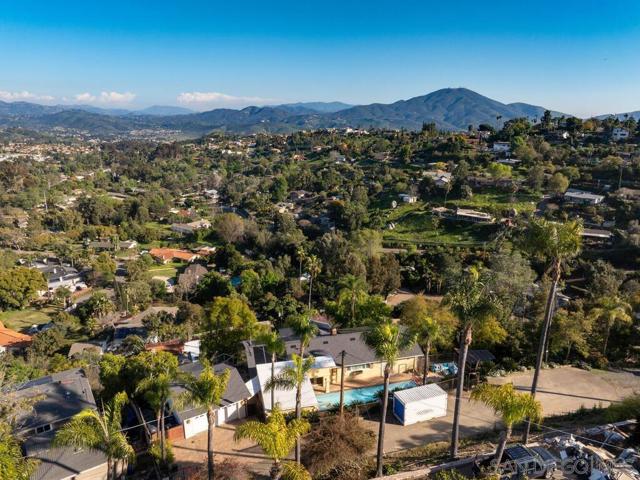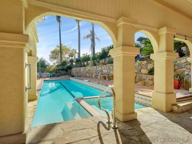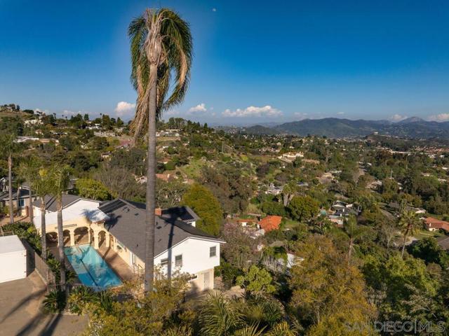SWEOBTW $1,279,000 - $1,379,000. NOT A DRIVE BY! YOU MUST COME INSIDE THIS SPECIAL PROPERTY TO EXPERIENCE THE INCREDIBLE LAYOUT, STUNNING VIEWS AND MASSIVE POTENTIAL! Welcome to this Mt. Helix residence offering BREATHTAKING PANORAMIC MOUNTAIN & WESTERLY VIEWS that will captivate you from every angle. Step inside to discover a well-appointed interior that lives like an expansive single level home w/3 bdrms, 2.5 baths and gorgeous living space all on the same level. In addition to the main level, this home offers a lower level accessed from the interior or use separate exterior entrance for possible guest quarters. Currently, downstairs functions as a den/recreation room & guest overflow. Put plans together to build it out as a refined and redefined guest suite(s) with plumbing already in place. Outside, you'll find a private, below-ground pool and hot tub, as well as a terraced back yard mature fruit trees, and multiple patios with panoramic view perspectives for outdoor enjoyment and entertaining. The property is equipped with central AC & heating, dual paned windows, whole house fan, new roof (2023), & owned solar panels (pool/spa & house) for energy efficiency. Whether you're enjoying the serene outdoor spaces or taking in the stunning views from almost anywhere on the property, this home offers a perfect blend of comfort, luxury, and natural beauty. Don't miss the opportunity to make this your own slice of paradise.