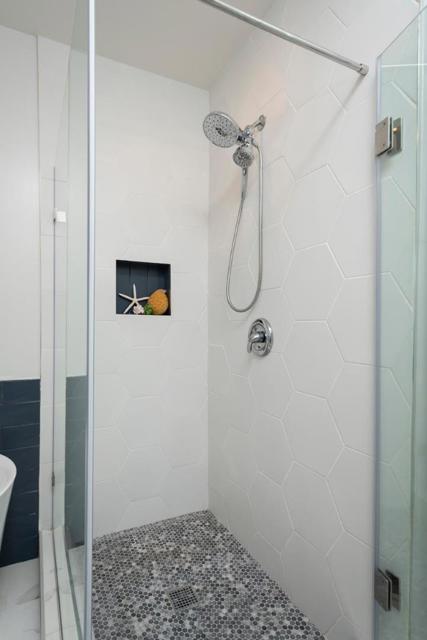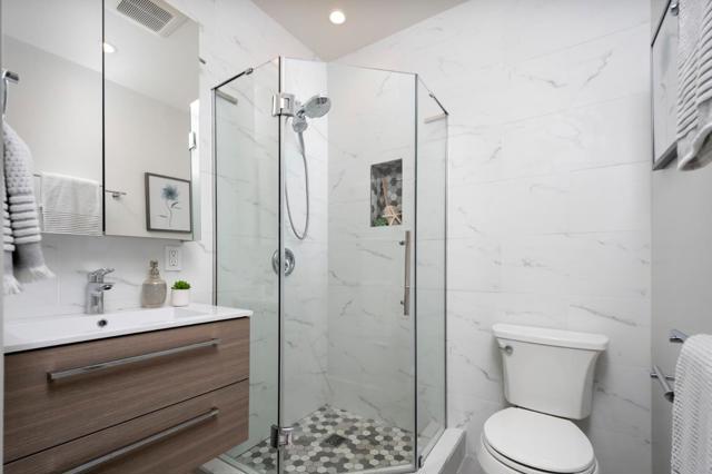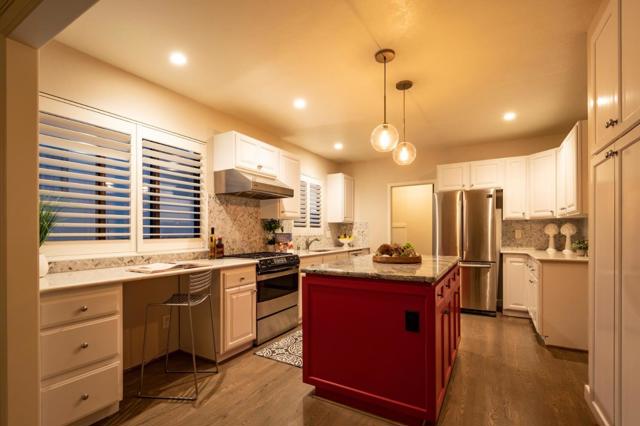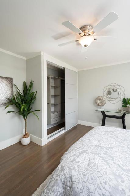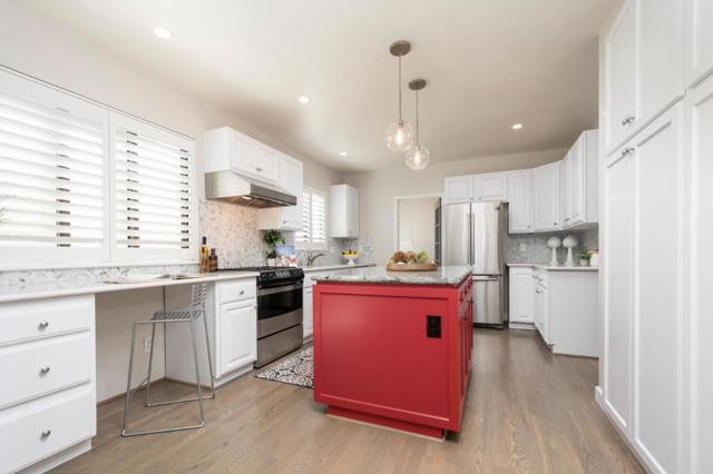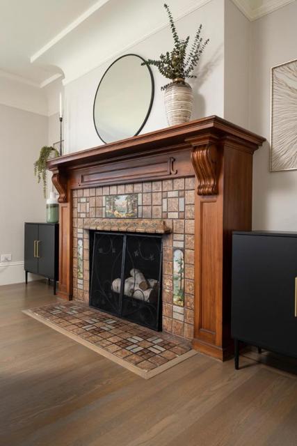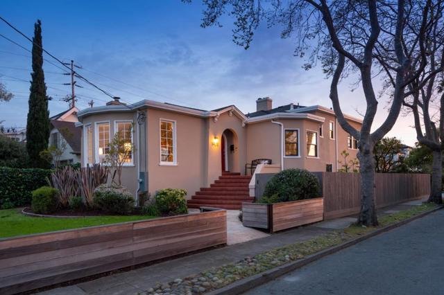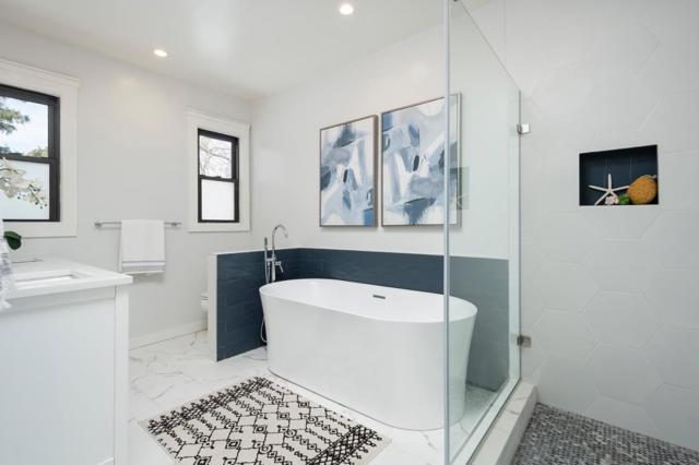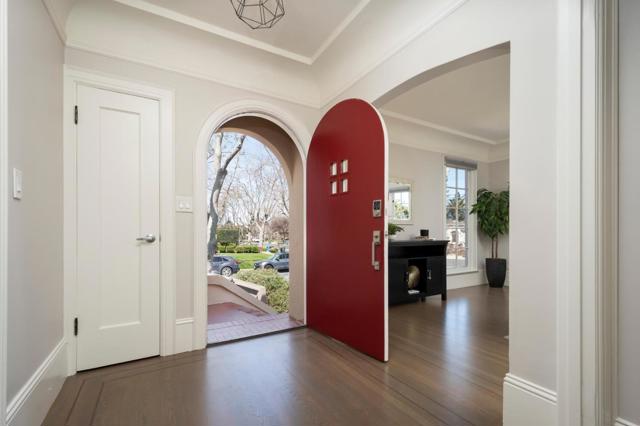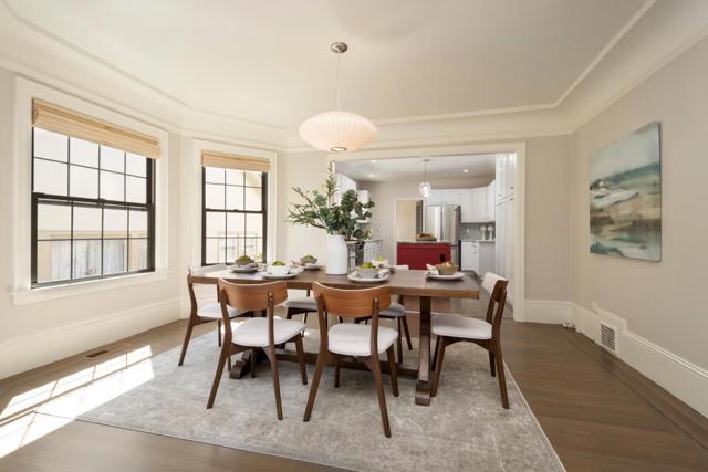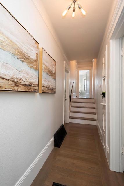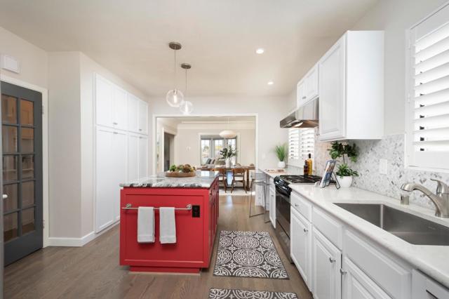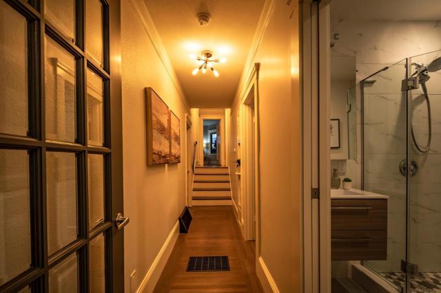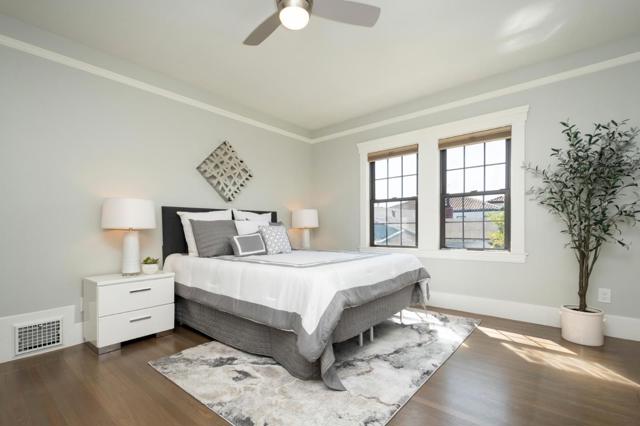 Magic of yesteryear effortlessly merges classic time-period charm with modern luxury in this 2,590 sqft corner lot home in the Hayward Park neighborhood. From exquisite tray ceilings to gleaming hardwood floors, every detail exudes elegance. Bay windows that open out and a custom fireplace with Batchelder tiles infuse warmth and character. Updated kitchen with Silestone Quartz countertops, kitchen desk, Herringbone backsplash, two pantries, and a vibrant red island with pull-out shelving, outlets, and bubble pendant lighting, making it a stunning focal point. With four bedrooms, two of which are luxurious suites, versatility abounds. The lower-level suite can serve as a media room, ADU, In-law unit or perfect for Boomerang kids. Indulge in three exquisite full bathrooms, stay organized with ample storage, organized closets, and a boutique-feel organized walk-in closet. Step outside to an inviting patio with string lights surrounded by lush landscaping and fruit trees (Meyer lemon, orange, Asian pear, fig, avocado, and blueberry bushes) so you'll always have your antioxidants and omega-3s on hand. Cozy front porch to take in the neighborhood. Owned solar panels and a Nest thermostat ensure sustainable, efficient living. Proximity to downtown and Central Park from your doorstep.
