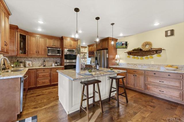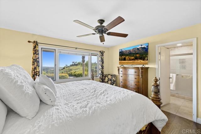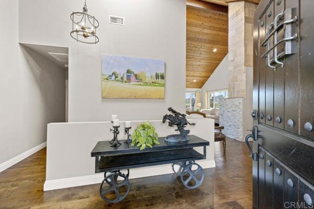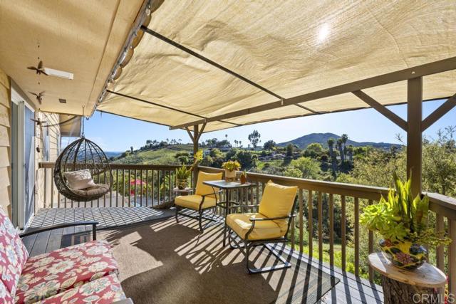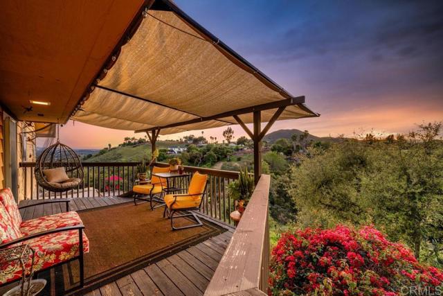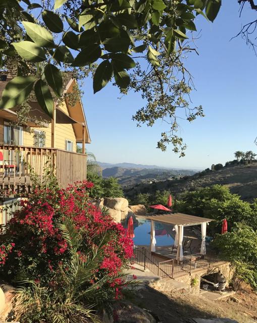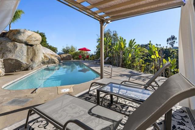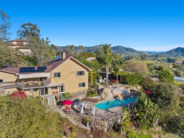 Indulge in the ultimate retreat: Luxurious panoramic oasis boasting a sparkling pool, nestled on sprawling 2.5 Acres in enchanting Fallbrook! This majestic haven features unique architecture, complete with a studio accessory dwelling unit (4th bedroom) and an extraordinary detached "Tiny House" ADU (5th Bedroom), offering unmatched comfort and privacy. Marvel at the grandeur of this multi-generational sanctuary, strategically positioned to command the MOST breathtaking views, designed for utter relaxation and sumptuous entertainment. Step inside to be enthralled by the exquisite touches, including stunning hickory wood flooring, opulent granite slabs, stainless steel appliances, and custom backsplashes. Delight in the gourmet kitchen, adorned with pecan wood cabinetry featuring soft close drawers, while the travertine and quartz fireplace soars high, illuminating the night with its radiant glow. Revel in the abundance of natural light pouring through multiple picture windows, enhancing every corner of this magnificent estate. Experience seamless indoor/outdoor living as you venture onto redwood decks, multiple patios, new view windows, a new A/C unit and water heater, all recently installed, and BBQ areas with your own cantina. Perfect for soaking in the surroundings and hosting gatherings. Embrace sustainability with the inclusion of a solar power purchase plan, ensuring efficient energy usage and cost savings. Equestrian enthusiasts will delight in the accommodation for horses, complete with ample trailer/boat access, a concrete paved RV parking area, with full hookups, and a spacious horse corral. With convenient access to the 15 freeway, downtown Fallbrook, Temecula, shopping destinations, and wineries, Every convenience is within reach. Prepare to be captivated from the moment you arrive—This exquisite residence is truly unforgettable.