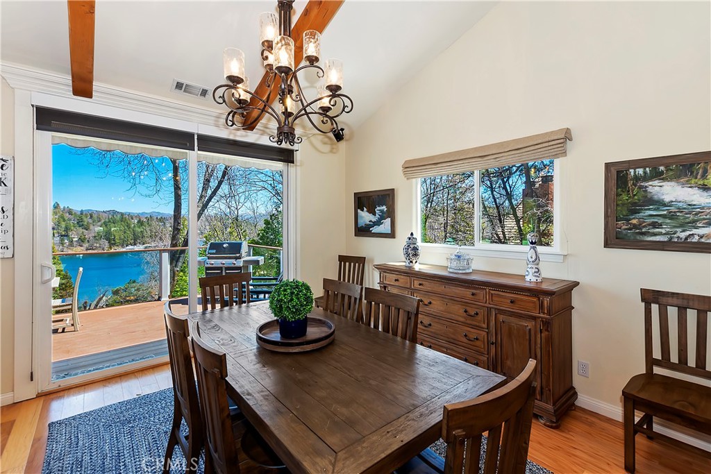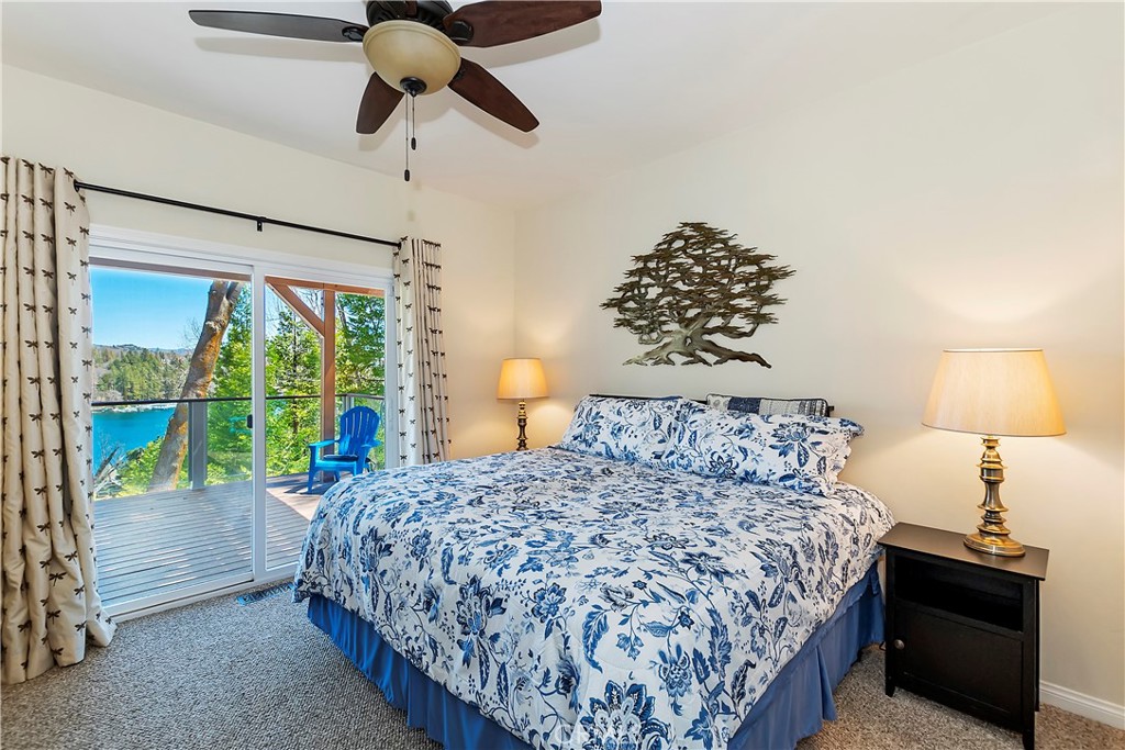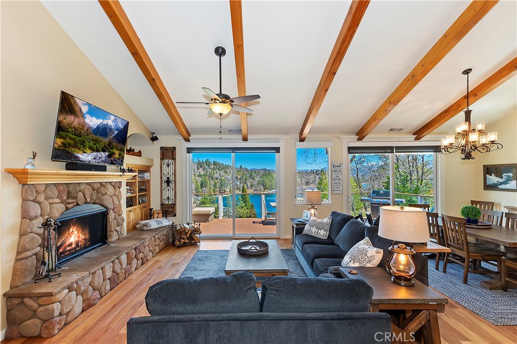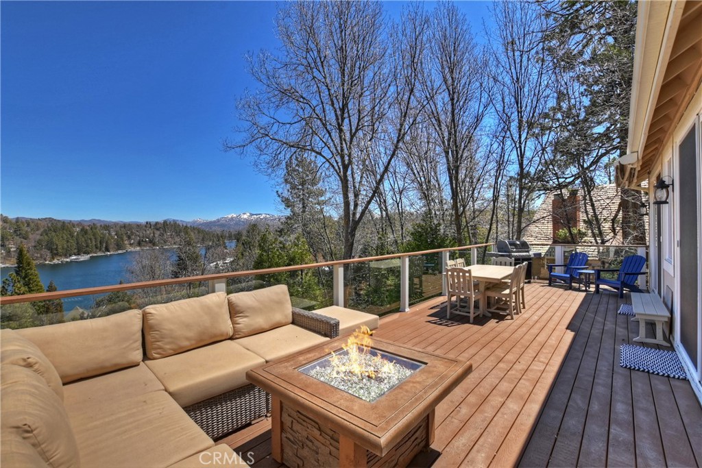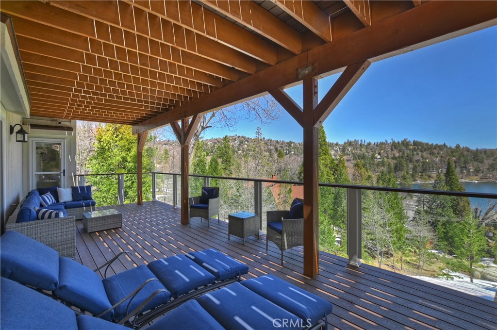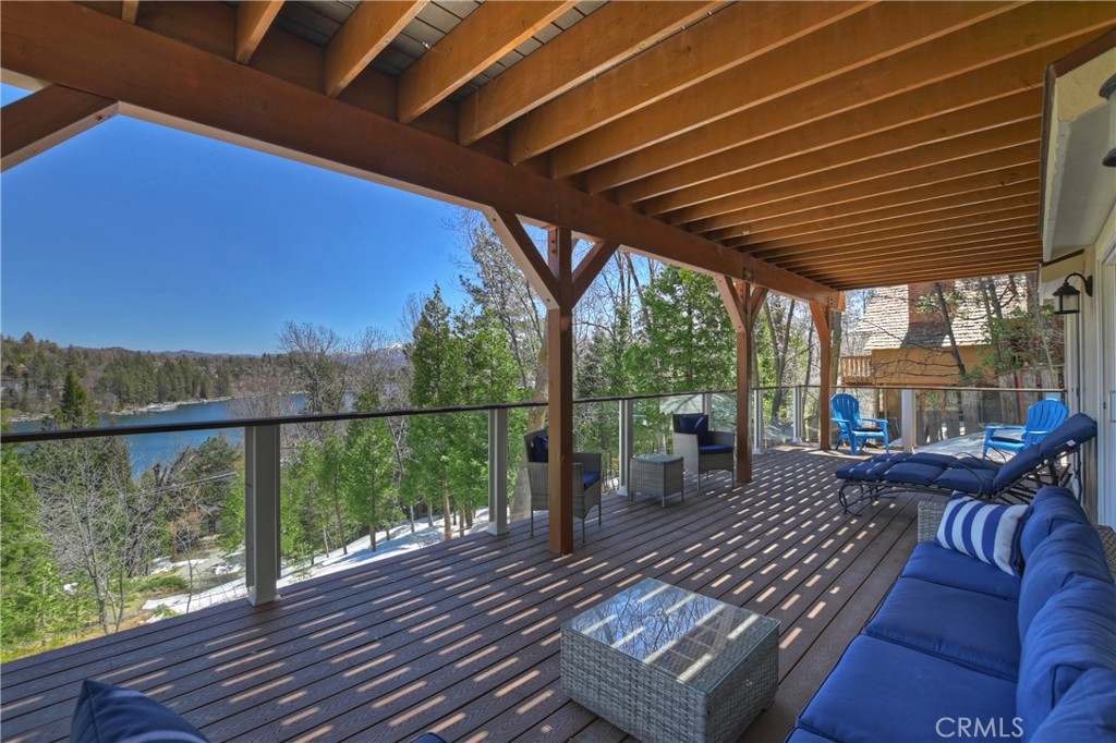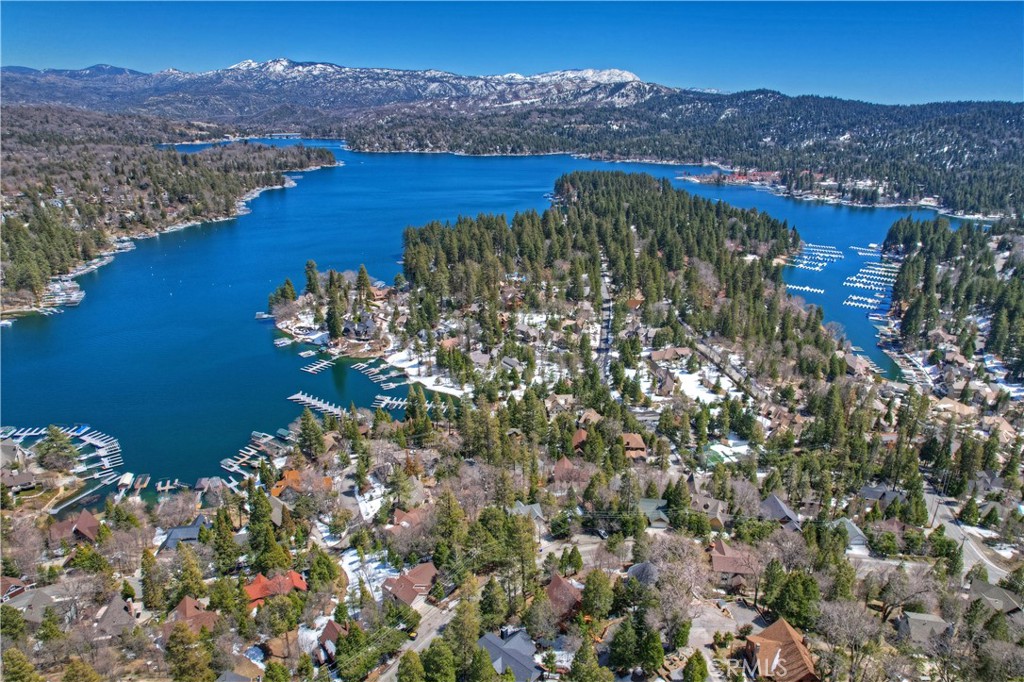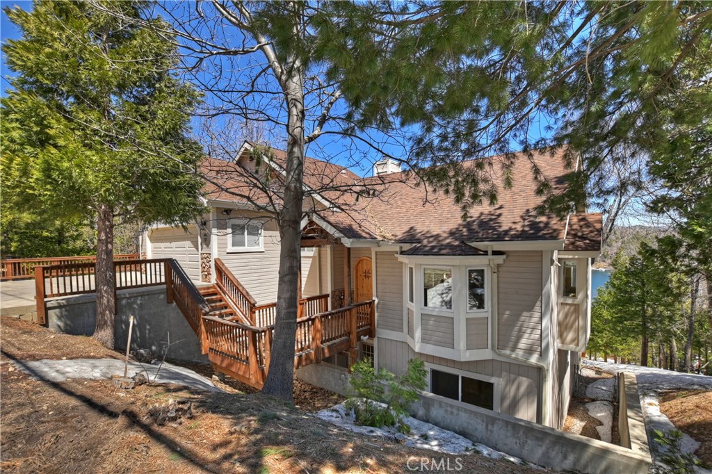 Welcome To 27509 North Bay Road, located in the beautiful mountains of San Bernardino, in Lake Arrowhead. This home offers everything you would possibly want. Located a few miles from Blue Jay Village on a plowed maintained road with almost level entry from the street. Drive directly into your large 2 car attached garage with direct access to your home. As you enter the home you will be amazed by the natural light and the magnificent lake view. Large, open plan living room, vaulted ceilings, dining room and kitchen. Beautiful wood floors and cozy fireplace. Direct access through sliding doors welcomes you to an oversized upgrade trex deck, surrounded by glass with a soaring view of the lake, overlooking North Bay and beyond. Primary bedroom is on the main level, with ensuite bathroom and walk in closet. Three bedrooms, bathroom, oversized family room with fireplace and direct access to the covered deck with more views of the lake complete the lower level. There is also a separate bonus room, laundry room and ample storage. Direct access from the lower level to a secure outside dog area for the adorable four-legged family members. Current owners purchase the vacant, buildable lot APN # 0333-544-13-0000 27524 West Shore (1st tier) with easy access to the lake trail, which can be purchased for extra. Pontoon boat also available for extra. Full house generator included and furniture and furnishing negotiable.