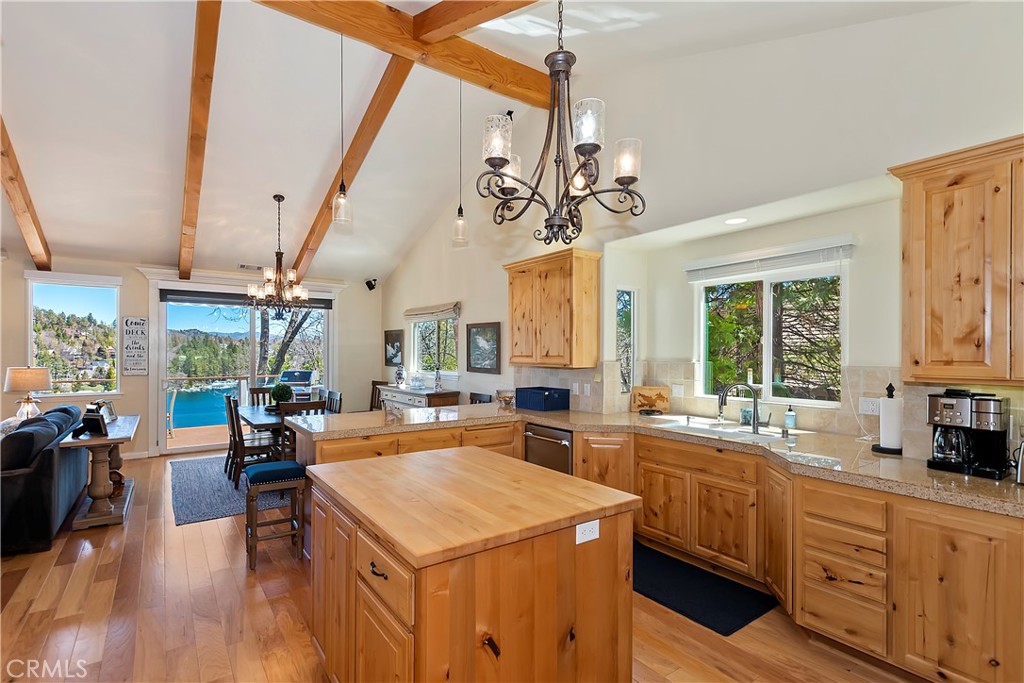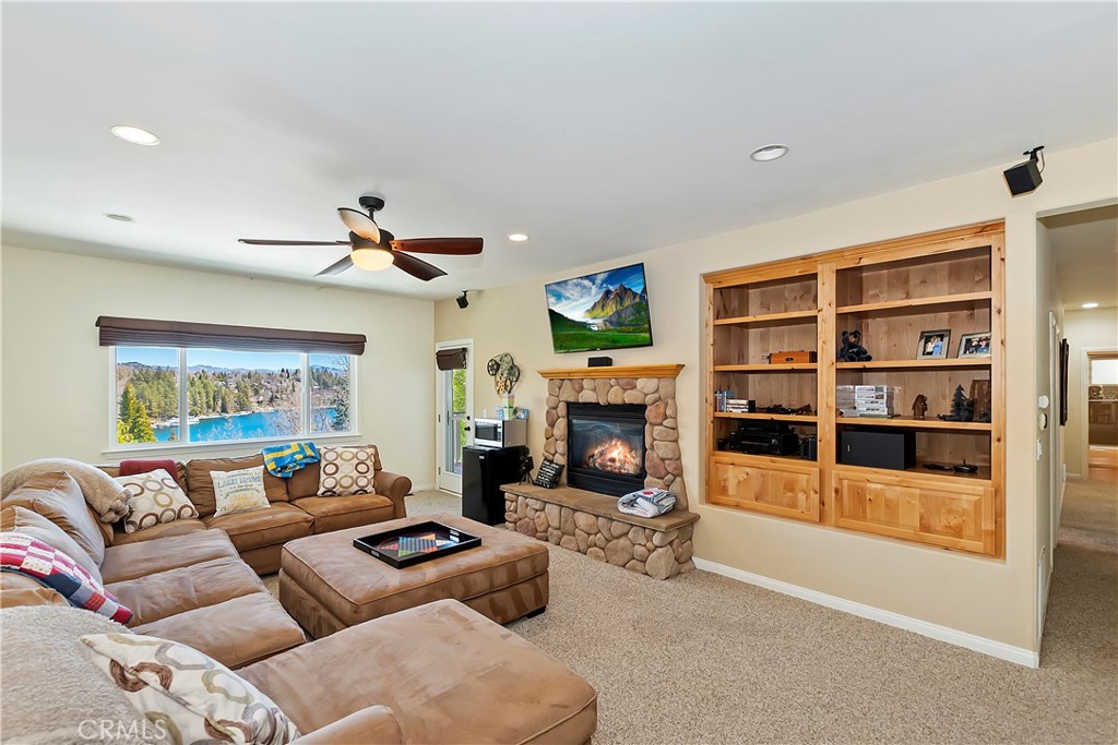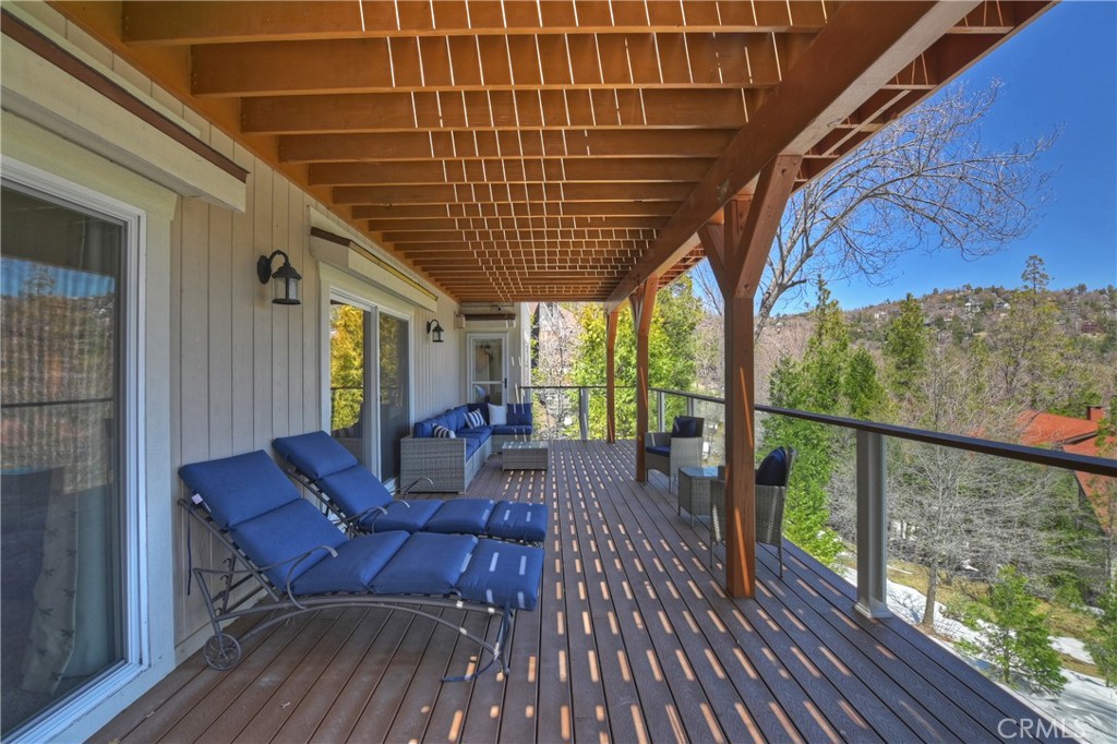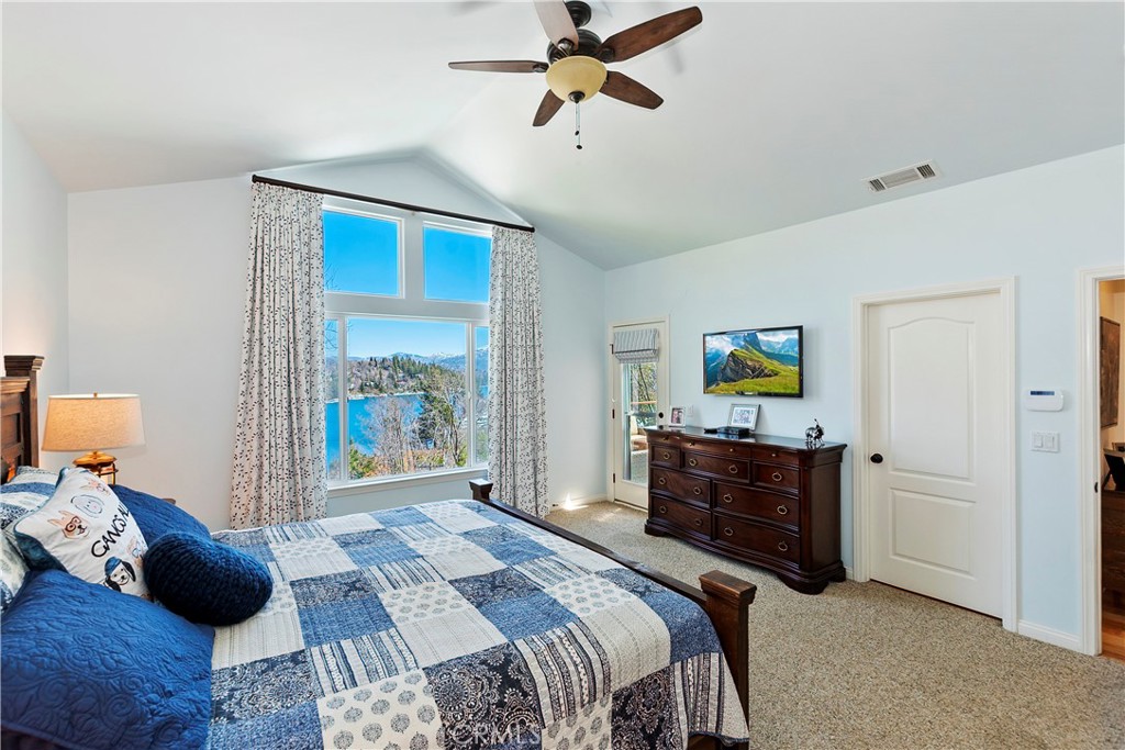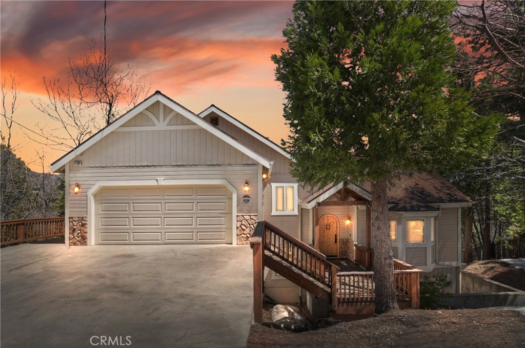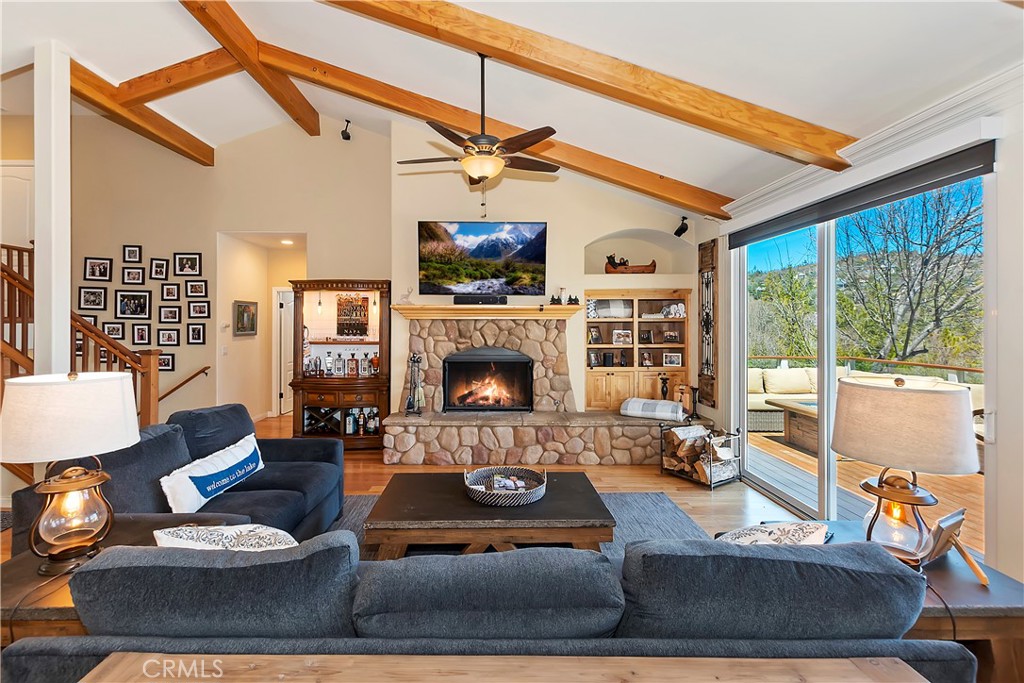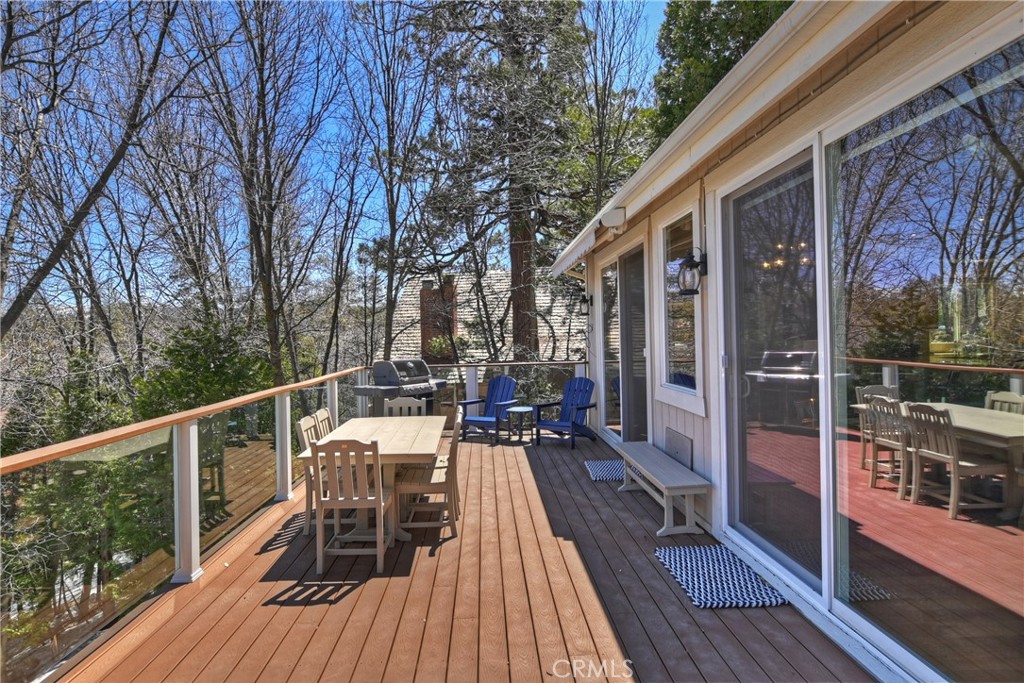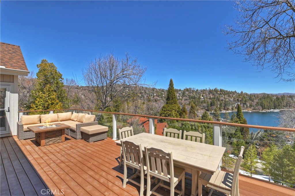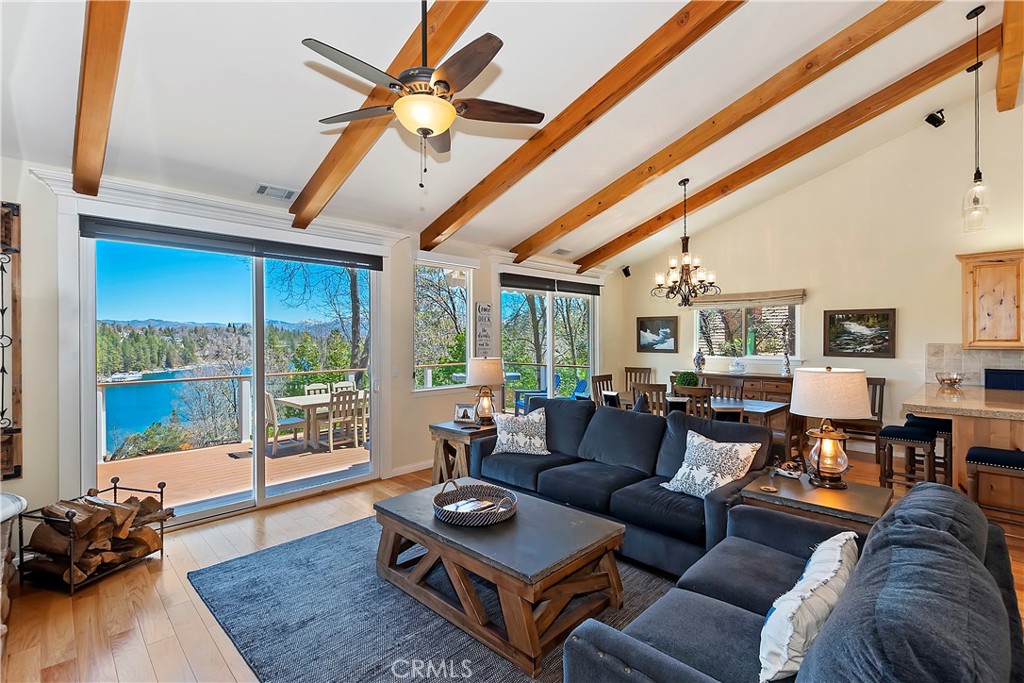 Welcome To 27509 North Bay Road, located in the beautiful mountains of San Bernardino, in Lake Arrowhead. This home offers everything you would possibly want. Located a few miles from Blue Jay Village on a plowed maintained road with almost level entry from the street. Drive directly into your large 2 car attached garage with direct access to your home. As you enter the home you will be amazed by the natural light and the magnificent lake view. Large, open plan living room, vaulted ceilings, dining room and kitchen. Beautiful wood floors and cozy fireplace. Direct access through sliding doors welcomes you to an oversized upgrade trex deck, surrounded by glass with a soaring view of the lake, overlooking North Bay and beyond. Primary bedroom is on the main level, with ensuite bathroom and walk in closet. Three bedrooms, bathroom, oversized family room with fireplace and direct access to the covered deck with more views of the lake complete the lower level. There is also a separate bonus room, laundry room and ample storage. Direct access from the lower level to a secure outside dog area for the adorable four-legged family members. Current owners purchase the vacant, buildable lot APN # 0333-544-13-0000 27524 West Shore (1st tier) with easy access to the lake trail, which can be purchased for extra. Pontoon boat also available for extra. Full house generator included and furniture and furnishing negotiable.