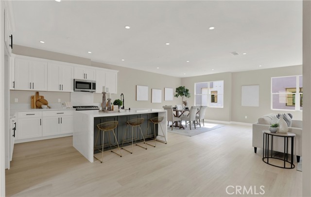 A wonderful opportunity to live in a ENORMOUS, BRAND NEW condo in the beautiful city of La Habra. This condo is approx. 2,385 Sqft with 3 Bedrooms and 3.5 Bathrooms. High ceilings throughout the home makes the entire condo feel extra spacious. Numerous windows throughout which allows for natural light. Wonderful kitchen opens to a enormous great room. Kitchen has soft closing drawers and cabinets. Large kitchen with quartz countertop and a large waterfall island. Brand new appliances (dishwasher, stove, microwave). Vinyl Flooring throughout. First Floor can be utilized in numerous ways (office, game room, guest/4th bedroom since there's a full bathroom on First Floor). Three Bedrooms upstairs. Primary Bedroom has a large walk-in closet. Primary Bathroom has dual sinks and walk in shower. Balcony on Third Floor has panoramic view of the neighborhood and hills. Large Laundry Room. 2 Car Direct Access Garage. Solar panels help lower electricity bill. Community has numerous guest parking and BBQ/Picnic area. Conveniently located near restaurants, shopping centers, markets, schools, parks, and more. Easy access to the 57, 5, and 91 Freeways.