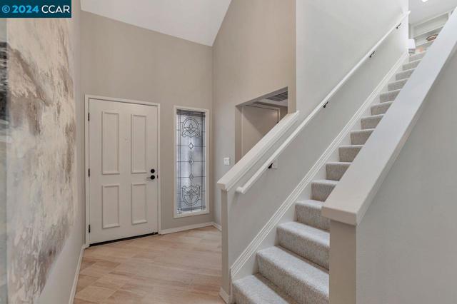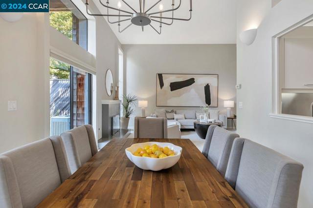 This is a rare opportunity to own a stunning 3-bedroom, 2.5-bathroom townhome with approximately 2134 sq. ft. of living space in the highly sought-after Summit Ridge. This peaceful townhome is located in a quiet court setting, overlooking an open space. When you enter the townhome, you will be greeted by a breathtaking living room with high ceilings that allow natural light to fill the space. The room boasts built-in cabinets and shelves, with providing a beautiful ambiance. If you enjoy cooking, you'll be delighted to discover the commercial kitchen. The dining area is situated off the kitchen, while the living room has a cozy fireplace and a sliding door leading to the ground patio. On the second floor, you'll find a charming library where you can relax with a book and enjoy the natural light. Furthermore, the second floor features a spacious primary suite with a bonus area that can serve as a lounge or home office space, as well as a private deck. There are also two additional bedrooms and a bathroom, making it an ideal space for you and your guest. This gorgeous townhome is located near top-rated schools, freeway access, BART, shopping, and hiking trails. The community amenities include a pool, a remodeled clubhouse, and beautifully maintained greenbelt and walking paths.