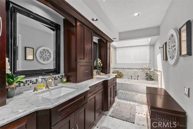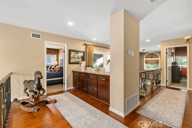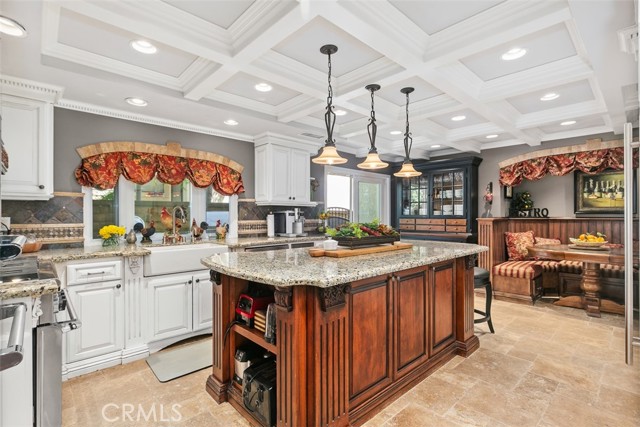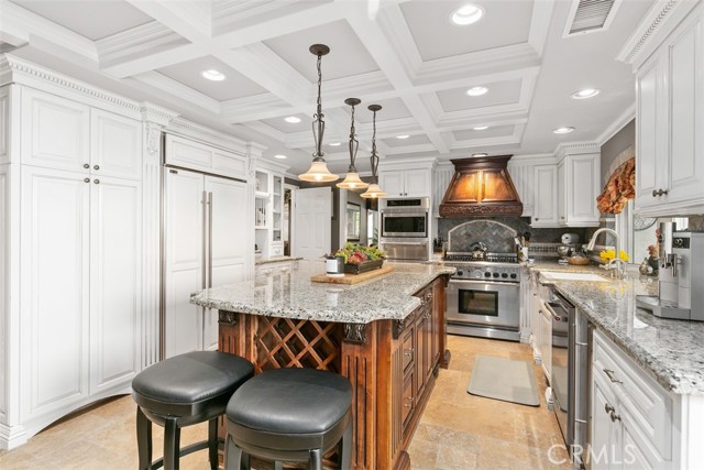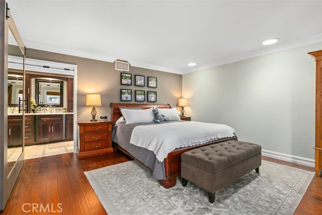A Truly Stunning Entertainer's Dream Home. This is one of the most exquisite properties ever on the market in the Lake Mission Viejo community of the Andalusia's. This property has been completely remodeled and transformed to perfection. From the moment you arrive you will be welcomed with impeccable curb appeal and upon entering you will be amazed at the quality and style this home encompasses. The open concept & spacious floor plan with its high ceilings & modern, yet traditional features is graced with the finest upgrades; opulent wood floors, gorgeous fireplaces, Dual Paned Windows and French doors, detailed moldings and trims throughout, beamed ceilings, designer paint in and out, newer roof, dual HVAC, Repiped with PEX, whole house attic fan, owned solar system, interior water filtration, tankless water heater, powered awnings, custom paved driveway and more! Enjoy the completely remodeled and fully equipped chefs masterpiece of a European style kitchen; gorgeous ceiling finishes, custom cabinetry and trims with built in breakfast nook, exotic granite, Versailles pattern stone floors, and top of the line appliances, including a Sub-Zero Refrigerator, Thermador range & vent hood, Ice maker, Convection oven, warming drawer, filtered water with insta hot tap. Beautiful & Spacious Living and Separate Family Rooms both with brick fireplaces. The highly desired First Floor Primary Suite feels like it belongs in a luxury bed & breakfast... A cozy fireplace, huge walk in closet with custom doors, the most beautiful Spa like bathroom with jetted soaking tub & incredible separate step in shower. The suite steps out to a stunning atrium - a magnificent sanctuary with fountain & custom flame lamp, where you can enjoy morning coffee and a breath of fresh air. Huge secondary bedrooms with lighted ceiling fans. All Bathrooms have been upgraded. Interior Laundry Room. Relax & find peace in the private and lush backyard, a beautiful entertainer's paradise with grand fireplace, custom gabled outdoor dining room with heater, ceiling fan and tv, a tranquil koi pond, professionally designed lighting, and built-in BBQ. Over-sized 2 car garage with epoxy floors, custom cabinetry, & EV charging station. This home is within steps of Lake MVs East Beach, shopping, FloJo Park and restaurants! Lake Mission Viejo amenities include: boating, fishing, swimming, kayaking, paddle boarding, two beaches, sports courts, and Summer concerts! Low Tax Rate of 1.05% and NO Mello-Roos.