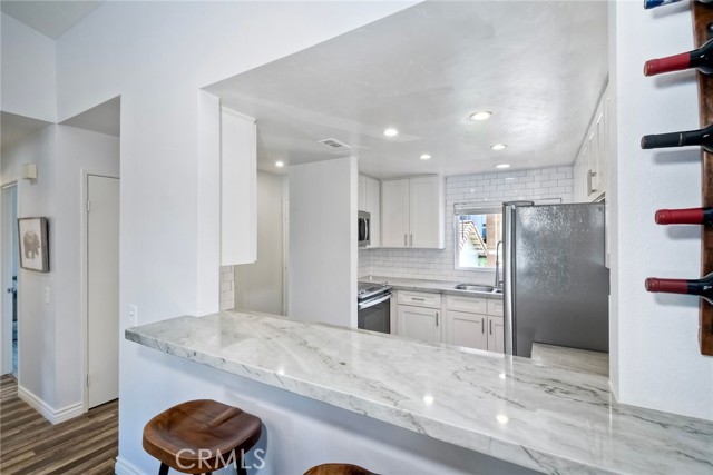 Enjoy Coastal living in Carlsbad @ The Villas at Calavera Hills. Pride of Ownership Shines Through in this Almost 1000 sf interior; 2 bedrooms; 2 bath condo. Immaculate! Remodeled! and Move-In ready! Upgrades since 2019: Complete remodel of kitchen with new cabinets, quartz countertops, new stainless steel appliances; Vaulted Ceilings, Updated both bathrooms including new vanities; All new dual pane vinyl windows with split finish (exterior tan, interior white) and new dual pane vinyl sliding door; luxury plush carpet installed in both bedrooms; plantation shutters, New washer and dryer purchased in 2023, the list goes on. 1 car detached garage (with 4'x7' storage locker) and an additional second assigned stall for parking. Quiet community with mature trees, open space and community pool/spa. Carlsbad Unified School District. Calavera Hills Community Park near by. Enjoy the convenient access to the restaurants and shops at the Carlsbad Village and beaches located just 3 miles away.