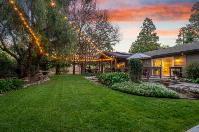 Country living at its finest in this stunning single-story 4 bedroom, 2.5 bath ranchette on a flat 1-acre lot. This home was built for entertaining inside and out. Exceptionally large gourmet kitchen with center island, wine refrigerator, stainless steel appliances, and granite counters. The family room is open to the kitchen and features concrete flooring. Views from every room of the lush outdoor paradise. You will be completely impressed by the impeccably manicured and maintained front and back yards. The backyard has a Trex deck, multiple sitting areas, a playground, a zip line, 2 sheds, and a small shop. This is a rare find and won't be available for long!