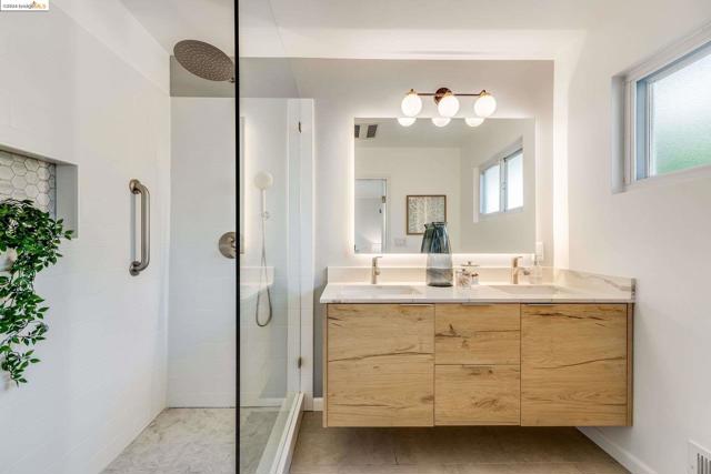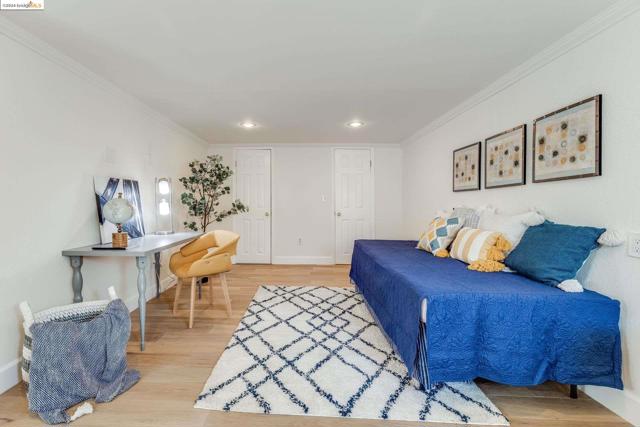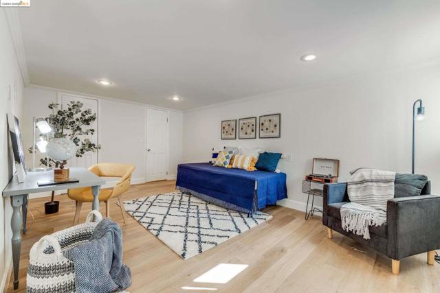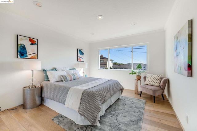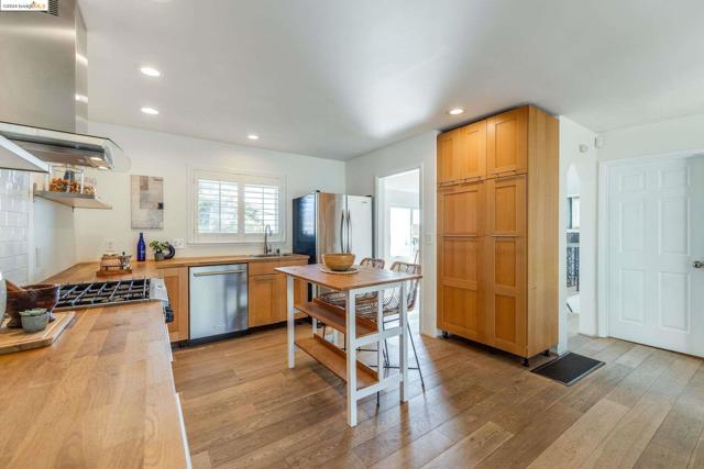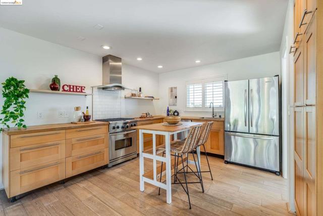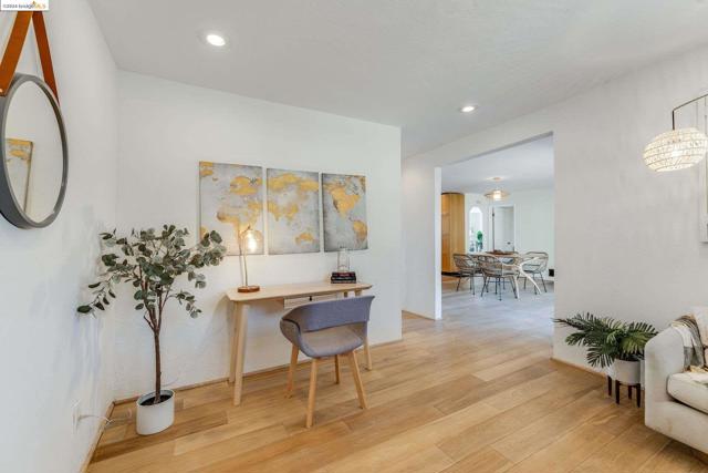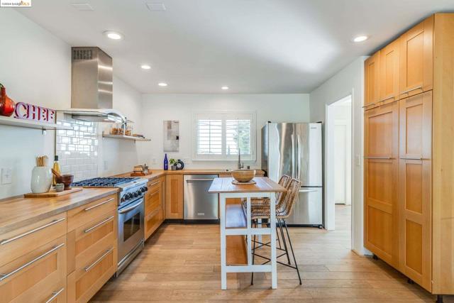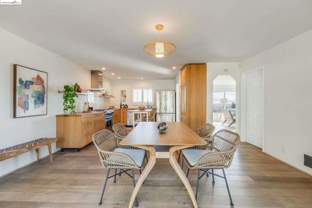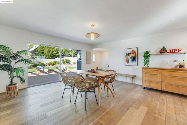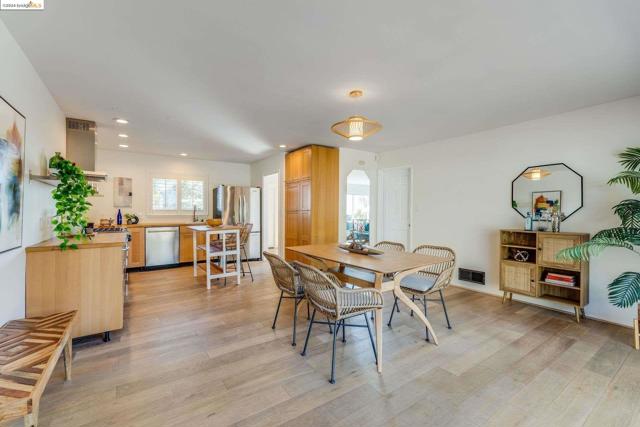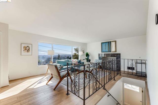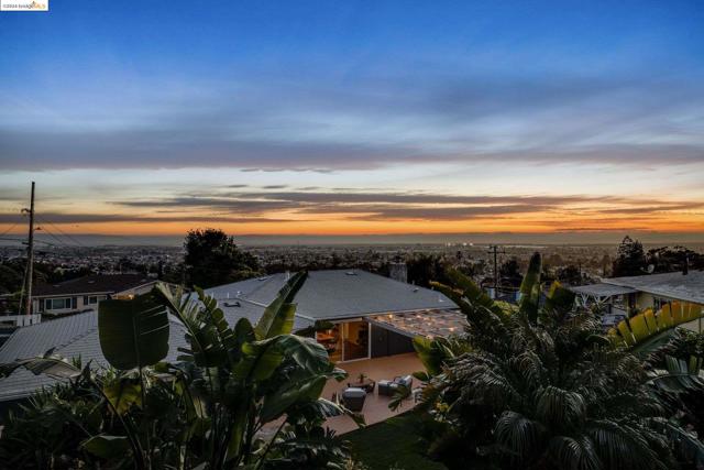 Get ready to be swept off your feet by the jaw-dropping Bay views from this dreamy urban escape in the Oakland Hills! A mid-century modern with an open floor plan designed to let those panoramic vistas steal the show. Whether you're entertaining a crowd or simply kicking back in relaxation mode, this home has you covered for both. Step out onto the sprawling deck and let the outdoor fun begin! Picture yourself hosting incredible gatherings with friends and family, creating memories that'll last a lifetime. Or if you are in need of some chill, low key meditative moments, head on up to the second-level patio for your very own slice of tranquility. Inside, prepare to be wowed by the kitchen in the heart of the home. Energy-efficient upgrades, with open shelving and a storage pantry fit for a chef extraordinaire. Downstairs, the options are endless! Transform the bonus room into your dream hobby space or home office, and let your creativity run wild in the large garage/studio awaiting your personal touch. The street backs up to King Estates open space, giving you direct access to walking trails and dog-friendly paths—giving you further vantage of those views we can't get enough of. BART and major highways just minutes away, it's easy access to everything the Bay Area has to offer,