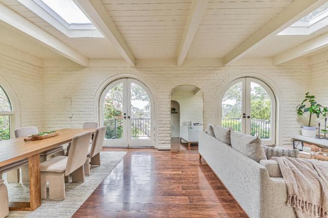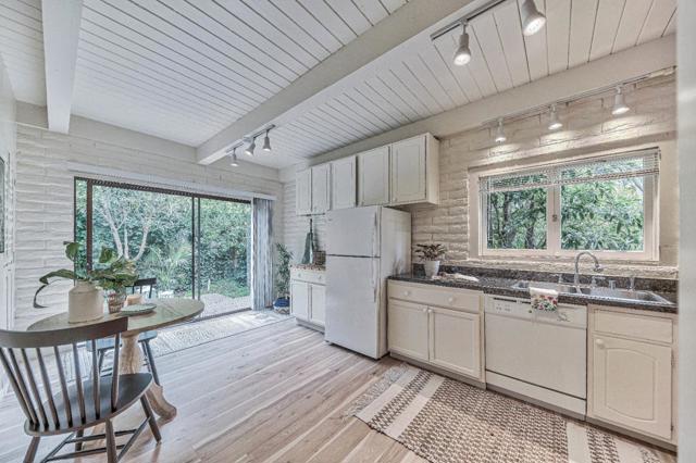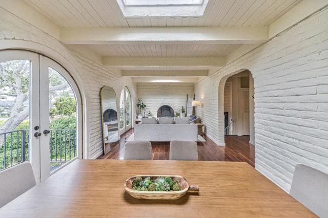 For the first time ever on the market, this two-story, 1,900-square-foot home offers filtered ocean views from the second floor, a total of three bedrooms, and three en-suite baths, with an additional half bath to boot. The post-adobe home features wood-burning fireplaces in the upstairs living and downstairs family rooms. Two sets of double French doors open to balconies facing the ocean, which, coupled with the skylights, create a light, bright, and airy feeling in the interior. The kitchen has been updated with flooring, countertops, and a gas range. Located close to a walking path that takes you directly to the north end of Carmel Beach, this home would make a great weekend getaway, a full-time residence, or a value-added opportunity in a premier Carmel-by-the-Sea property location.