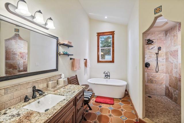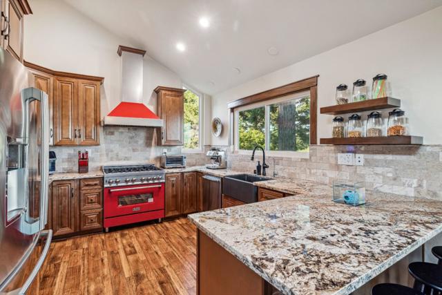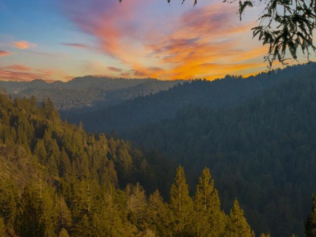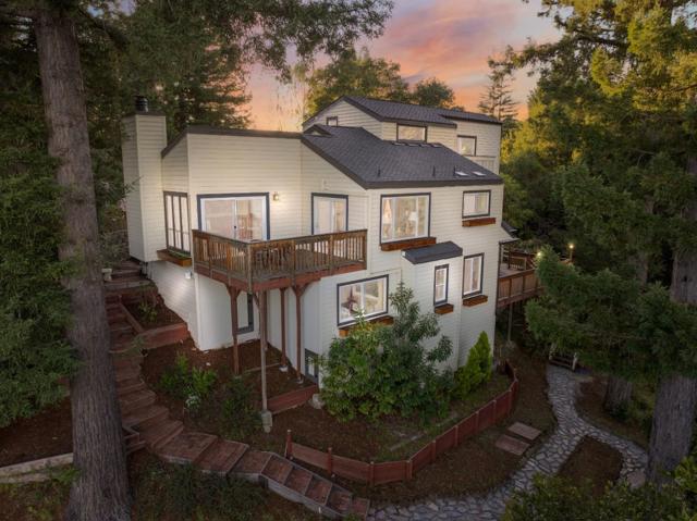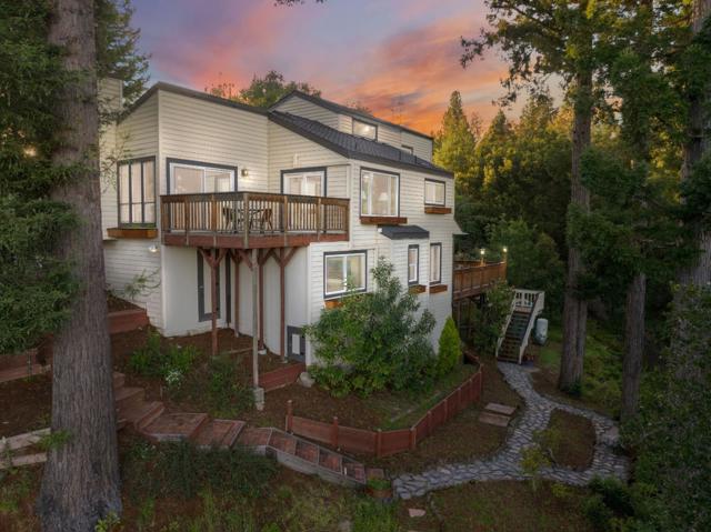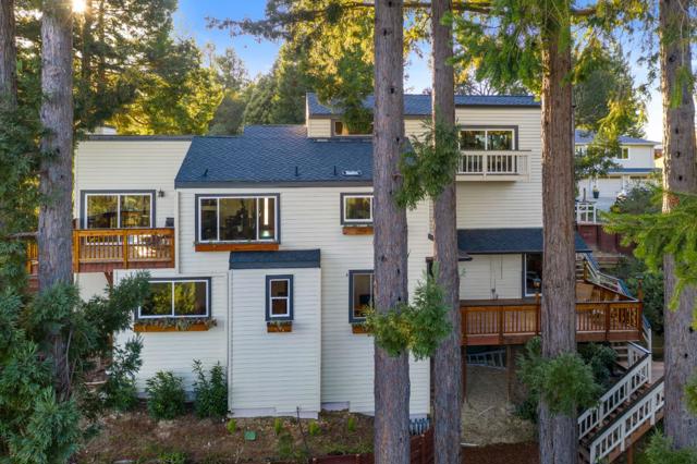 This home is a beacon of luxury and timeless elegance in the heart of a close-knit mountain community with panoramic views of the mountains. Every detail speaks of luxury, from the state-of-the-art kitchen adorned with a top-tier oven to the high ceilings that augment the grandeur of the surrounding vistas. The gas fireplace is the heart of the home, complemented by a vibrant entertainment hub on the first floor that seamlessly extends onto a spacious deck. Every aspect of this home has been meticulously curated, including pine wood molding to frame the picturesque views, modular closets that enhance space efficiency, and the newly installed generator (March 2023). Outside, the artistic landscaping and four decks where you can soak in the sun and the awe-inspiring views stretching from the mountains to the sea. With easy access to Silicon Valley or Santa Cruz, this home offers a unique opportunity to own paradise where luxury meets nature in a harmonious embrace.