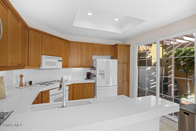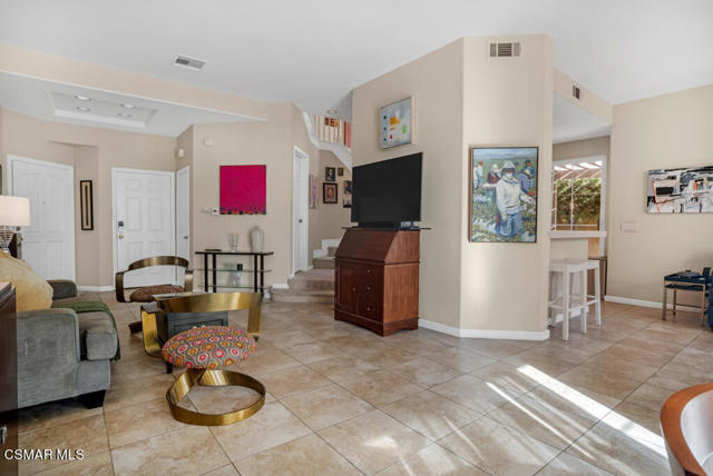 Unlock the door to upscale living in this serene, gated community! Just a stone's throw away from the prestigious Spanish Hills Golf and Country Club, this very private home offers the lifestyle you deserve! Open the door to a light and bright floorplan with an abundance of Dual Pane windows thru-out bringing in the natural light. The kitchen has durable engineered counter tops and re-finished cabinetry with plenty of storage! The slider in the kitchen gives way to the tranquil, landscaped backyard which is perfect for al fresco dining and entertaining! There is a cozy family room with a fireplace, the living room is spacious with a dining area which also has a slider giving access to the outdoors! The large primary bedroom, with a walk-in closet to envy, has a private balcony and opens to the en-suite amenities complete with soaking tub, double vanity, and private toilet/shower. The laundry room is conveniently located upstairs near the hall bath and two secondary bedrooms. There is a two-car attached, direct access garage with entry into the living room. There are plenty of spaces for guests to park! Enjoy the association pool/spa and clubhouse which is right around the corner from the home. Do you own an RV? There is RV parking based on availability. Proximity to shopping, restaurants and the community dog park makes this house a home!