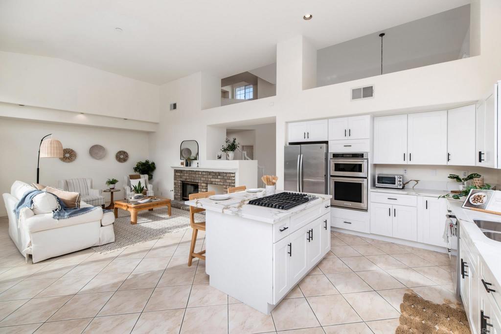 Welcome to your dream home in the highly desirable Rancho Del Oro neighborhood! This stunning property boasts an open floorplan, 4 bedrooms and 2.5 baths, providing ample space for comfortable living. The main floor features the primary bedroom with a beautifully upgraded en-suite boasting an oversized bath and shower combo, complemented by a spacious double vanity and walk-in closet. The heart of this home lies in the newly remodeled kitchen, adorned with a spacious quartz island, stainless steel range, and new stainless steel appliances. Custom hardwood white cabinets and hardware add a touch of sophistication to the culinary space, while the quartz countertop throughout ensures a sleek and modern aesthetic. The upstairs area reveals a spacious loft, providing versatile space for various activities. The half bath and upstairs bath have been tastefully remodeled to enhance functionality and style. The property also showcases new paint and flooring, ensuring a seamless blend of comfort and sophistication. The property's exterior makes entertaining a breeze, with a new fence on the right side enhancing privacy and security, creating a serene oasis for relaxation. A well-landscaped grass front yard and backyard, along with a charming rose garden, offer a picturesque setting for outdoor enjoyment. This home is not only a visual delight but also situated in an ideal location, with proximity to parks, schools, and the convenience of biking to Guajome Park. With no HOA to restrict your lifestyle, this residence embodies the perfect blend of modern upgrades and a prime Rancho Del Oro location. Don't miss the opportunity!