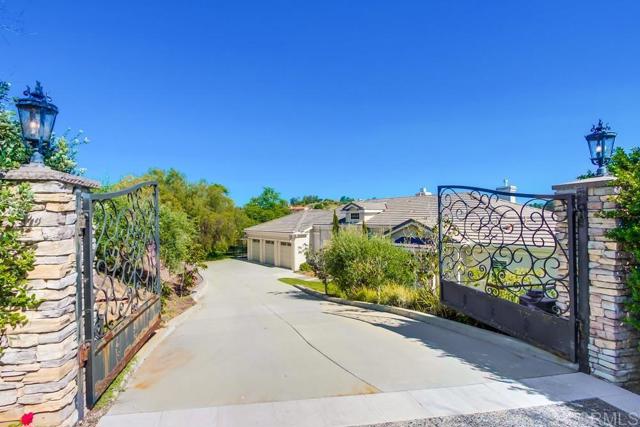 Welcome to luxury living in the prestigious gated community of Hill Ranch, nestled in the serene West Side of Fallbrook off Olive Hill. This exquisite single-story residence boasts three full bedrooms complemented by three full bathrooms, along with the versatility of an optional office or fourth bedroom. Step into the heart of entertainment with an upgraded chef kitchen featuring premium amenities, including a double oven, solid wood cabinets, granite counters, butler pantry, built-in fridge, brand new garbage disposal and an expansive open-concept area. Enjoy seamless indoor-outdoor flow as fresh breezes grace the outdoor spaces. Elegance abounds with crown molding throughout, accentuated by soaring 10' ceilings that flood the interior with natural light. Your private sanctuary awaits down a long driveway leading to a three-car garage, offering ample space for your vehicles and storage needs, as well as providing room for a workshop. Outside, a large front side grassy yard welcomes you, adding to the charm and curb appeal of the property. This home offers not one but two gated entrances - one leading to the main driveway and the other positioned at the top, featuring a flat area ideal for potential trailer or RV parking. Nestled on a fully fenced 3.36-acre lot, this property is a true oasis with lush fruit trees and breathtaking panoramic views in every direction. Convenience meets luxury with an interior laundry room equipped with a sink. Additional features include plantation shutters and dual-paned windows/doors, ensuring comfort and energy efficiency throughout the home. Experience the epitome of sophisticated living in this meticulously crafted residence within the exclusive Hill Ranch community. Schedule your private showing today and discover the allure of this remarkable property.