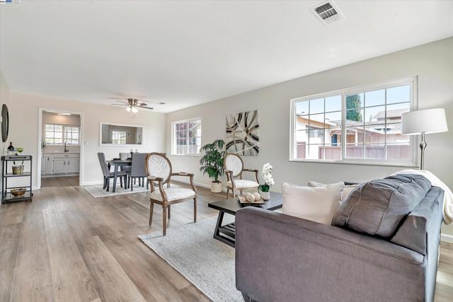 Discover the perfect blend of comfort and style in this beautifully updated single story home in Sunset West. Step inside to experience fresh new paint, new modern flooring, updated lighting and more. The contemporary kitchen boasts sleek new finishes including painted cabinets, white quartz countertops, and a subway backsplash. The master suite features a permitted ensuite that can serve as a versatile space—ideal for a home office, retreat, or nursery. You'll appreciate the newer HVAC system installed in 2022, ensuring year-round comfort. The home is surrounded by stunning landscaping, creating an inviting atmosphere for outdoor relaxation. Enjoy the covered patio, perfect for entertaining or unwinding in a serene setting. Conveniently located in close proximity to downtown, shopping, dining, parks, fabulous Livermore wineries, and major commuting routes. Don't miss out on this fantastic opportunity to own a turnkey home in a prime Livermore location!