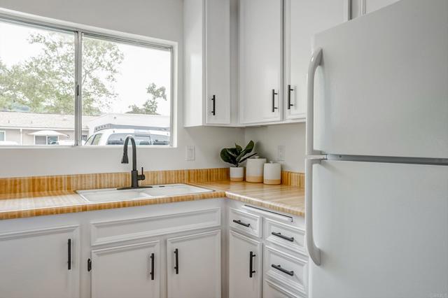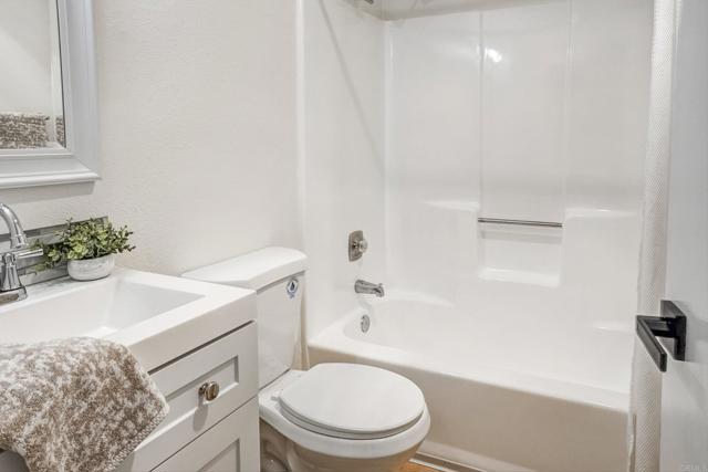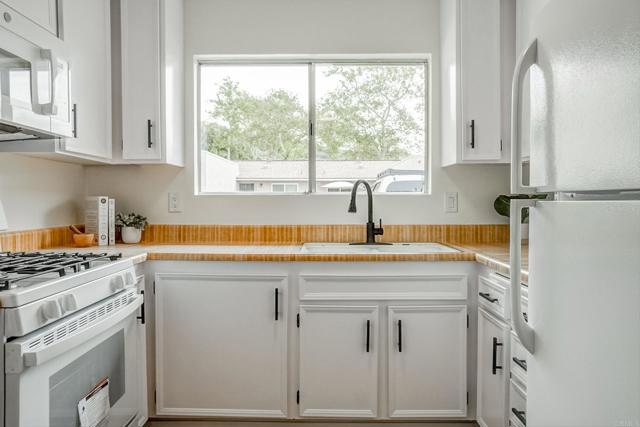 Discover tranquility in this charming single-story end unit townhouse located on a quiet street in Santee. Boasting a spacious primary bedroom with a walk-in closet, convenience is key with an in-unit washer and dryer, along with a single-car detached garage and additional assigned parking. Relish in the updates throughout the property, including freshly paint throughout, new luxury vinyl plank flooring and stylish baseboards. The kitchen features a new gas range, built-in microwave, faucet, garbage disposal and cabinet hardware. Indulge in modern comforts with this updated bathroom! Clean and bright with a newly refinished tub/shower, new vanity & toilet. Embrace community living with pools, playgrounds, and parks just steps away, while schools, shops, and restaurants are within walking distance. This rare 2-bedroom, 1-bathroom find offers a private yard, detached garage, and an additional parking spot. Close to amenities like playgrounds, pools, and Woodglen Vista Park with a dog park, this home offers the perfect blend of convenience and comfort. Don't miss out on the opportunity to make this fantastic property yours!