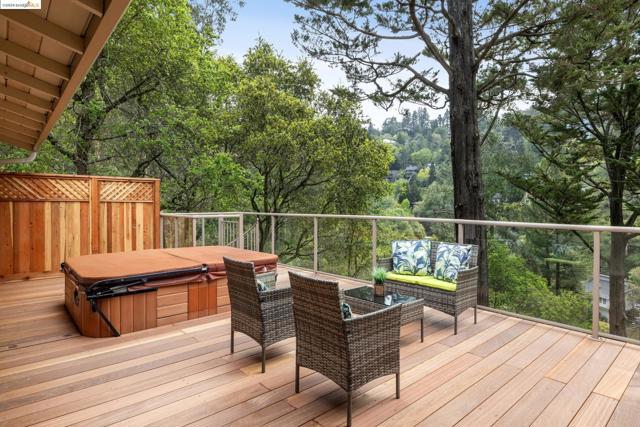 Welcome to 6639 Gunn Dr! The property seamlessly blends vintage charm with contemporary comforts. Nestled in the Piedmont Pines area in the Oakland Hills, this meticulously maintained property exudes timeless elegance and clean lines. Upon arriving at the front door, it opens up to an ample sized living room with huge sliding doors and a window that leads to a beautiful deck with a spa! There are three bedrooms including a primary suite and an additional bathroom on the main level, and three additional rooms and a half bathroom downstairs. A sauna awaits you on the downstairs deck. Such a treat after a long day working! Why don't you make this your home sweet home?
