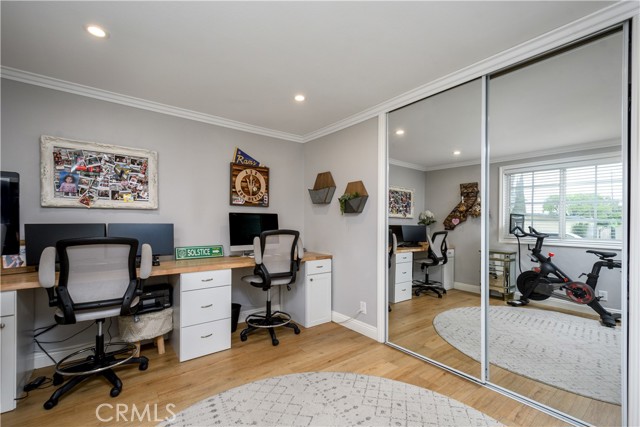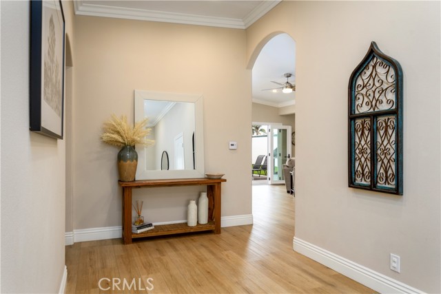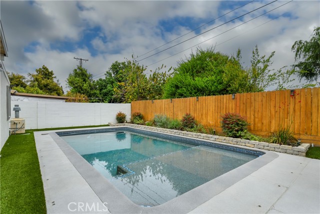 Step into a world of modern elegance and ready-to-enjoy luxury with this beautifully updated four-bedroom residence. Every inch of this turnkey property has been thoughtfully redesigned to offer an effortlessly chic lifestyle. Start your journey with a dip in the spectacularly remodeled pool, featuring a Baja ledge perfect for lounging under the sun. The pool sparkles with new Pebble Tec and blue glass beads, creating an oasis that dazzles both day and night. Adjacent to this aquatic paradise, a stylishly renovated patio provides the ideal backdrop for outdoor entertainment and relaxation. Inside, the home welcomes you with a fresh, contemporary vibe, accentuated by newer vinyl flooring complemented by sleek base molding. The entire space is illuminated by recessed LED lighting and enhanced with elegant crown molding, setting a sophisticated tone throughout. The heart of the home, the kitchen, boasts newer cabinetry, luxurious granite countertops, and stainless steel appliances, including a convenient beverage cooler—perfect for hosting and everyday living. Each of the bathrooms mirrors the home’s modern aesthetic, having been completely renovated to provide a spa-like experience. The home’s functionality is boosted by numerous updates, including a newer AC system, contemporary doors, newer vinyl windows, a newer garage door with an opener, and both exterior and interior paint in tasteful hues. This exquisite property is more than just a house—it’s a ready-made home for making lasting memories. With nothing left to do but move in, it's a flawless choice for those who value style, comfort, and ease. Come see how your future can start today in this impeccable, newly-updated sanctuary.