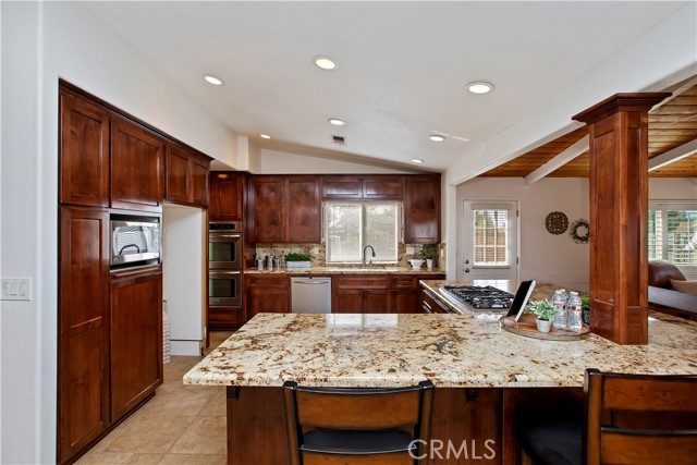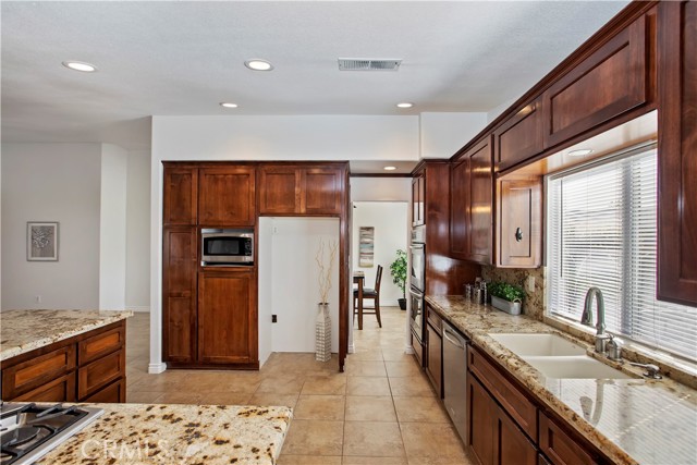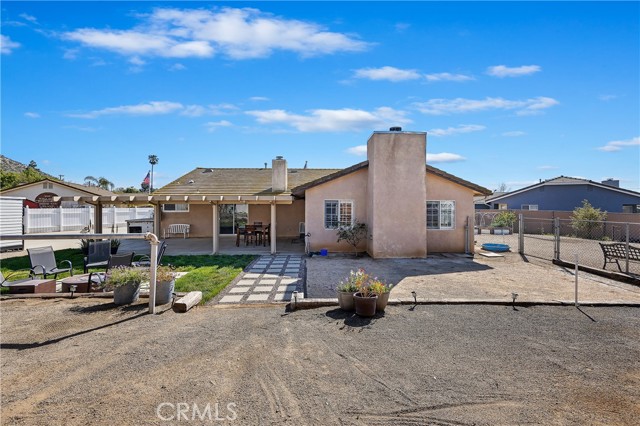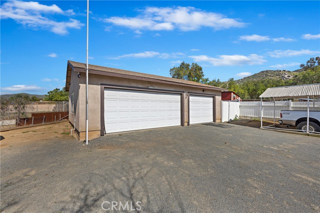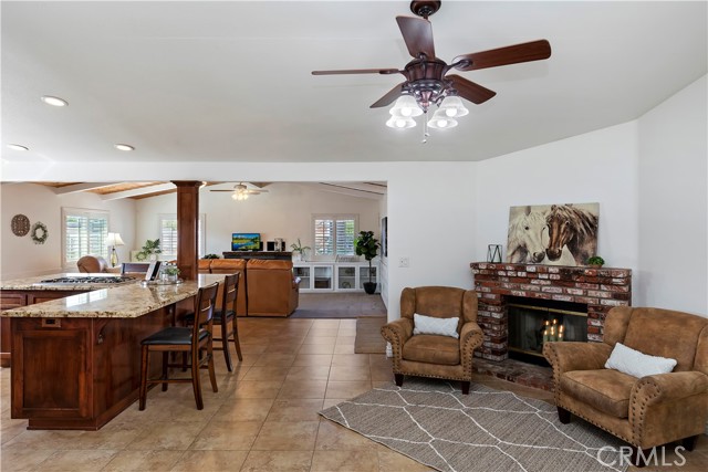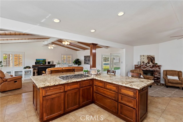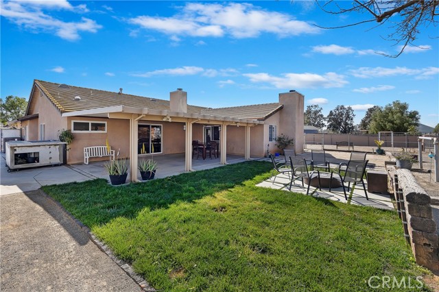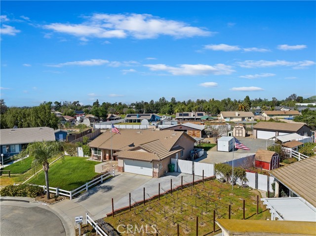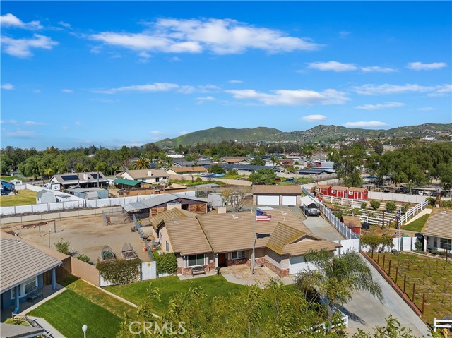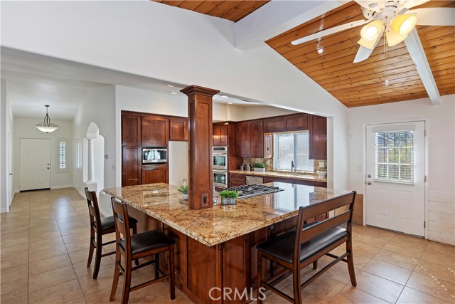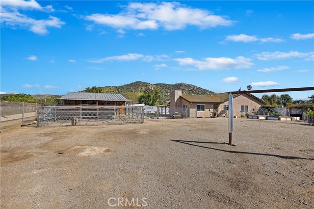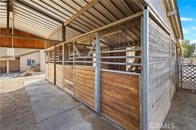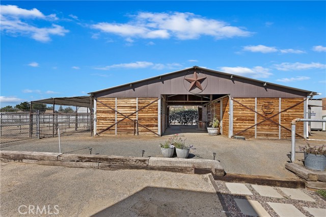 Welcome back to the Ponderosa! New and improved interior and price. Built in 1997, this single level layout features: 3 bedroom 2 bathroom+ office/4th bedroom, 2 car garage in front AND 3 car detached garage in back as well as a barn on a culdesac. Some of the upgrades and amenities include: updated Chef's kitchen with custom soft close cabinets, pull outs, SS appliances, double ovens, HUGE island has countertop cooktop with SS telescopic hood vent that retracts when not in use and granite counters. Kitchen is completely open to family and living room. Family room and Living room both have fireplaces!!! Family room has soaring tongue and groove ceiling, built in cabinets, custom wainscoting, and plantation shutters. Property has tile and carpet flooring. Primary bathroom has custom travertine tile shower with dual shower heads. Primary bedroom also has a walk in closet. House has two car garage. Outside you have extensive patio area with allumawood patio cover. 3 car permitted detached garage/workshop, and tongue and groove 4 stall barn with large turn outs. Also included is the raised garden beds, hitching post, flagpoles, horseshoe pit and large turn out area. Also has dog house, sheds and a playhouse. This FLAT totally usable lot also features concrete RV driveway and carport area. 2 Subpanel's one with 220V @ detached garage, one at front garage and has 30 amp outside front garage. Property has new HVAC system, whole house fan, sub panel, Like to garden, apple, lime, pomegranate, orange trees and several herb plants included. Bonus the entire interior has just been painted for you. Don't miss this Horsetown USA Gem.