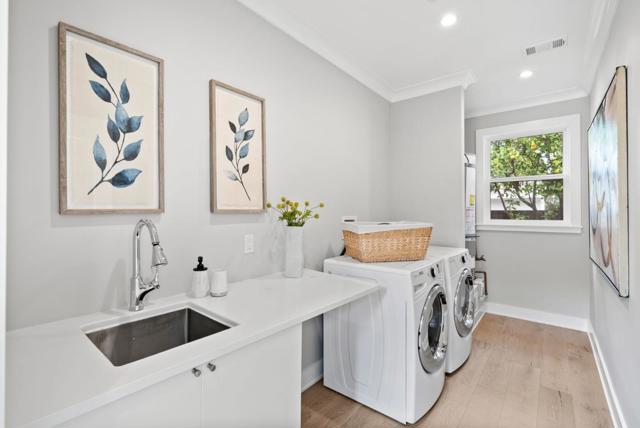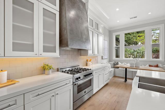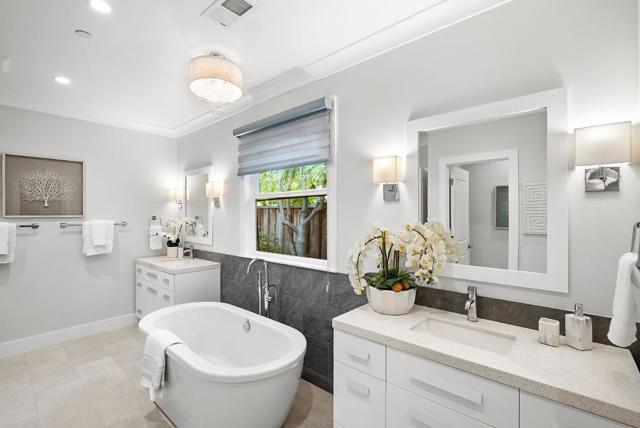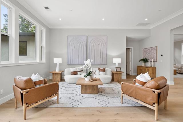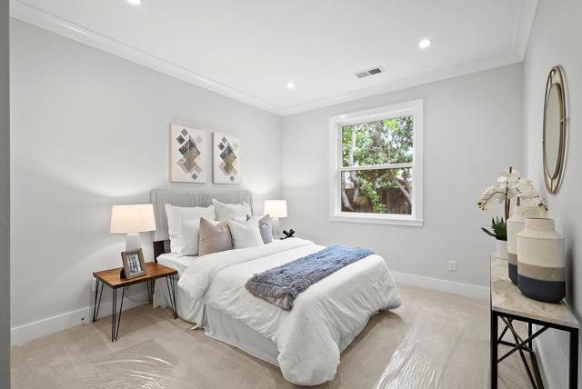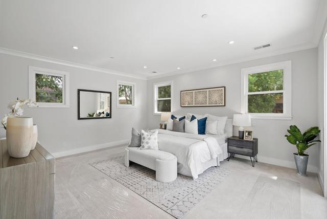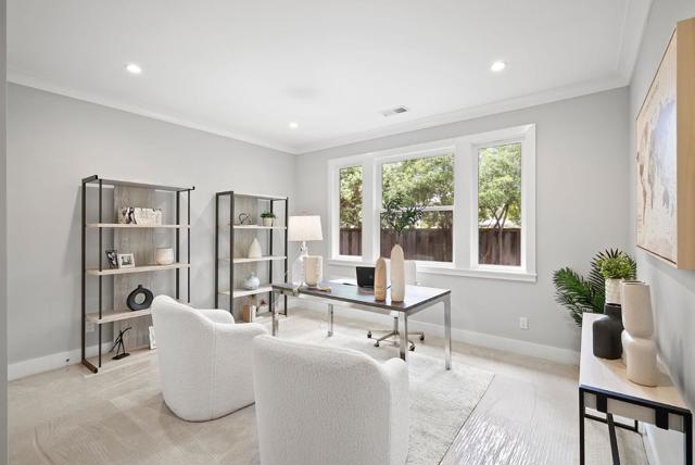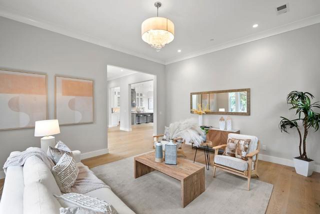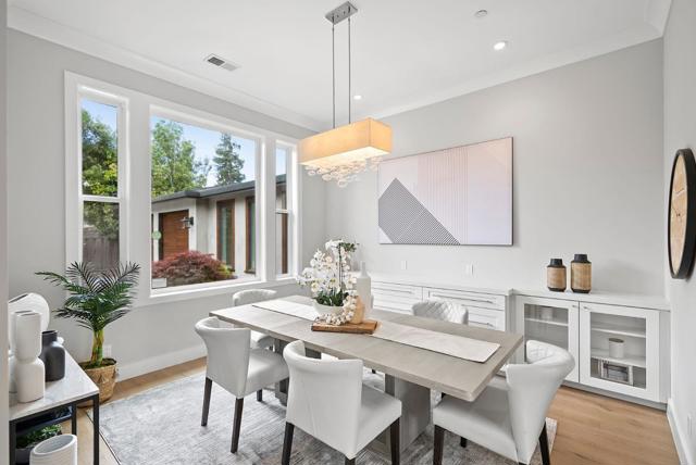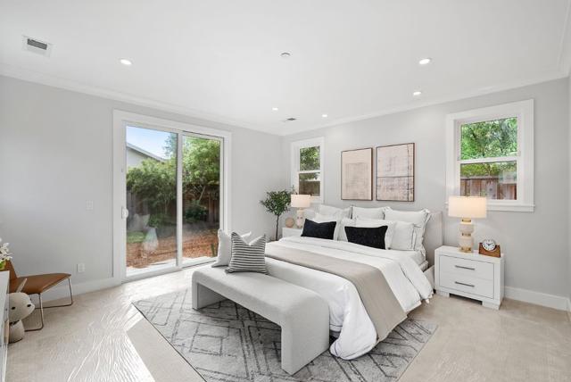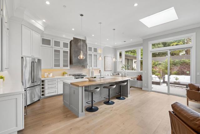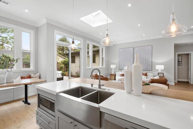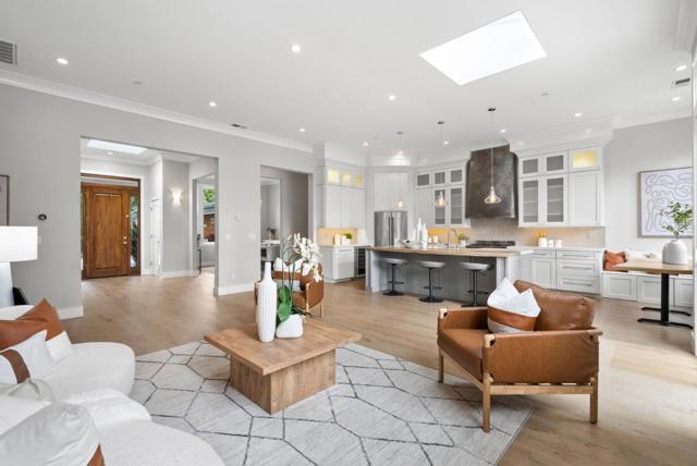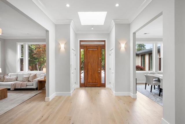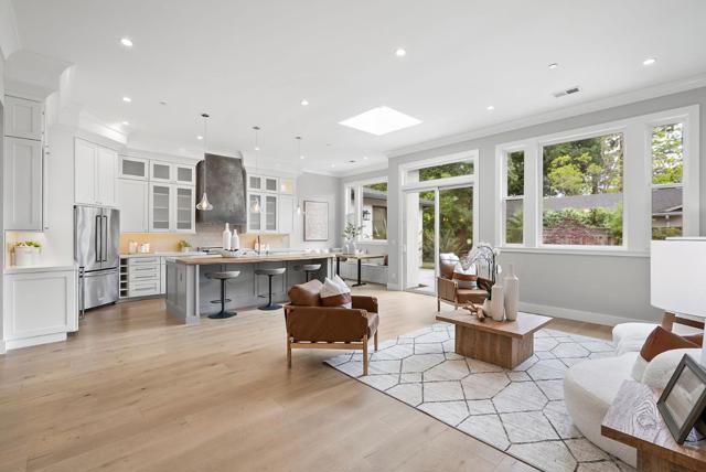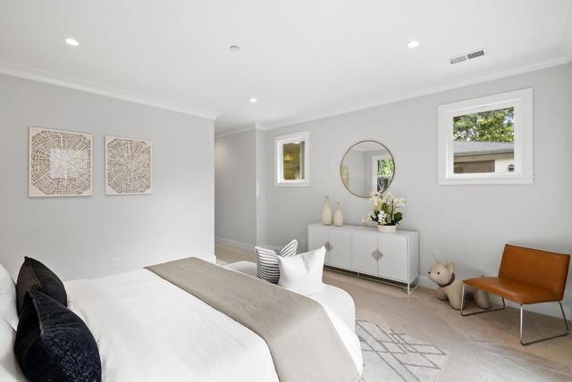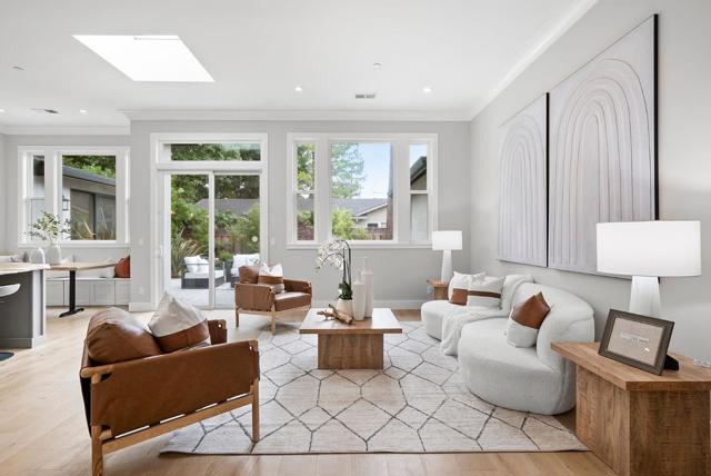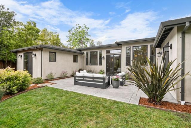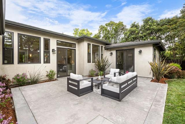 Spectacular single-story home in desirable Adobe Meadow, delivering the epitome in convenience and modern lifestyle. Gated flag lot provides ultimate security. Very private, expansive front & back yards with gorgeous landscaping. Distinctive contemporary architecture blending clean lines with organic elements. Soaring 10 ceilings. Stunning primary retreat with spa-like 5-piece bathroom & walk-in closet. Separate wing includes 3 spacious guest bedrooms, a modern double-sink hallway bath & a 2nd generous primary suite. Seamless transition between living, dining & kitchen/family room for entertaining. Crisp white cabinets & countertops in the chefs kitchen, with high-end appliances, a large island with striking pendant lights and built-in banquette breakfast nook. Walk to Ramos Park to enjoy activities from the neighborhood association. Easy access to shopping, 101, commute routes & leading tech campuses such as Apple, Google and Meta. Award-winning Palo Alto schools.