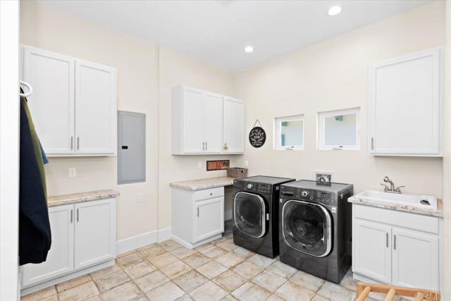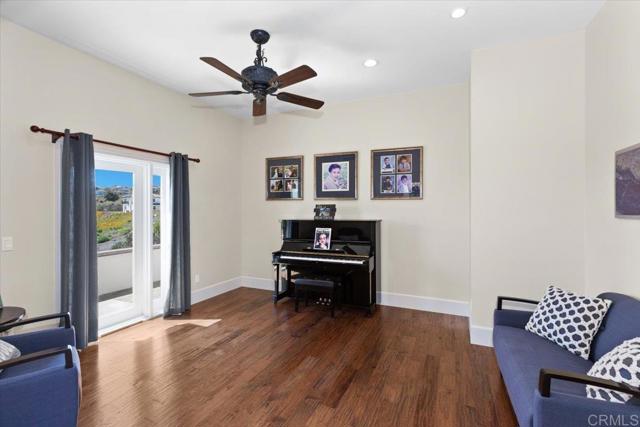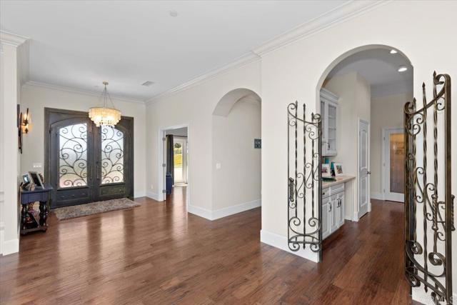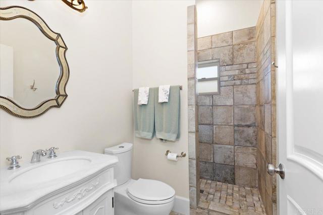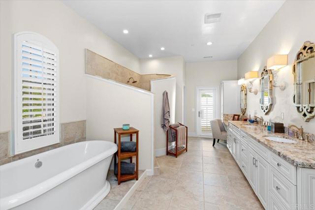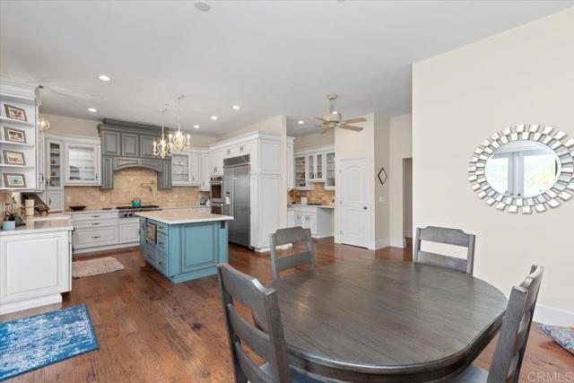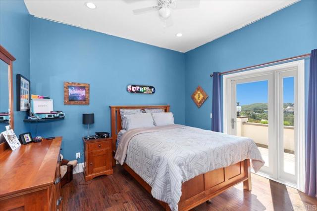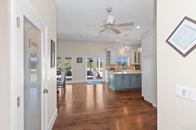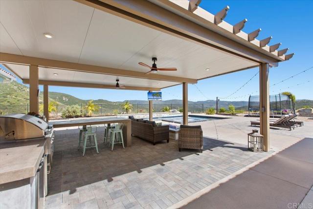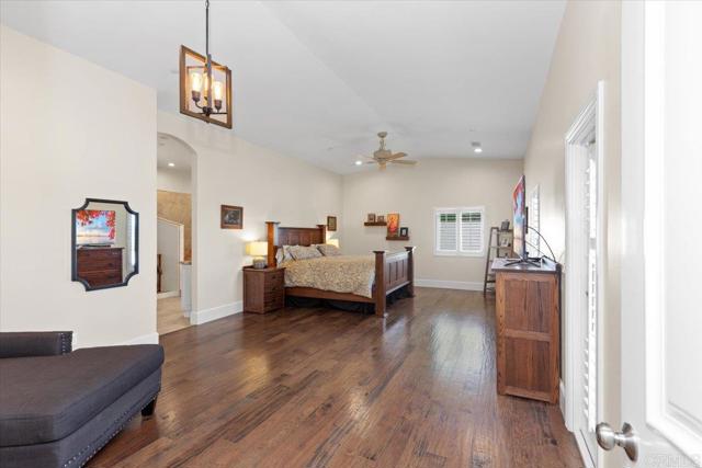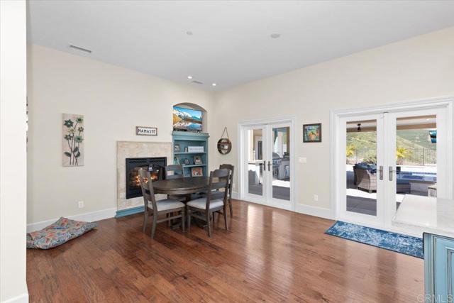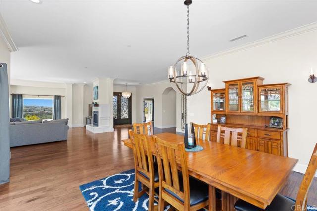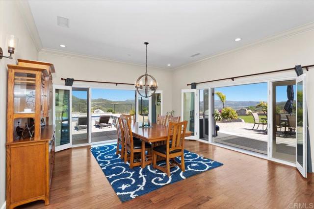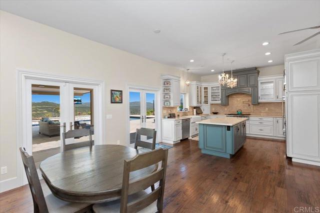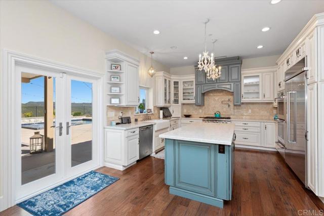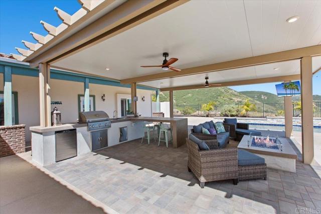 Welcome to this exclusive gem in San Marcos! This stunning custom-built home is where luxury meets countryside charm, offering fantastic forever views. Situated on over 9 acres of land, this single-level oasis offers a rare blend of rural tranquility and modern convenience. Rarely can you find a custom, newer construction home tucked into the hills of San Marcos offering such a serene country feeling, yet so close to everything North County has to offer. You will be impressed with the outdoor amenities, where the owners have meticulously thought of every detail to create an entertainer’s dream! Picture yourself perfecting your putting game on the large green, lounging by the sparkling pool and spa, or hosting unforgettable gatherings at the spacious BBQ island and built-in firepit, all while enjoying your picturesque mountain views. Step inside to discover a thoughtfully designed floorplan that seamlessly combines comfort and elegance. With 4 bedrooms, including 3 with ensuite baths, everyone can enjoy their own private retreat. A generous bonus room, complete with its own fireplace, provides the ideal space for entertainment or relaxation. Need a quiet place to work? The dedicated office offers the perfect solution. Every detail of this home has been carefully curated, from the hardwood floors and crown molding to the custom gourmet kitchen featuring stainless steel appliances, stone counters, and soaring ceilings. And with a 10.05 KWP solar system, you can enjoy energy efficiency and peace of mind for years to come. You will appreciate the parking spaces: 3 car garage and spacious private driveway. There’s even a private orchard with over 60 fruit trees, including avocado, apples, oranges, peaches, mandarin mangoes, and nectarines, providing a bounty of fresh produce right at your fingertips. Welcome Home! This is an oversized lot with wonderful potential...Explore the possibilities of including your own horse facility/stables and the potential addition of an ADU or other structure (see property aerial boundary map) . Just a short drive to San Elijo Hills, schools, shopping and restaurants, and close to Carlsbad/Encinitas beaches and surfing. No HOA/No Melloroos!