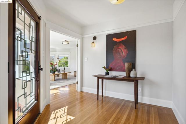 Don't miss out on this exclusive opportunity! A charming three-bedroom home awaits in the desirable Cleveland Heights/Haddon Hill neighborhood. Featuring expansive living spaces, a modern kitchen, and original hardwood floors, this move-in ready property is perfect for discerning buyers. The primary bedroom offers ample closet space and a full-size bathroom, with two additional bedrooms nearby. A versatile downstairs area with a separate entrance can be transformed into a family room, office space, or rental unit. Enjoy the tranquil outdoor space with a redwood deck, fire pit, and fountain. A detached backyard cottage with its own bathroom and cabinetry provides endless possibilities for use. With freshly painted interiors and meticulously landscaped exteriors, this home is full of potential. Conveniently located near Lake Merritt, shopping, and transportation, don't wait to book your viewing appointment!