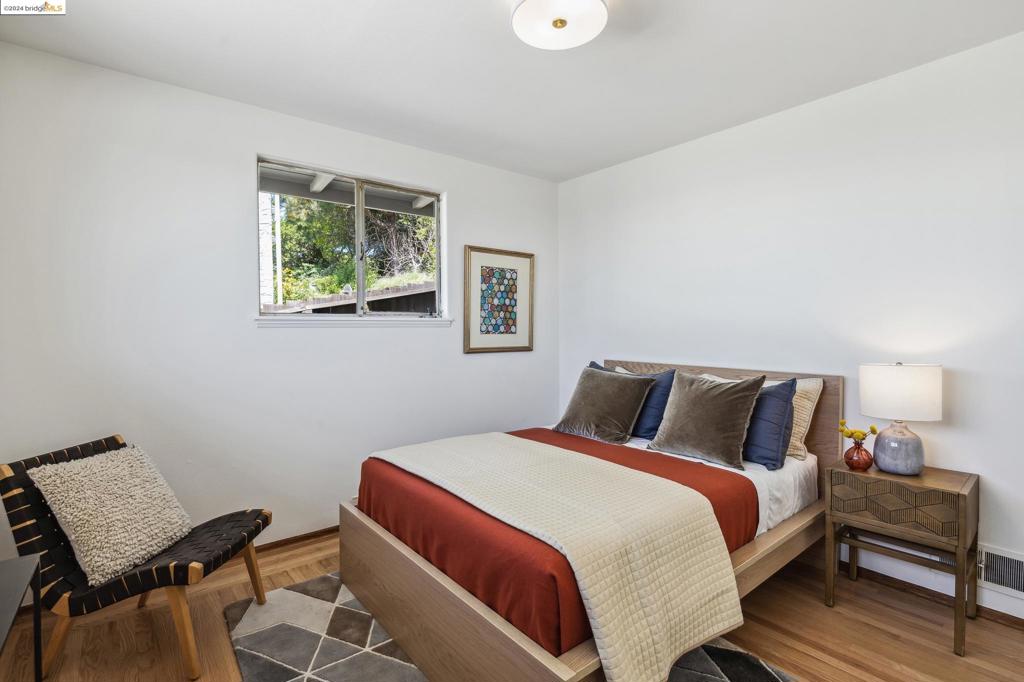 Light and bright, with views of the Bay from the living room and primary suite, your Berkeley Hills home awaits! Enter through the foyer and into the living room, with its handsome fireplace, original wood floors, and a wall of windows looking out to San Francisco and the Bay. With a formal dining room for home-cooked meals, and an eat-in kitchen for early morning coffee, this home has room for you to grow into. Upstairs, one spacious bedroom has windows onto the private back garden, while the primary suite has stunning views of the city, an en-suite bathroom & access to the backyard. All 3 bedrooms upstairs have beautiful, original, recently uncovered, and well-preserved hardwood floors. On the lower split level, there is a large laundry room with a half-bath, and as you continue down the stairs, you discover a secondary living room with yet another fireplace, or as it was called in times gone by, a rumpus room. The backyard garden is private and sunny, with a patio for al fresco dining and summertime hangouts. Half a mile from Young's Market, Country Cheese Coffee Market, and the #7 bus stop. 0.3 miles to Dorothy Bolte Park with an upper and lower playground and a space for picnics and gatherings. First time on the market in 55 years, this home offers a wonderful opportunity!