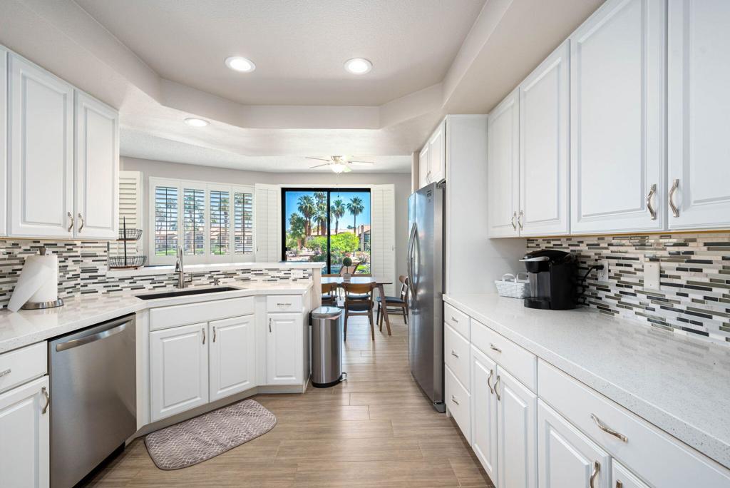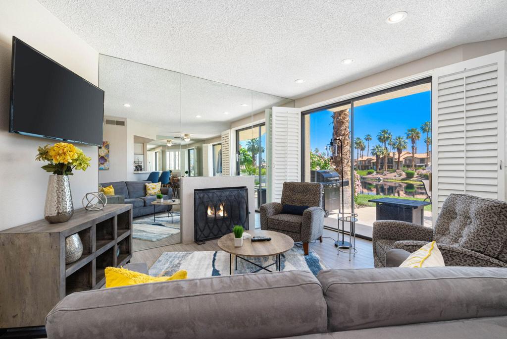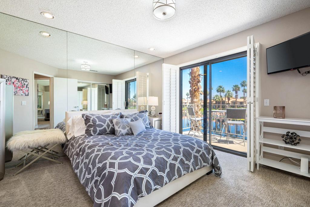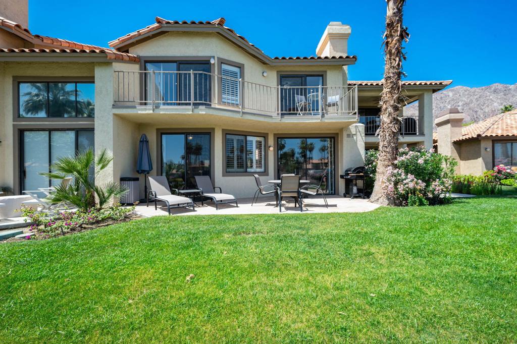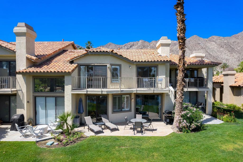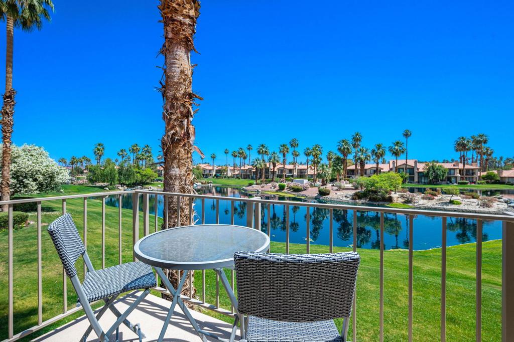 Welcome to this delightful two bedroom, two and a half bath condo offering picturesque lake views. Nestled in the serene and beautifully landscaped community on the PGA West Arnold Palmer golf course. Upon entering you will be greeted by an open and inviting living area that flows seamlessly into a well appointed remodeled kitchen. The spacious layout is perfect for entertaining, with ample natural light accentuating the space. The generously sized bedrooms offer comfort and privacy, each boasting their own en-suite bathroom for added convenience. The master suite provides a private oasis with stunning lake views! Enjoy peaceful mornings or unwind after a long day on your private patio an ideal spot for outdoor dining, reading or simply soaking in the tranquil atmosphere. Experience the best of La Quinta living! Contact me to schedule your showing today!